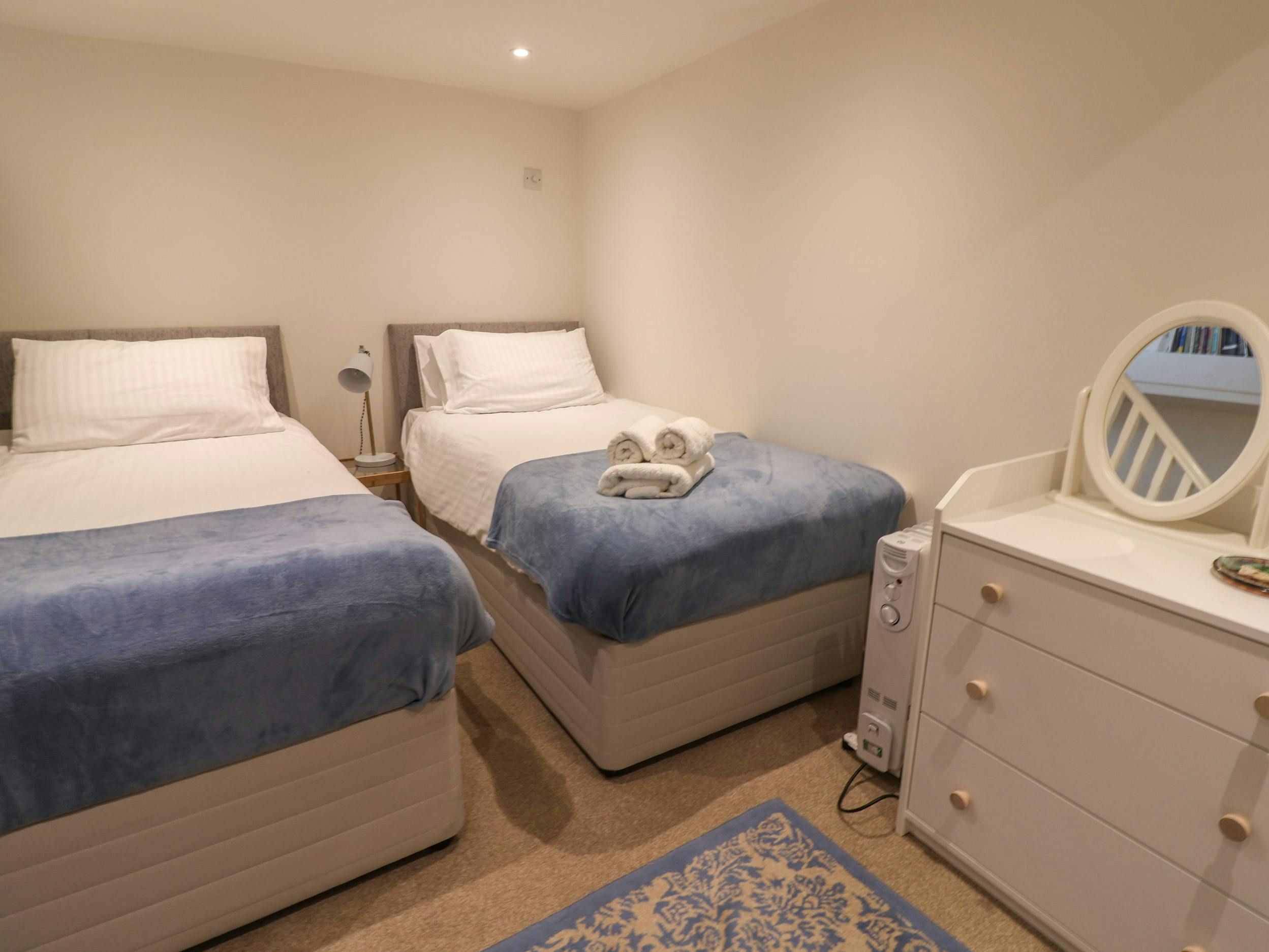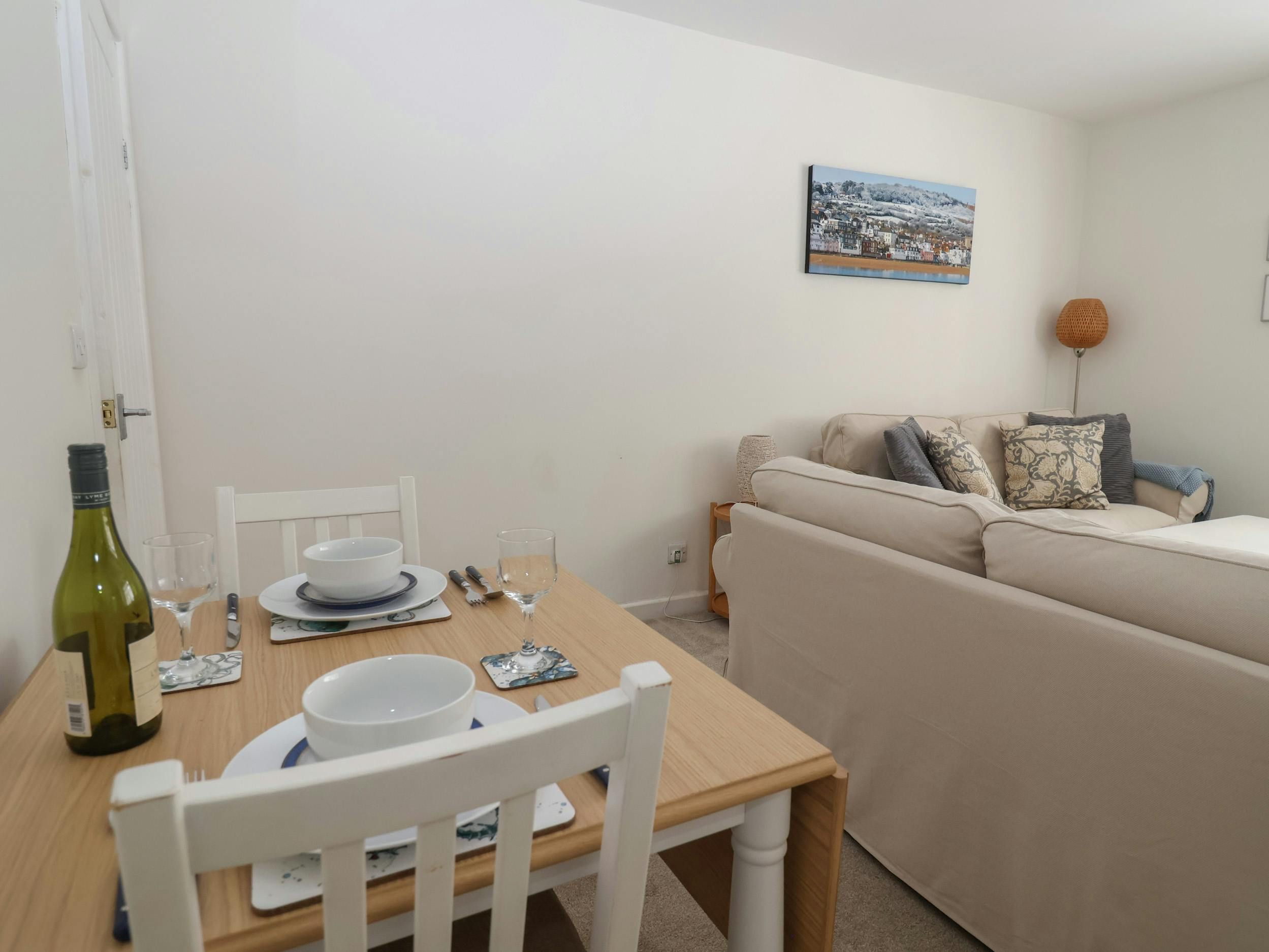 This modern apartment puts you right in the heart of Lyme Regis, just a short stroll from the shops, restaurants and seafront. Inside, it’s bright and welcoming, with an open-plan living space to relax after a day on the beach or exploring the Jurassic Coast. The kitchen is well equipped, and a welcome pack with local treats makes settling in easy. With a king-size bedroom on the ground floor and a twin room below, it’s a handy base for couples or small families keen to enjoy the beaches, harbour, fossil hunting and coastal walks.