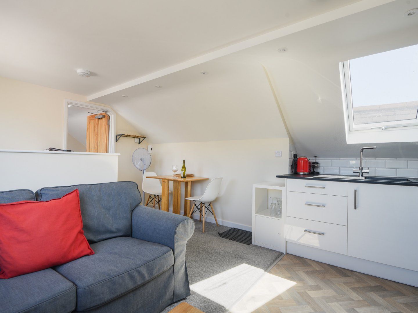 Accomodation Details Second-floor apartment. One double bedroom with en-suite walk-in shower, basin and WC. Open-plan living space with kitchen, dining area and sitting area