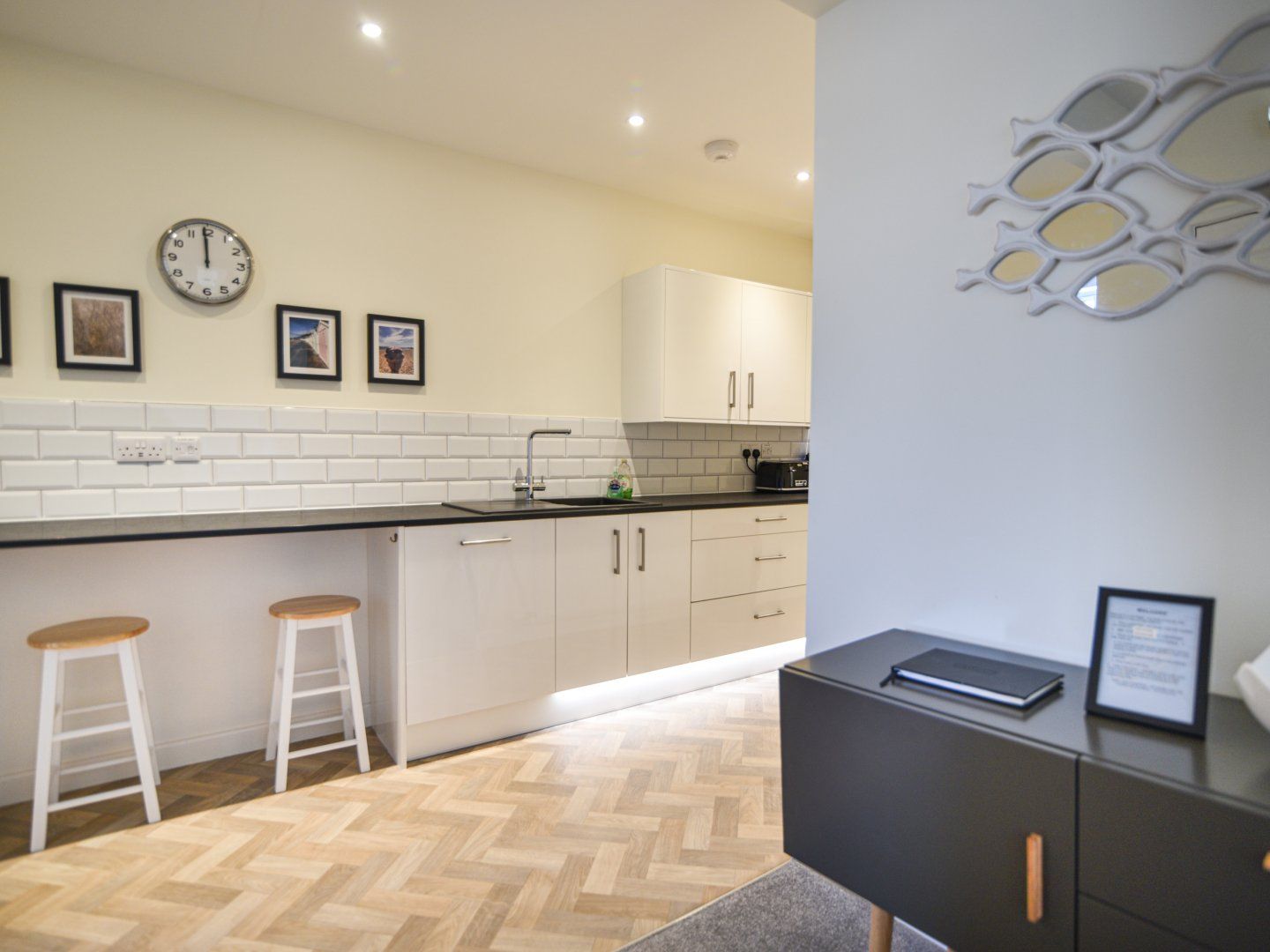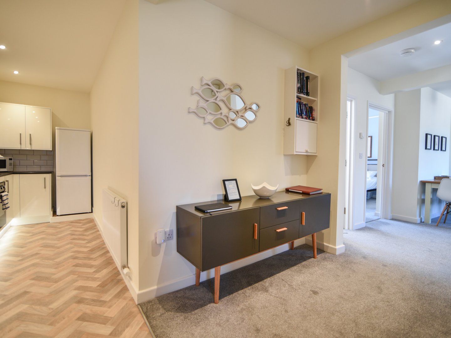 Accomodation Details First-floor apartment: Two bedrooms: 1 x king-size, 1 x twin (zip/link, can be king-size on request). Shower room with walk-in shower, basin and WC. Open-plan living space with kitchen, dining area and sitting area