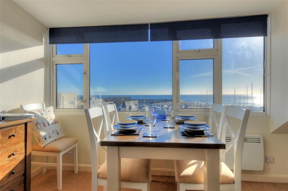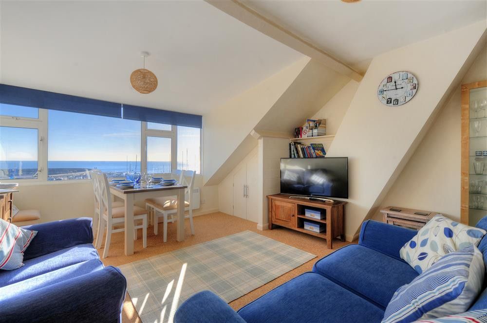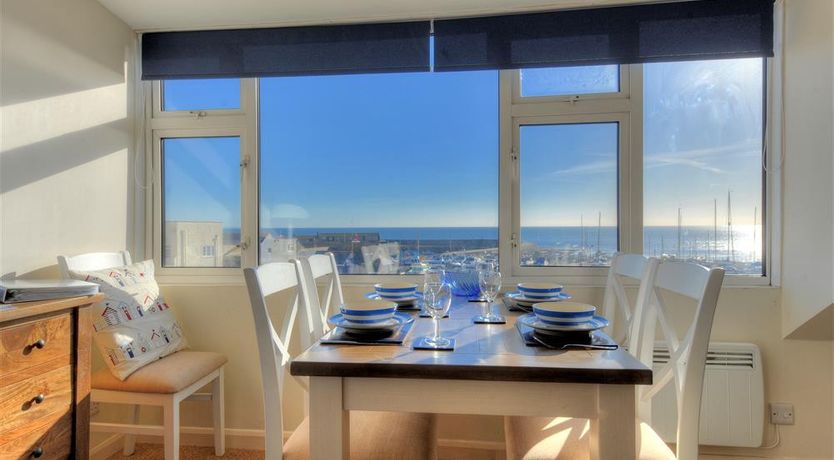 Holiday home Halyards a second-floor apartment consists of kitchen with electric oven, electric hob, microwave, fridge with ice box, washing machine, and a dishwasher, a dining/sitting room with seating for five guests and a Smart TV. The bedrooms consists of a king-size with en-suite shower, a double, and a single serviced by a bathroom. Outside there is Enclosed communal garden with patio, furniture and public car park a short walk from property, subject to availability and payable on site. Within 0.1 miles, you will find a shop and a pub. Please note that this is a non-smoking property and no pets allowed. WiFi, fuel, power, bed linen and towels are all included in the price. Note: Car parking options: to the rear of the apartment there is a private car park where visitors can park for a weekly fee or if you don’t mind a walk up the hill, there is the long stay Holmbush car park, however, from 1st October through till the 15th of March, you are permitted to park on the road right outside the property, subject to availability. Note: There is a Good Housekeeping Bond of 150 GBP on this property.