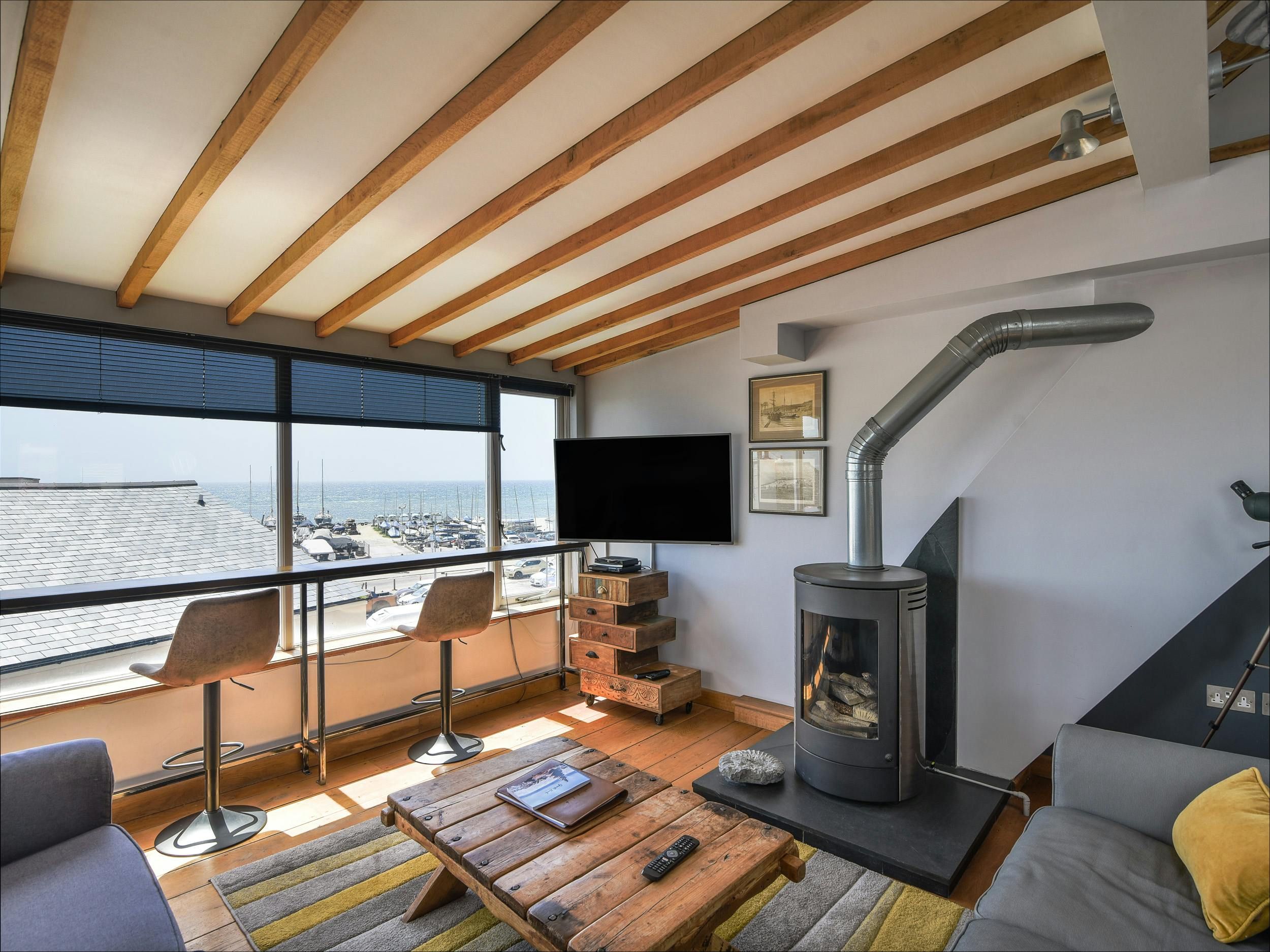 With stunning views over Cobb Harbour in Lyme Regis, this apartment is a wonderful place to stay. Set within a Victorian building and arranged over two floors, the home has a great open-plan living space – the perfect place to relax with family and friends. There are more sea views from the main bedroom, too. When you want to explore the area, you’ll be steps from the town’s boutiques, cafes and restaurants, as well as the harbour and beaches. Other attractions a short drive away include Coney's Castle, an Iron Age hillfort.
