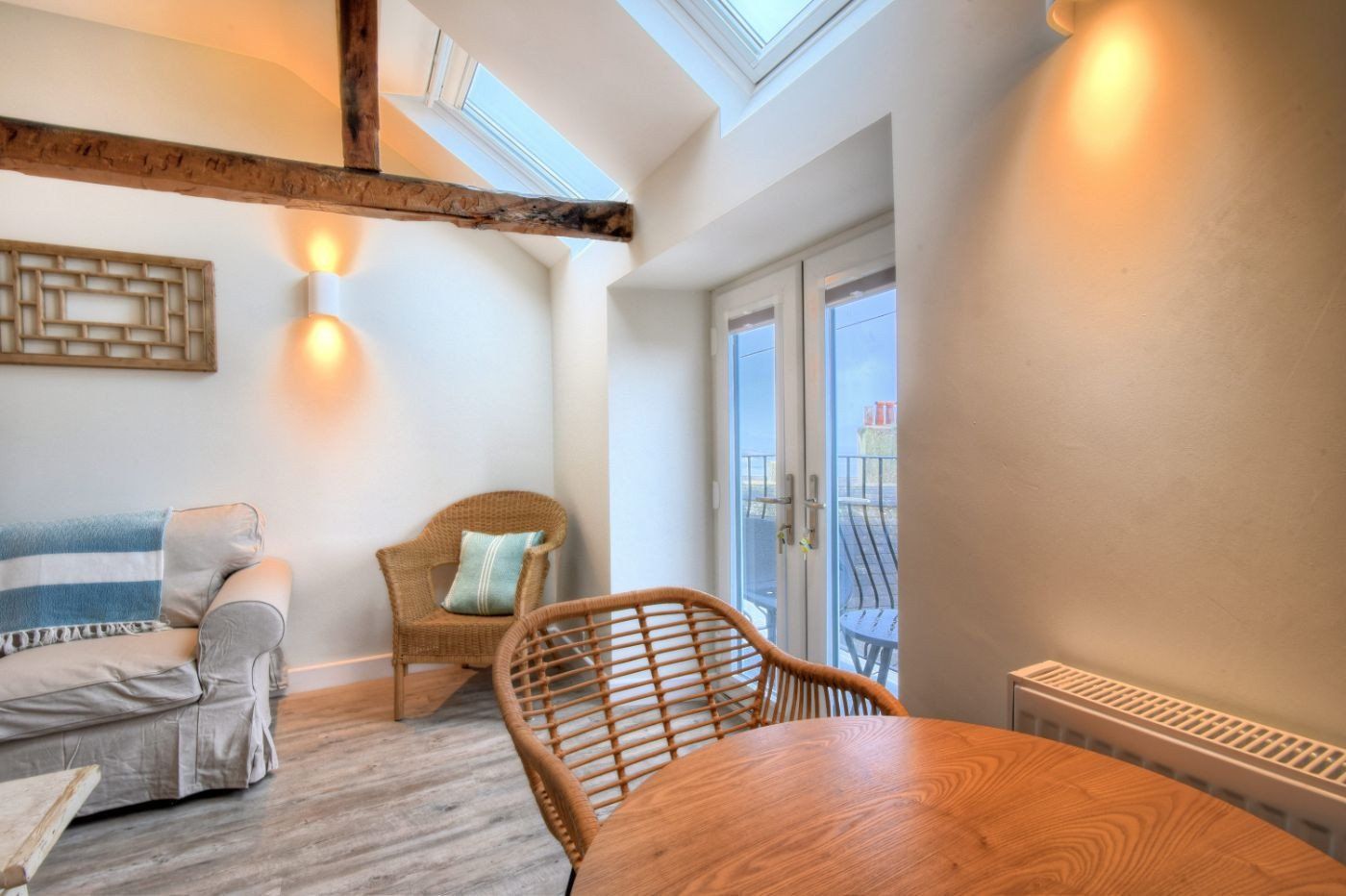 Amenities Central heating. Electric oven, grill and hob, fridge/freezer, washing machine/tumble dryer, dishwasher, coffee machine. Smart TV, WiFi. Fuel and power inc. in rent. Bed linen and towels inc. in rent. Public car park a short walk from property, subject to availability and payable on site. Outside balcony with patio furniture. Sorry, no pets and no smoking. Shop 0.2 miles, pub 0.1 miles. Note: Car parking payable at location and subject to availability. Note: Apologies but no children are allowed at this property. Note: An initial supply of coffee pods is supplied. Note: The internal staircase to the apartment is narrow and fairly steep so please bear this in mind when booking. Note: There are low ceiling beams throughout the property.