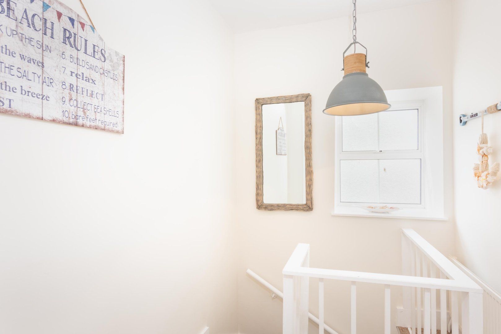 Full of character inside and out, arriving here is exactly the English seaside abode you’d imagine. With cream walls alongside a bright blue front door and matching sash window frames, a nautical theme immediately springs to mind.