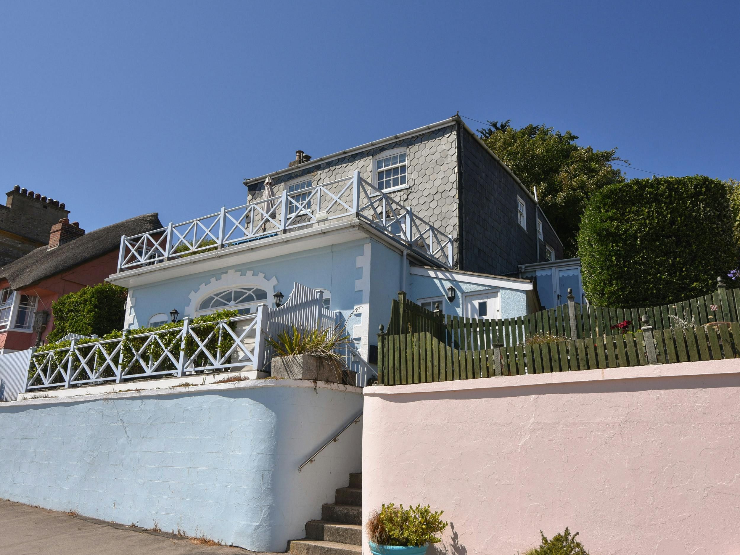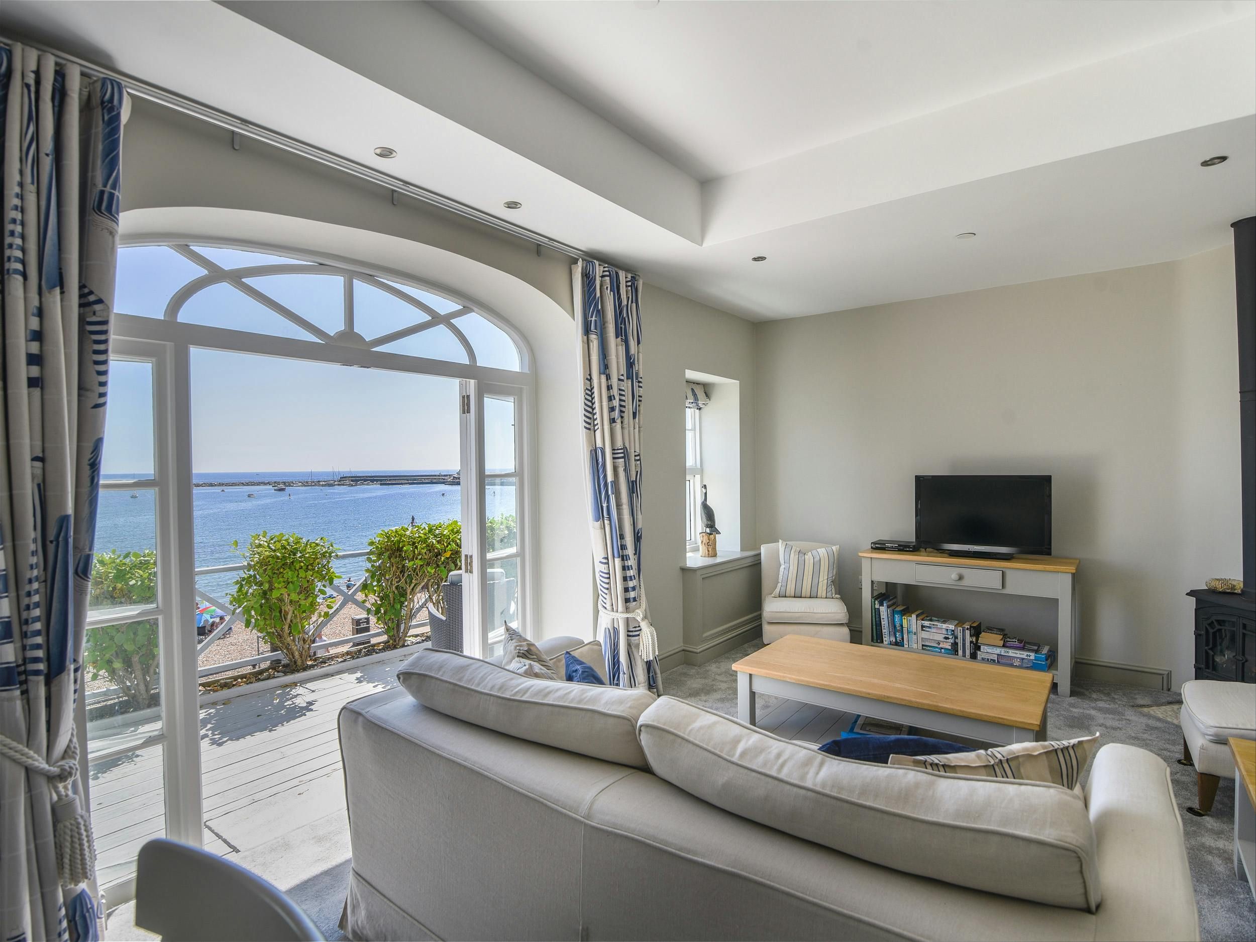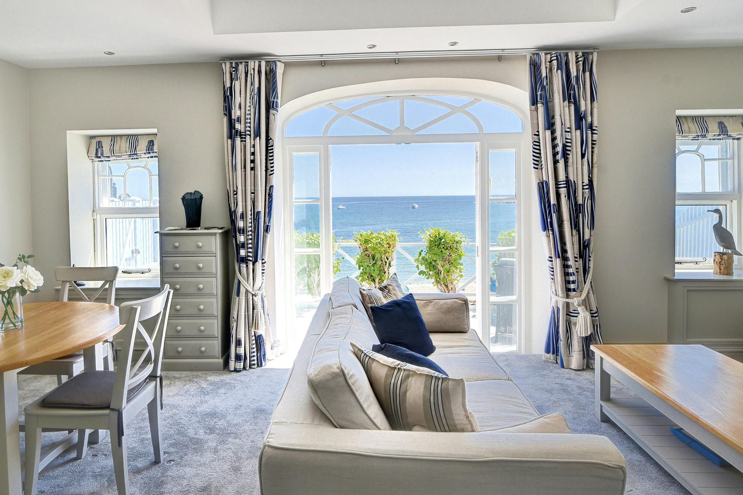 Well, the sea and beach views from this apartment’s private balcony are stunning. You can enjoy the vistas from this home’s large windows in the living room, too. The bedroom is compact, and there’s not much storage here, but there is a wardrobe in the utility. Also, the kitchen is on the small side – that said, it has everything you need and there’s an array of eateries a short stroll away. And, of course, the beach is footsteps away. This place is the perfect base for exploring all that Dorset has to offer.