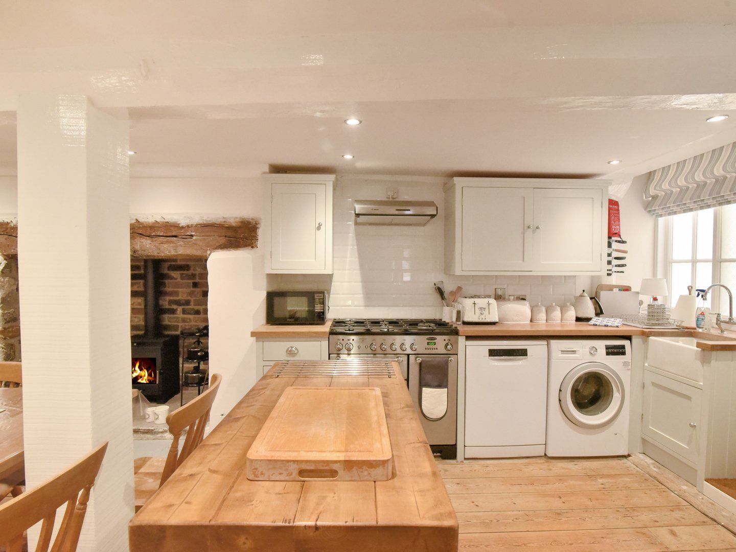 Accomodation Details Over three floors. Four bedrooms: 1 x second-floor king-size with Smart TV and en-suite walk-in shower, basin and WC, 1 x second-floor king-size, 1 x first-floor king-size with Smart TV, 1 x first-floor twin. Bathroom with freestanding bath, shower over, basin and WC. Cloakroom with basin and WC. Kitchen/diner with woodburning stove. Sitting room