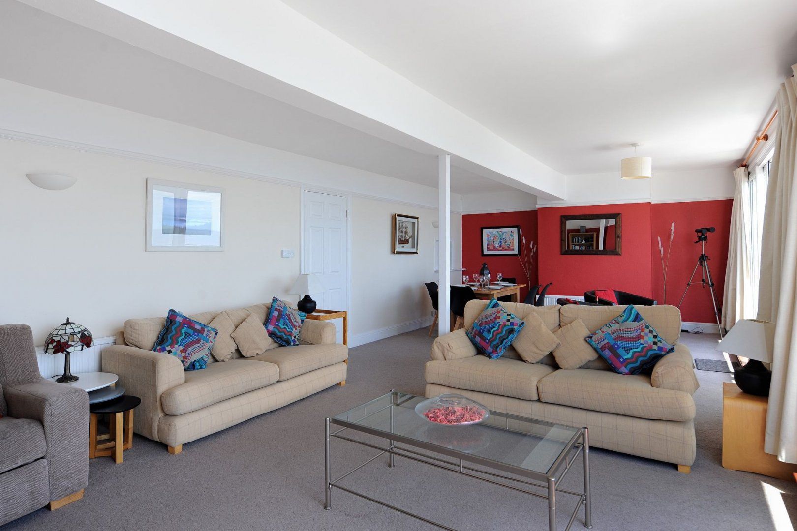 Accomodation Details A 4 tick Gold property. Second-floor apartment. Three bedrooms: 2 x doubles with en-suites with walk-in showers, basins and WCs, 1 x twin. Bathroom with bath with shower over, basin and WC. Kitchen/breakfast room. Open-plan living space with dining area and sitting area. Cloakroom with basin and WC