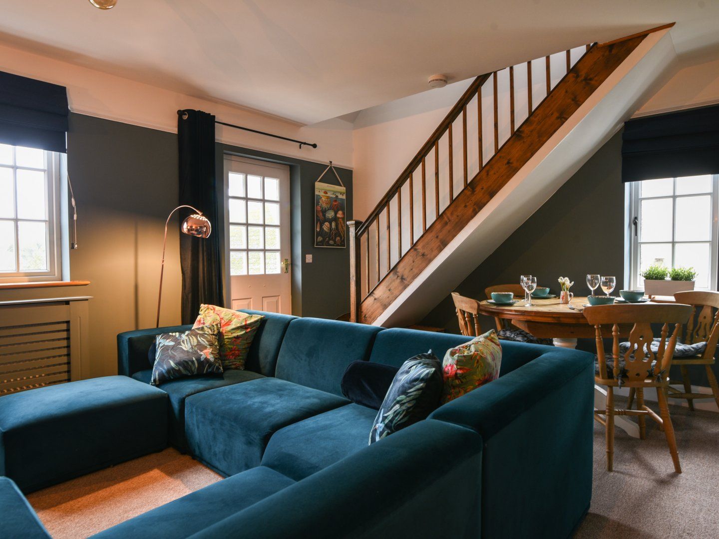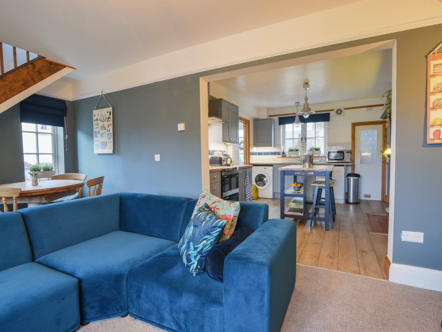 Accomodation Details Two bedrooms: 1 x double, 1 x twin. Bathroom with bath, shower over, basin, heated towel rail and WC. Ground-floor shower room with walk-in shower, basin and WC. Open-plan living space with kitchen, dining area and sitting area with woodburning stove