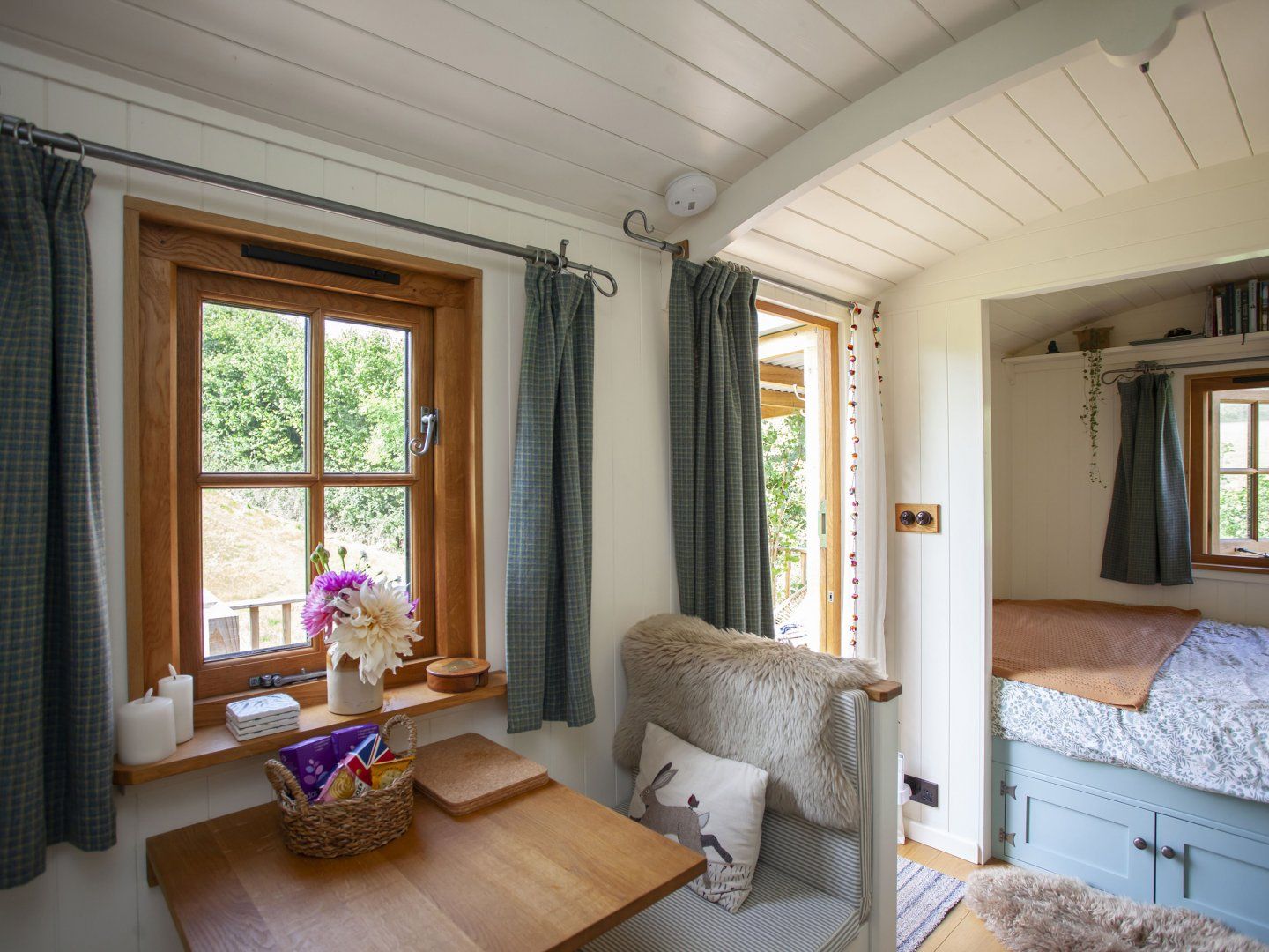 The living areas in this single-storey shepherd's hut consists of an open-plan living space with king-size bed, kitchenette, dining area and sitting area, serviced by a shower room. Appliances include a two-ring gas hob, microwave, fridge, kettle, toaster, radio, and a woodburning stove. Outside, there is an enclosed garden area with decking, furniture, barbecue/fire pit, and a freestanding bathtub, along with off-road parking for one car. Within 4.6 miles or less you will find the nearest shop and pub. Please note, this is a pet-free, non-smoking property. Wi-Fi, fuel, power, bed linen, and towels are all included in the rent. For your next romantic break in Dorset, book a stay at Hurdlemakers Hut. Note: Check-in 4pm, check-out 10am. Note: Adults only. Note: There are steps up to the property that may be unsuitable for those with mobility issues.