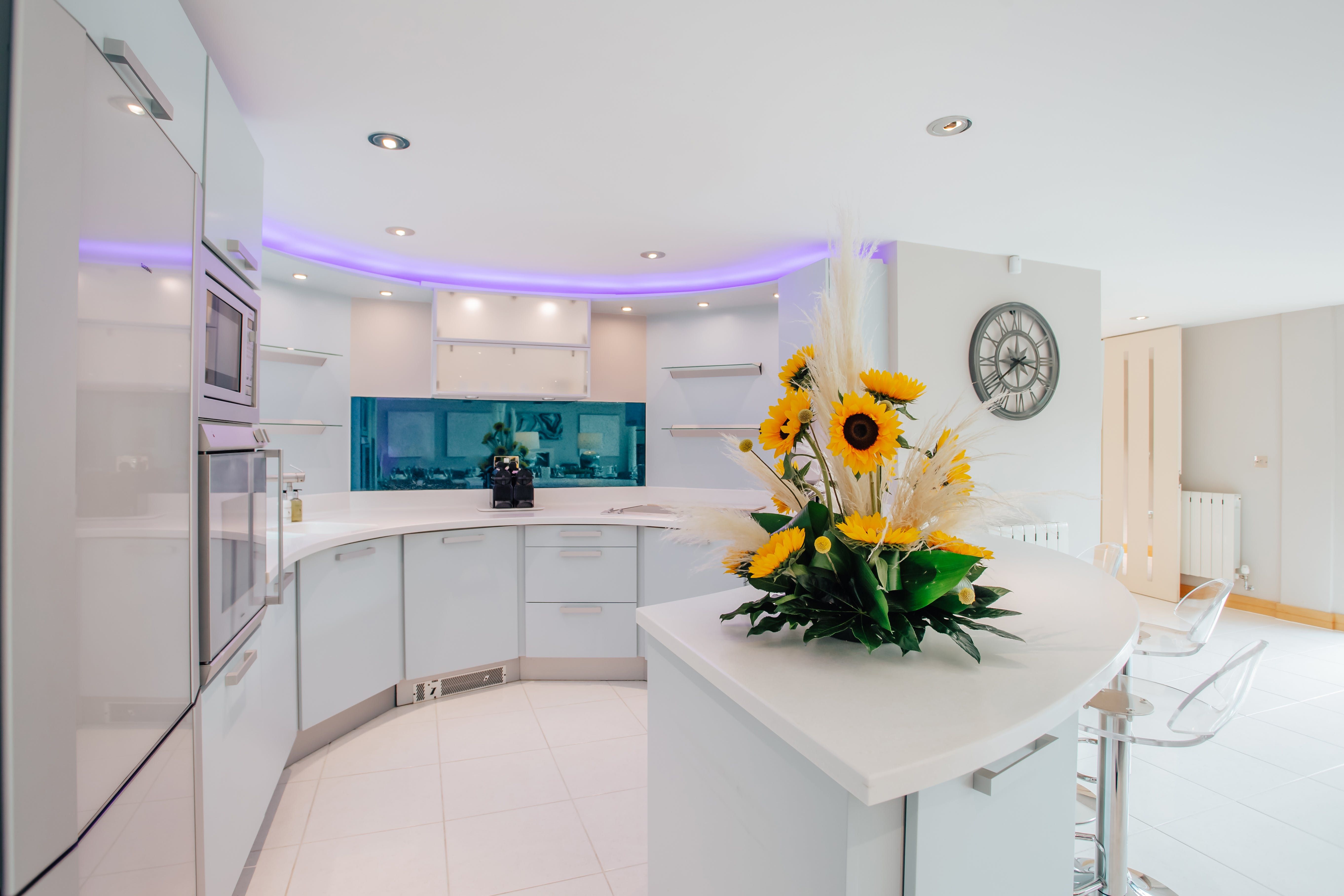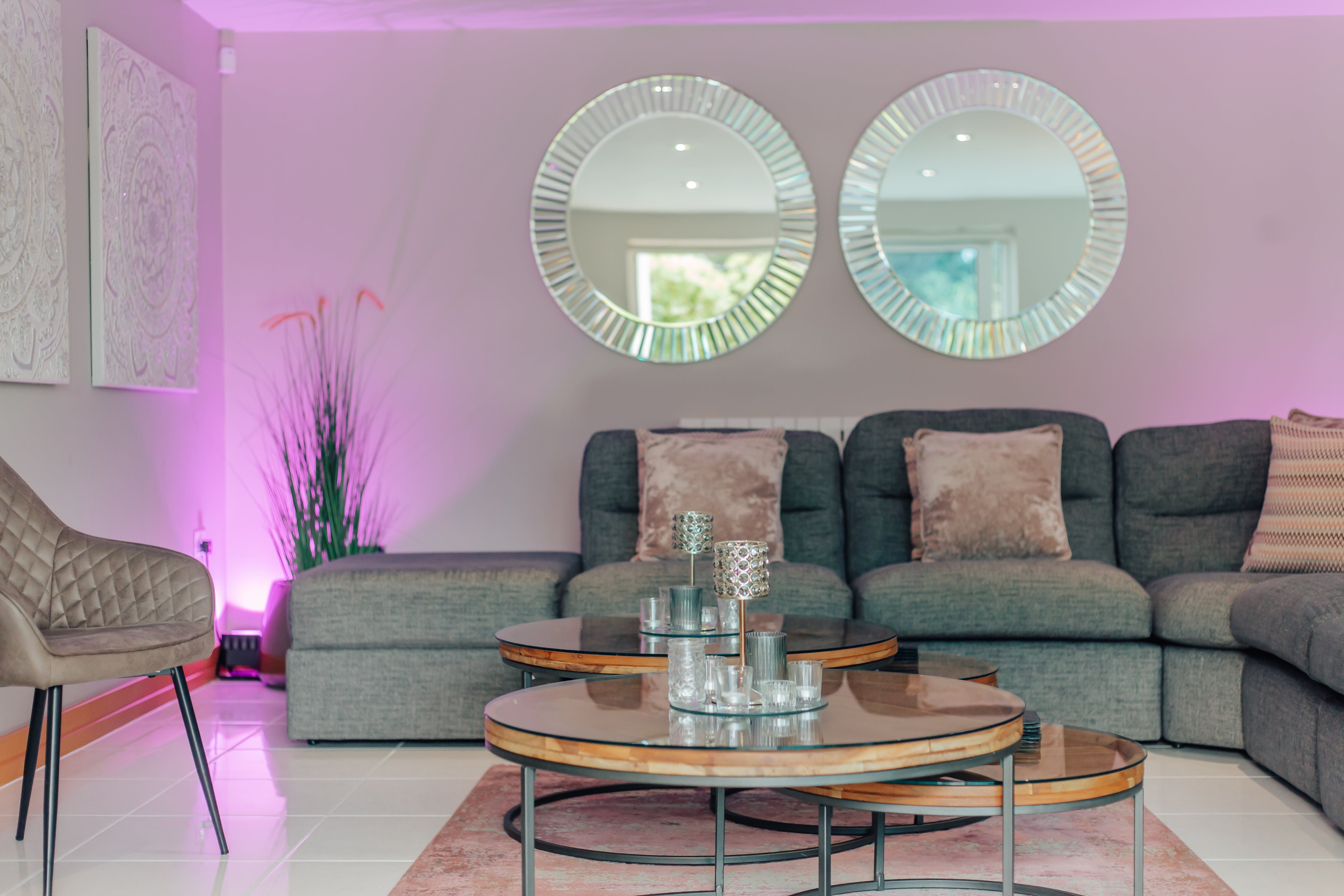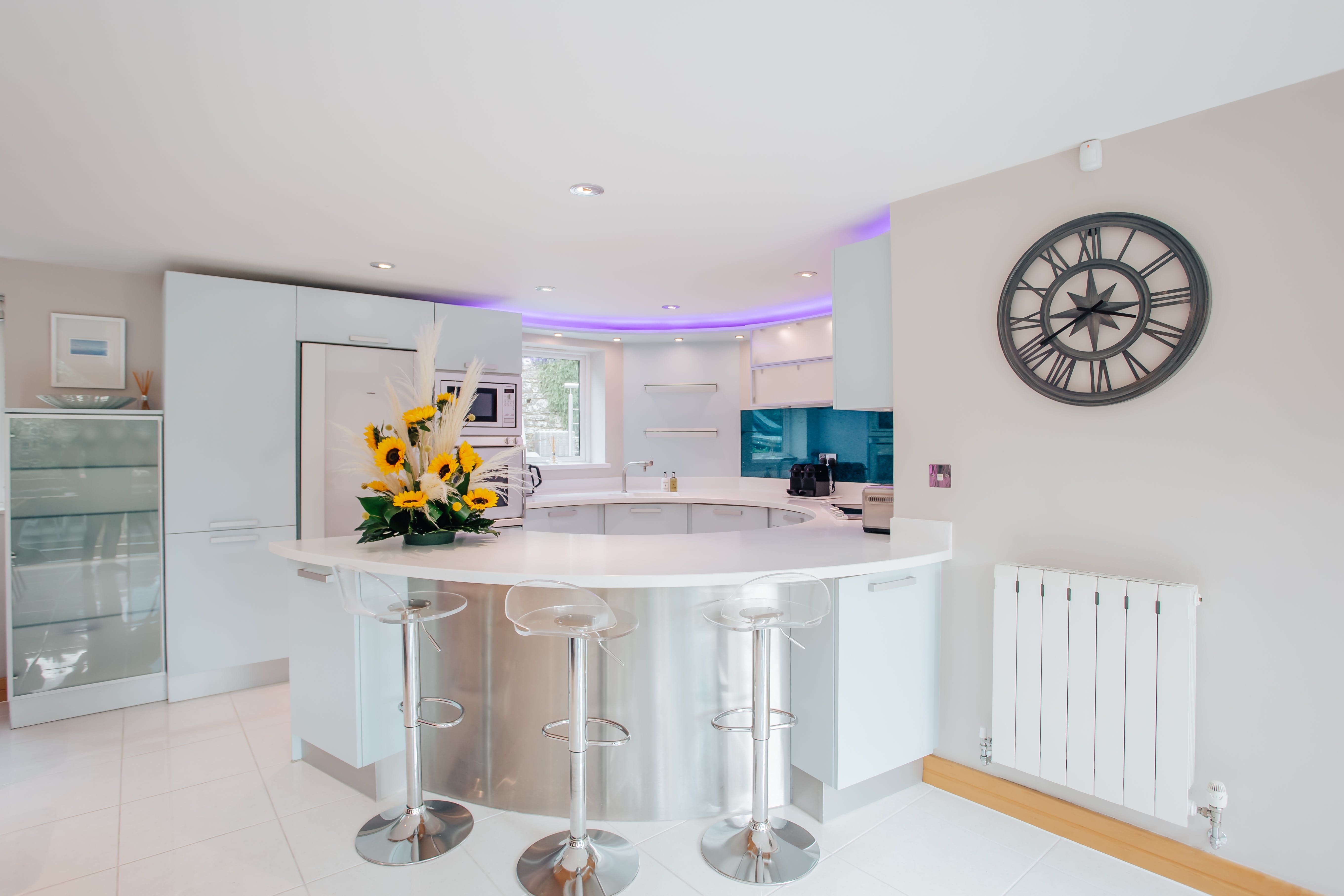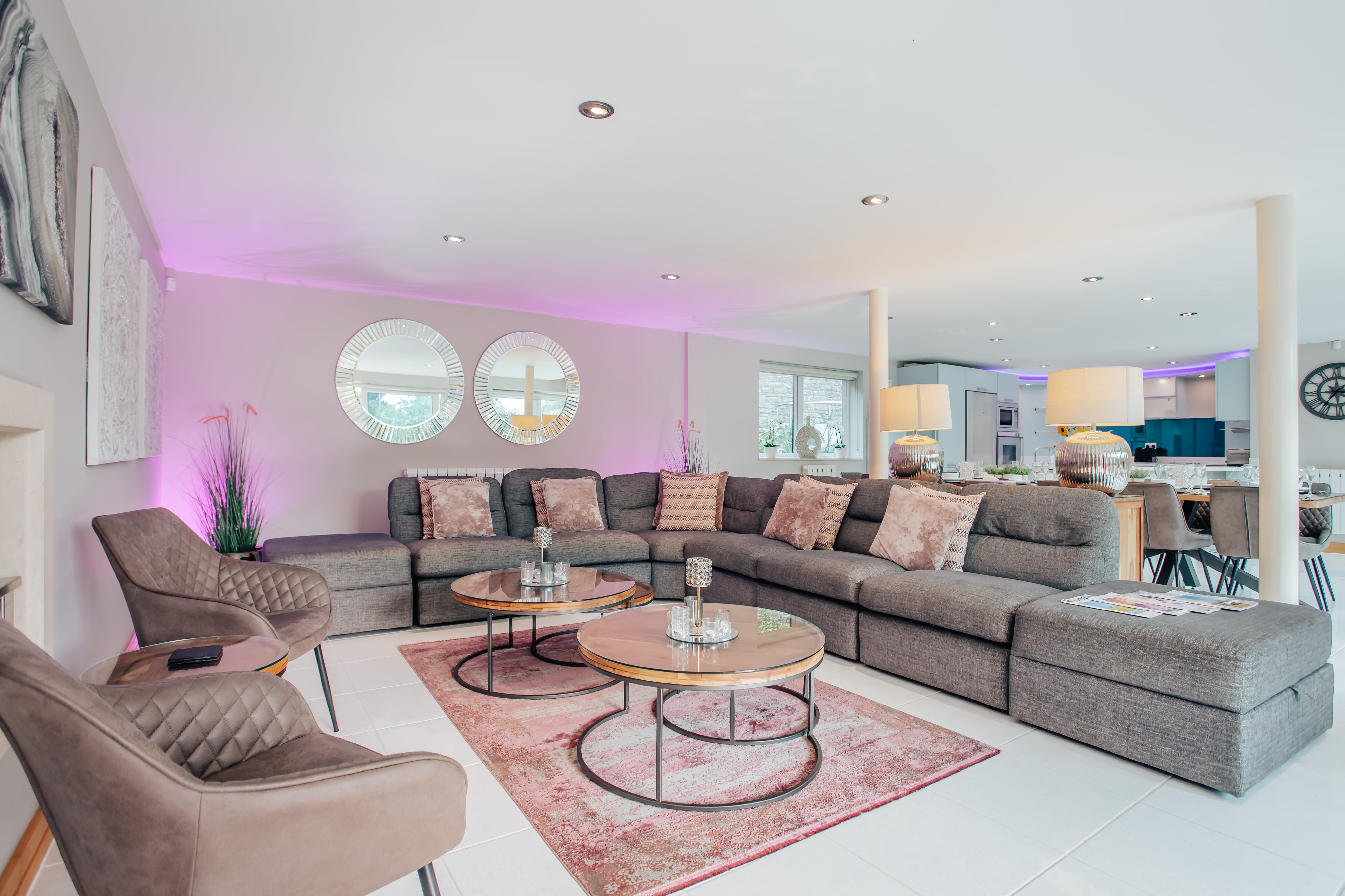 Step inside and you'll immediately be wowed by the spectacular open-plan layout of the ground floor. In addition to a welcoming seating area, the gargantuan fourteen-seater dining table and designer kitchen create the ultimate multi-purpose space. Large sliding doors ensure plenty of natural light and offer direct access to the gorgeous garden. As the abundance of palm trees will attest, the south coast benefits from a balmy climate, so you'll likely be able to enjoy the outdoors for a surprisingly large part of the year.