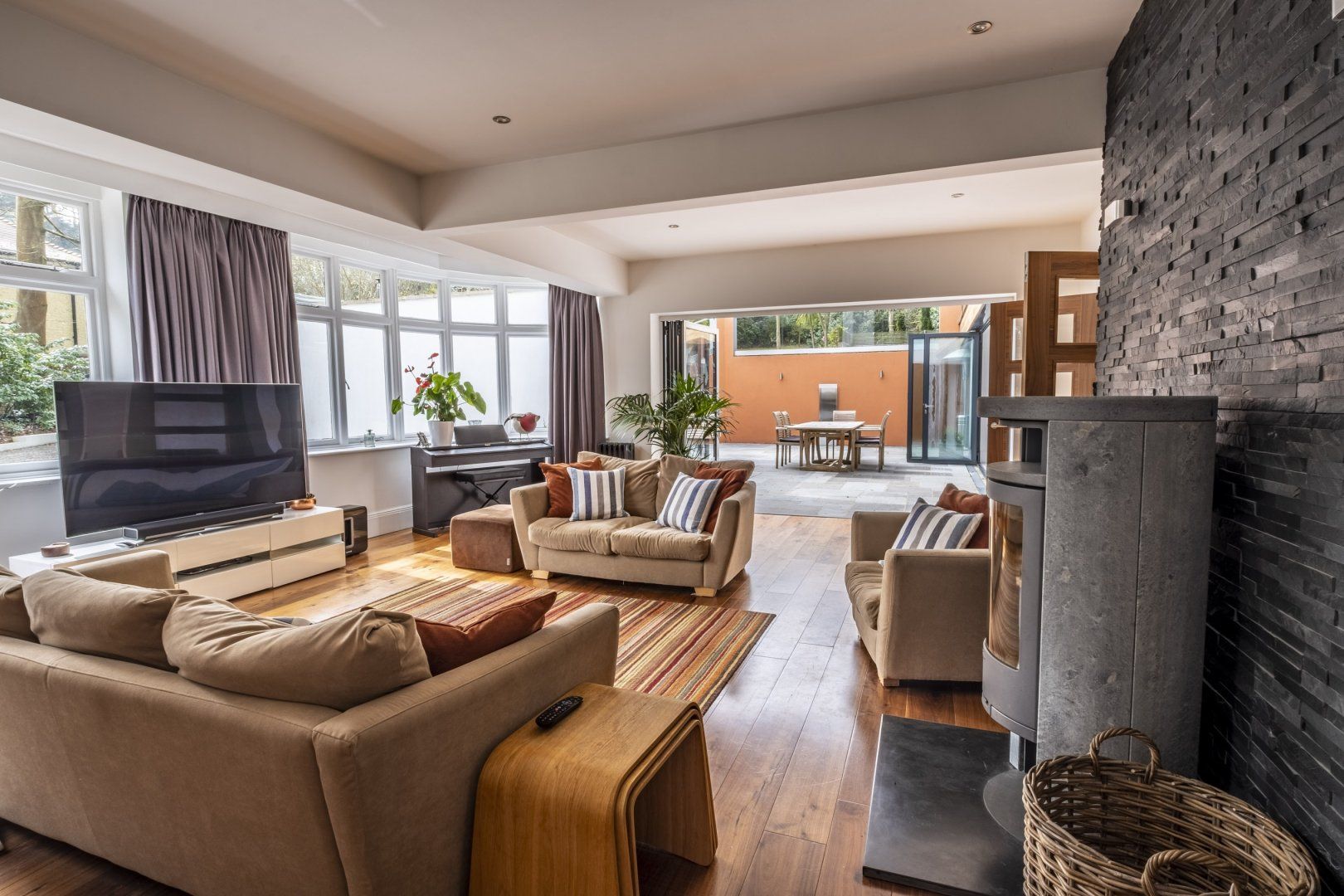 Take your morning cup of coffee at the breakfast bar as a breeze of fresh air sweeps into the home before you step through the bi-fold doors to the courtyard and the gardens outside. On hot summer days, why not cool off in the waters of your private pool and then dry off beside the warmth of the firepit. Or read a good book in the shade and comfort of the summer room.