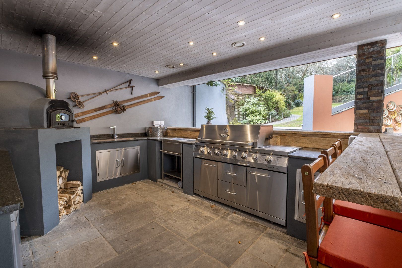 In the evenings, cook your meals using the outside kitchen and barbecue area, and then dine alfresco to enjoy the beauty of the surrounding gardens and listen out for the last of the cheerful birdsong as the sun sets.