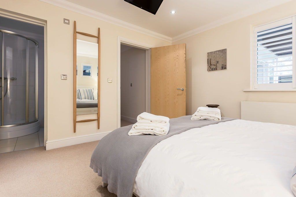 A lovely south-facing garden is the cherry on top of this convenient and comfortable home. Spend your days at the beach, then come home to fire up the barbecue and chill out in the private garden until late. The living room looks out onto the sunny, pine-tree-lined garden – why not open up the double doors to create a vast indoor-outdoor living space?