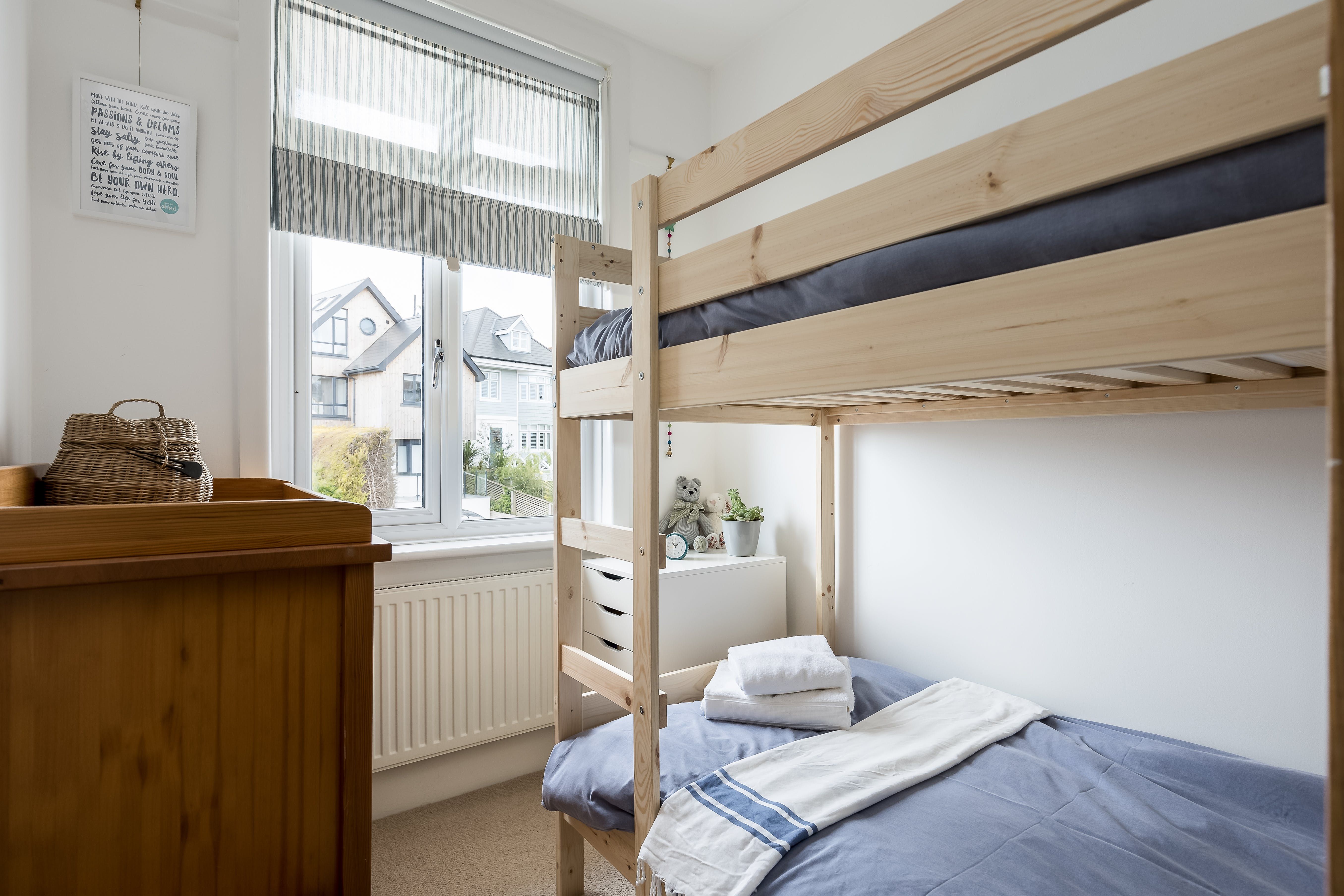 Perfectly positioned a five-minute walk from Whitecliff Harbourside Park and a ten-minute drive from the centre of Poole, this family abode guarantees a fuss-free stay at the coast. For catch-ups over cups of tea and hunks of Dorset apple cake, the bright kitchen-dining space is the ideal spot – get comfy on the armchairs or pull up a seat at the table. If the weather is on your side, spill out into the garden to lunch alfresco followed by a snooze in the sunshine from the comfort of the hammock. Then grab the beach gear provided by your host and jump in the car to Canford Cliffs Beach, just seven minutes from your door. After a paddle in the brilliant blue waters and a stroll along the sands, enjoy a well-deserved ice cream from the kiosk and a crisp pint in the nearby pub. And when it’s time to call it a day, your cosy lounge with wood-burning stove is a delight to come home to.
