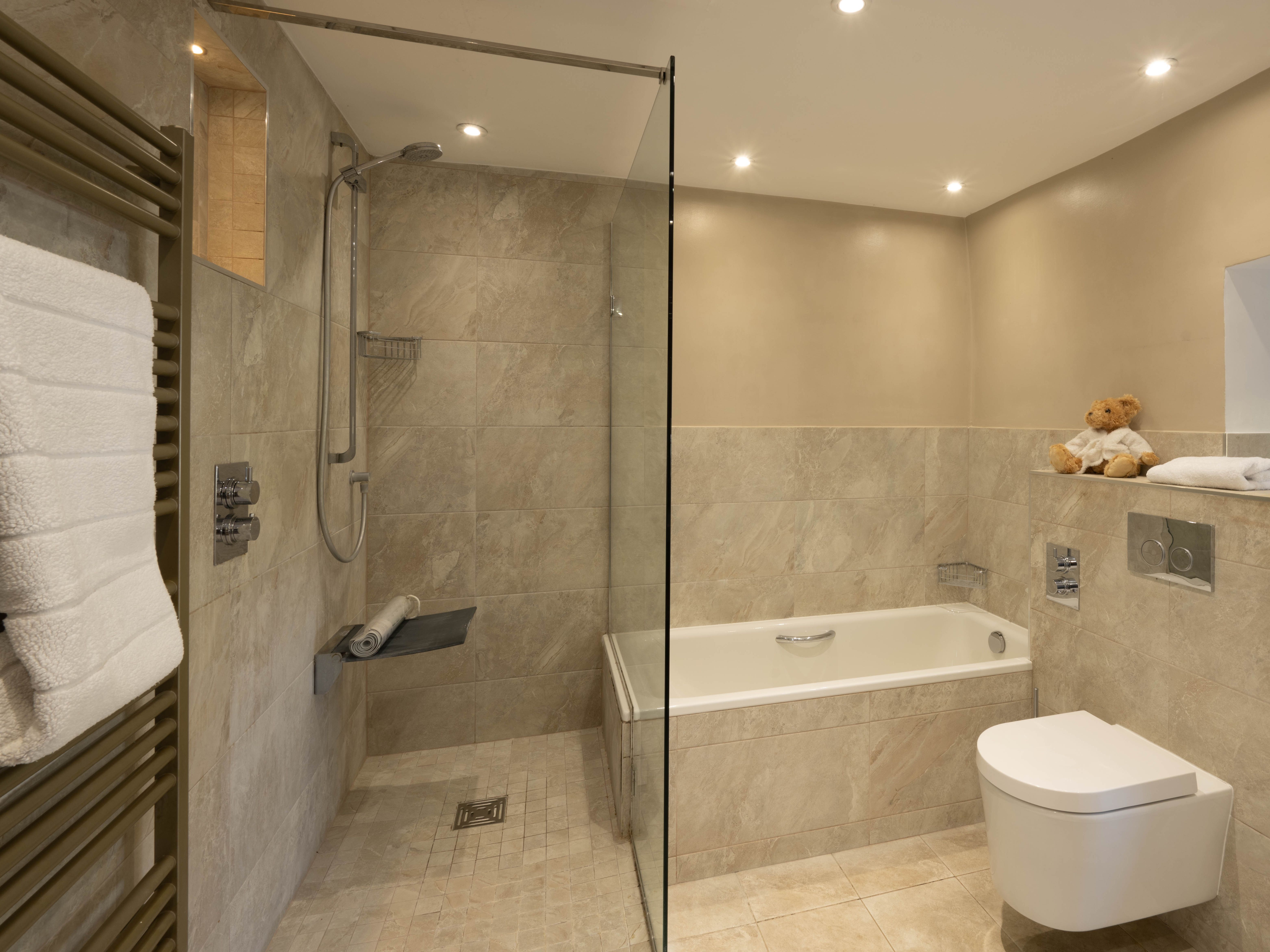 Three bedrooms: 1 x double, 1 x twin, 1 x single. Bathroom with bath, walk-in shower, basin, heated towel rail, underfloor heating and WC. Kitchen. Dining room with log burner. Sitting room with log burner