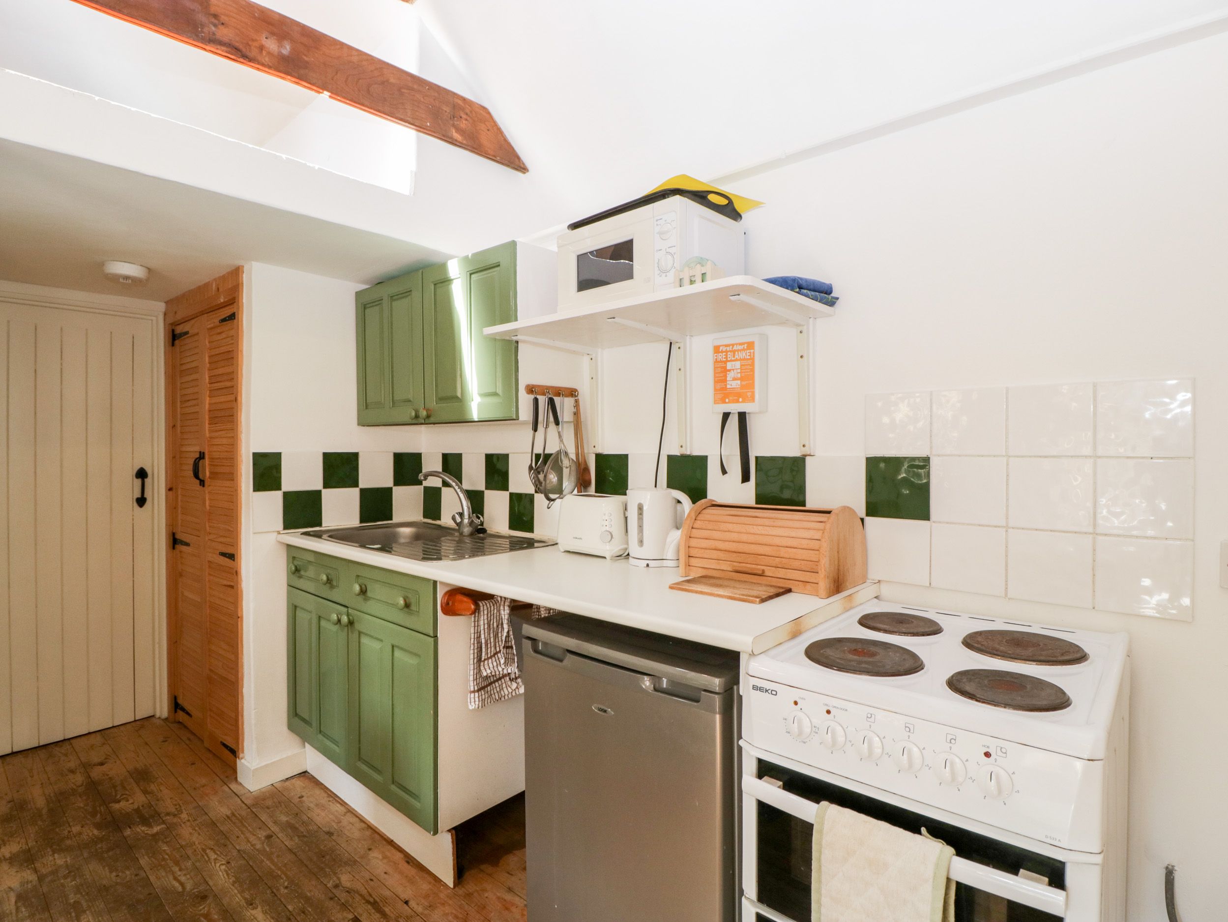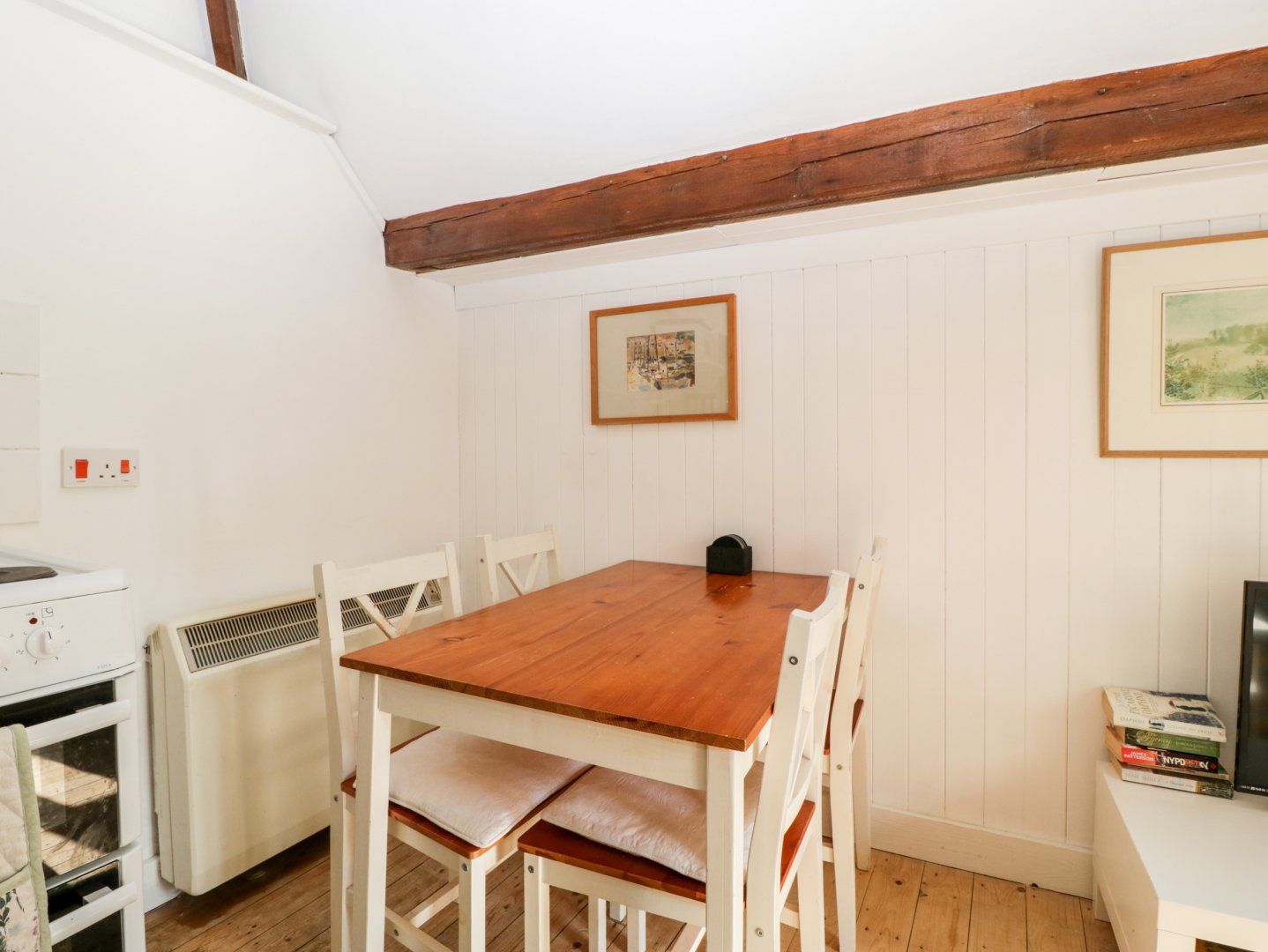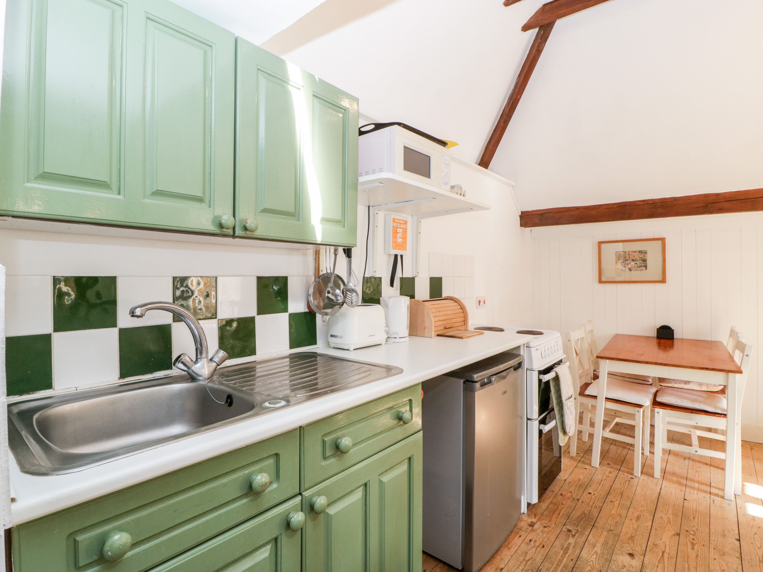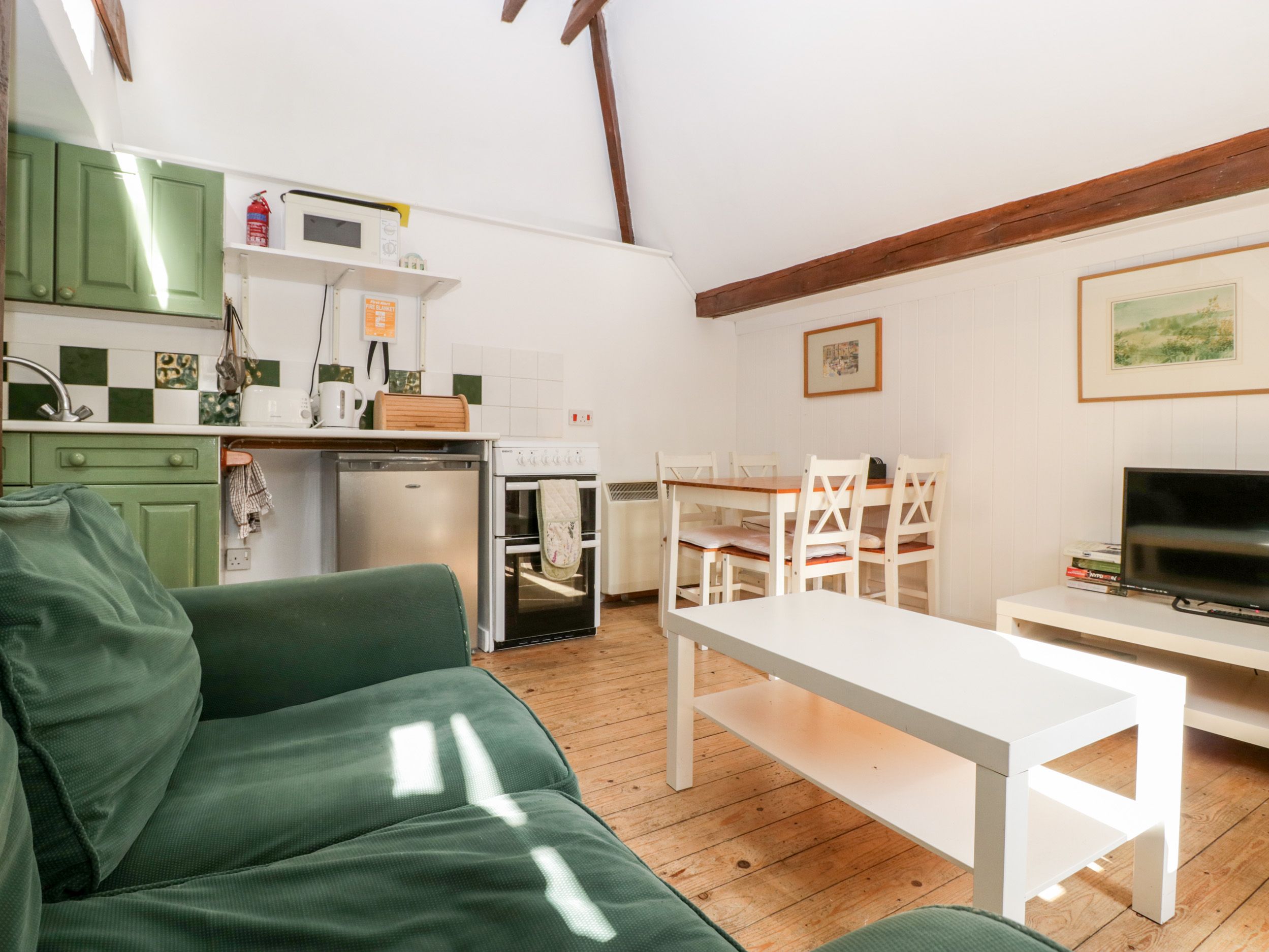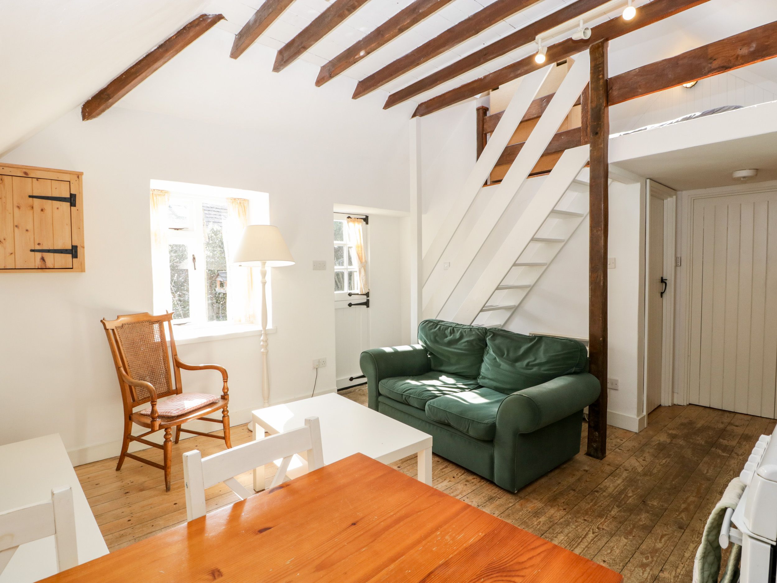 The Old Stables is well located for Sherborne town itself, shops and supermarkets, and also close to the Old Castle and New Castle, with plenty of walking space as well, particularly convenient if you have a dog, as we did. It was well heated and private, something we count on. However, we have been to many holiday cottages over the years and, although The Old Stables has sufficient to put you up for a week, we were very disappointed in the general standard and condition of it. If you have any mobility problems then this is not the cottage for you. It is accessed up steep stone steps and the main bedroom is situated in the loft space of the property, requiring a slow climb up very steep stairs. This is not a place for those experiencing hip or knee problems. The cottage is 'dog friendly', which means you can expect that the cottage will be suitable to bring your pet. If you are in a strange house, your beloved pet will no doubt want to spend the night time with you, but if they like to 'roam' this could be dangerous, as the steps to the bedroom have big gaps that a pet could easily slip through. Similarly the bedroom has a 10 foot drop to the concrete floor of the lounge at one end, which is wide open. The condition of the cottage overall was quite poor, it is in need of a good coat of paint and a deep clean. You shouldn't have to clean the plates, cutlery and even the grill (it had fat/cheese on it) before you can use them. The single couch had the remains of crumbs of food and also (animal?) hair on the cushions, easily fixed if cleaned properly. Similarly, the bathroom was dirty, whoever cleans the property needs a word in their ear. The property is also listed as having WiFi, and when away on holiday arguably this shouldn't be an issue, but this is supplied from the owner's property and is virtually non-existent. One bar if you stand over by the garden and this drops out constantly. If listing WiFi, this should be sufficient in this day and age to use it with confidence and consistency. The Old Stables needs its own dedicated router, something that should come as standard if the property is advertised as having an Internet connection. In summary, great location with sufficient to keep you going for a week. But if you are a stickler for cleanliness and ease of use, this isn't the cottage for you.