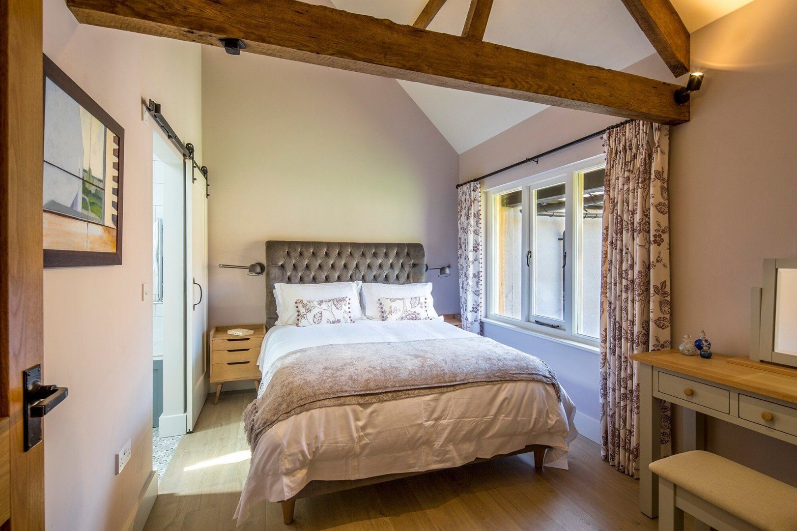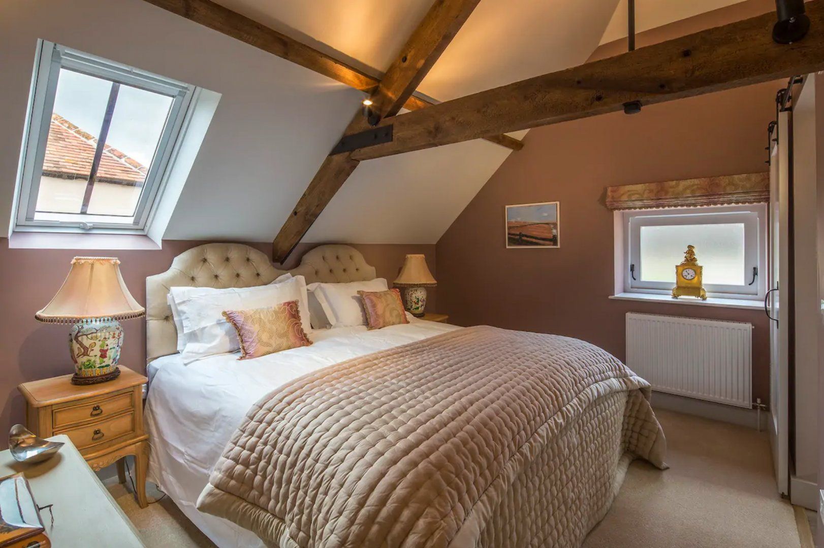 Part of a manor that dates back to the sixteenth century, this beautiful listed barn conversion is not your average country cottage. With enough design credentials for a magazine spread, the home mixes old and new with aplomb. Gather in the grand room to see a space with cathedral-like ceilings and antler chandeliers, with pops of bright modernity from the aquamarine walls and huge pieces of artwork hanging on the walls. There are cosier spots too, including bedrooms that have been tucked up in the rafters ensuring a snug night's sleep, as well as a log-burning fire in the second living room. Comprised of two adjoining barns, the home has got enough room to seat the entire party, with two kitchens for whipping up a feast — ask ahead and the owners will provide you with eggs from the grounds' chickens. Outside, there's a private covered hot tub, a barbecue area and pretty walled gardens to explore, but beyond the gates, one of England's most beautiful counties awaits — Cranbourne Chase Area of Outstanding Natural Beauty can be reached in less than fifteen minutes by car, as can the architecturally unique town of Blandford Forum.