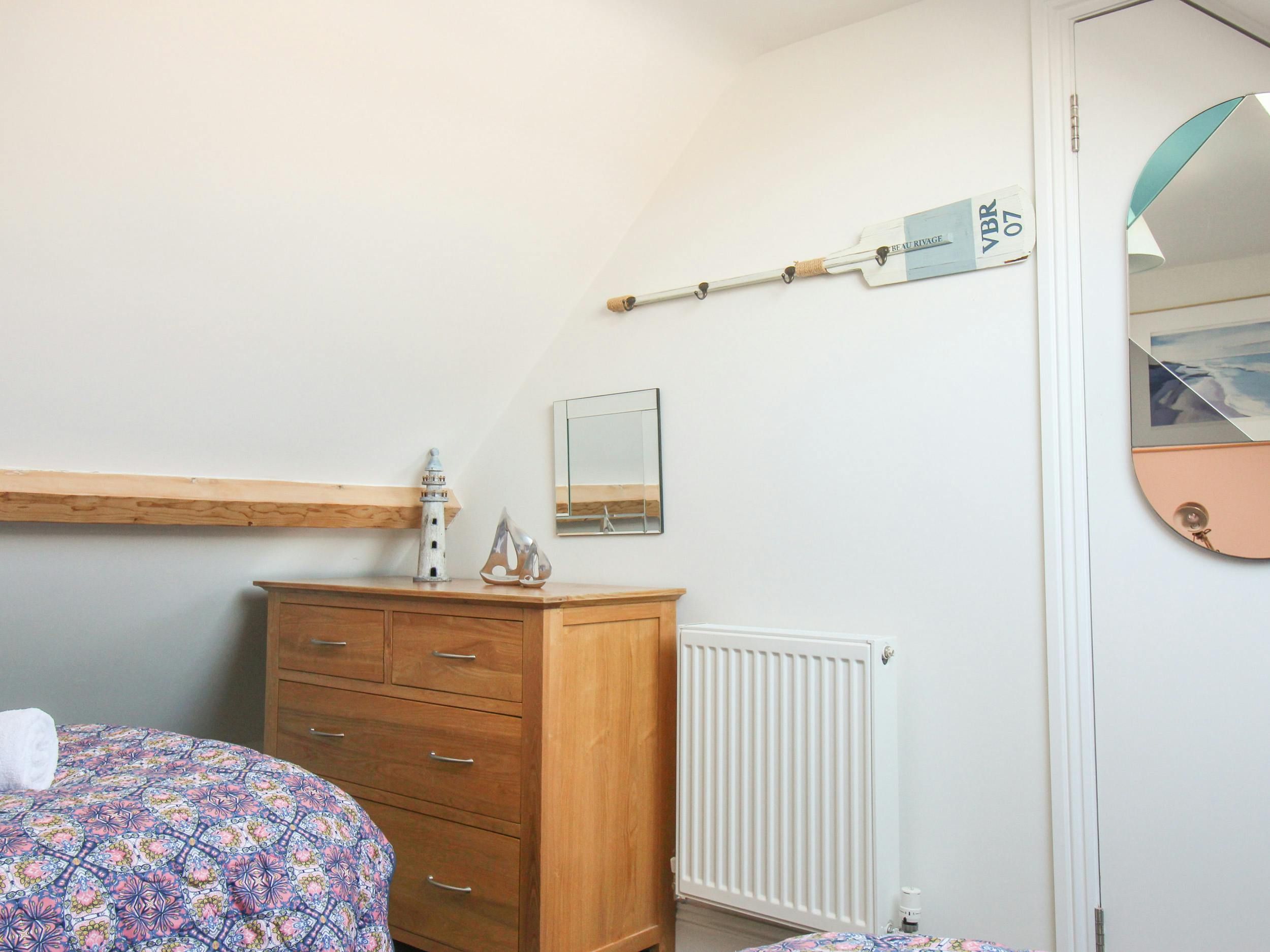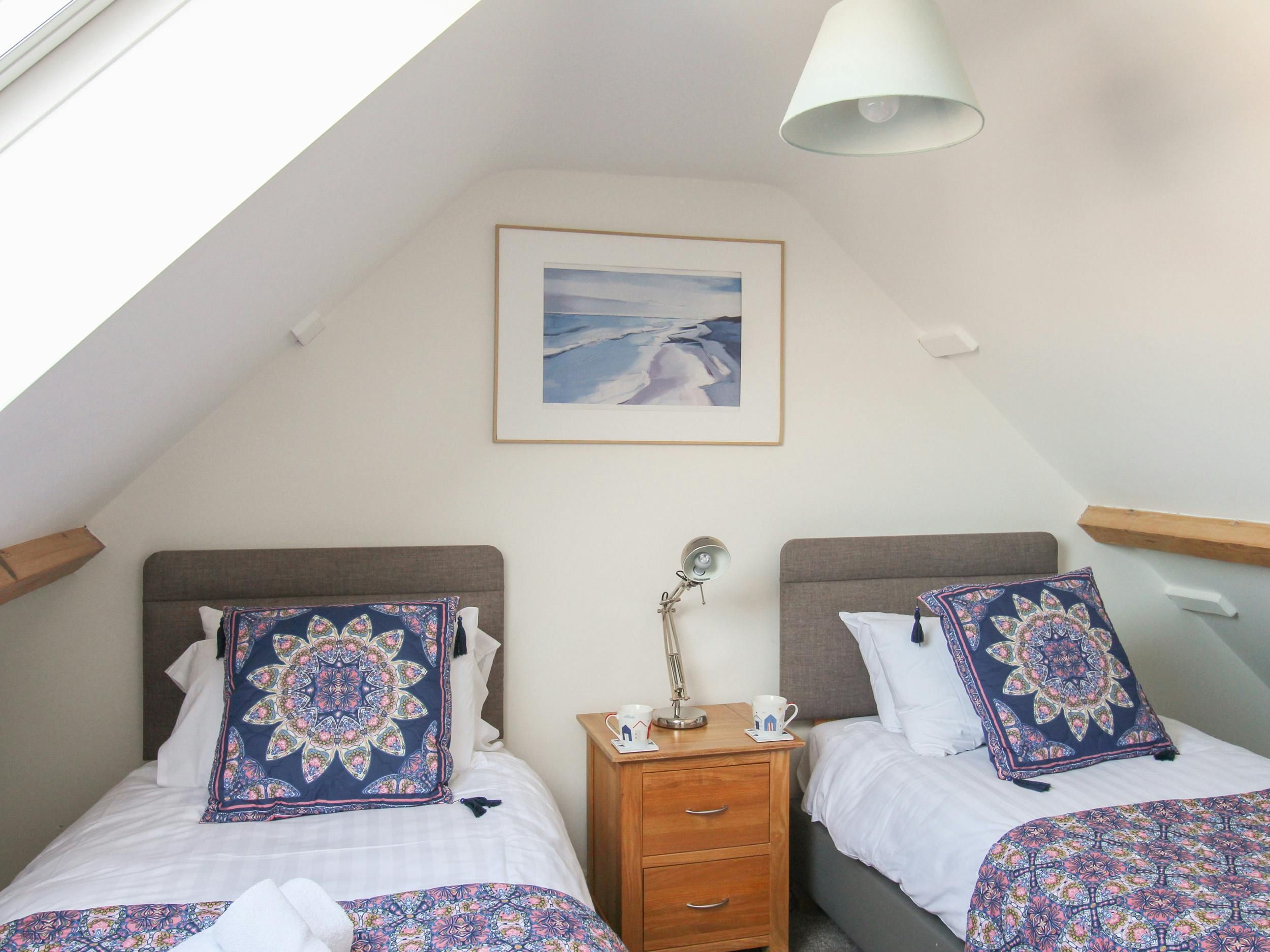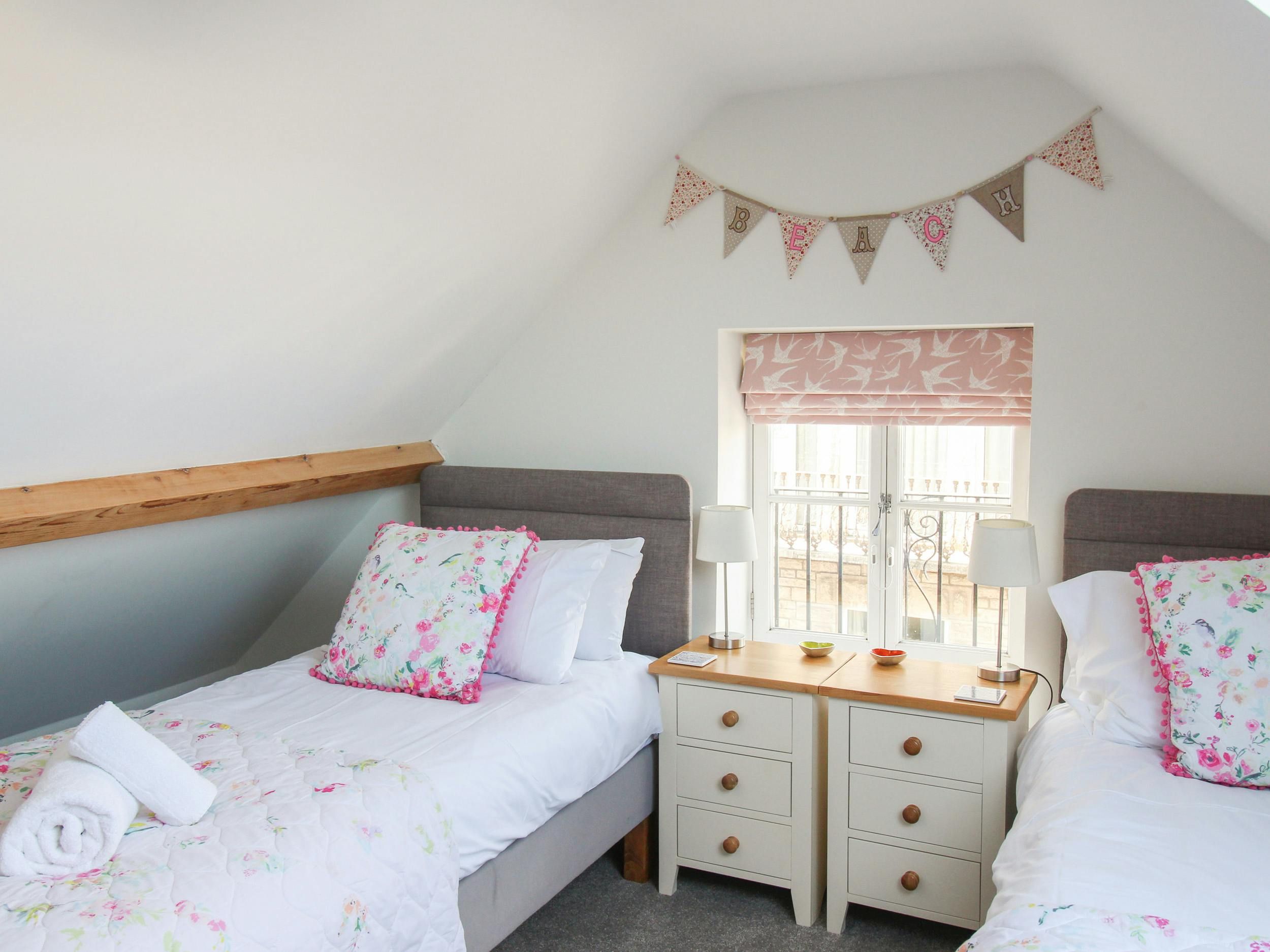 *Please note that the en-suite bathroom is under the stairs and has limited ceiling height that may not suit taller guests. The top-floor twin bedrooms and bathroom also have sloped ceilings and limited headroom.