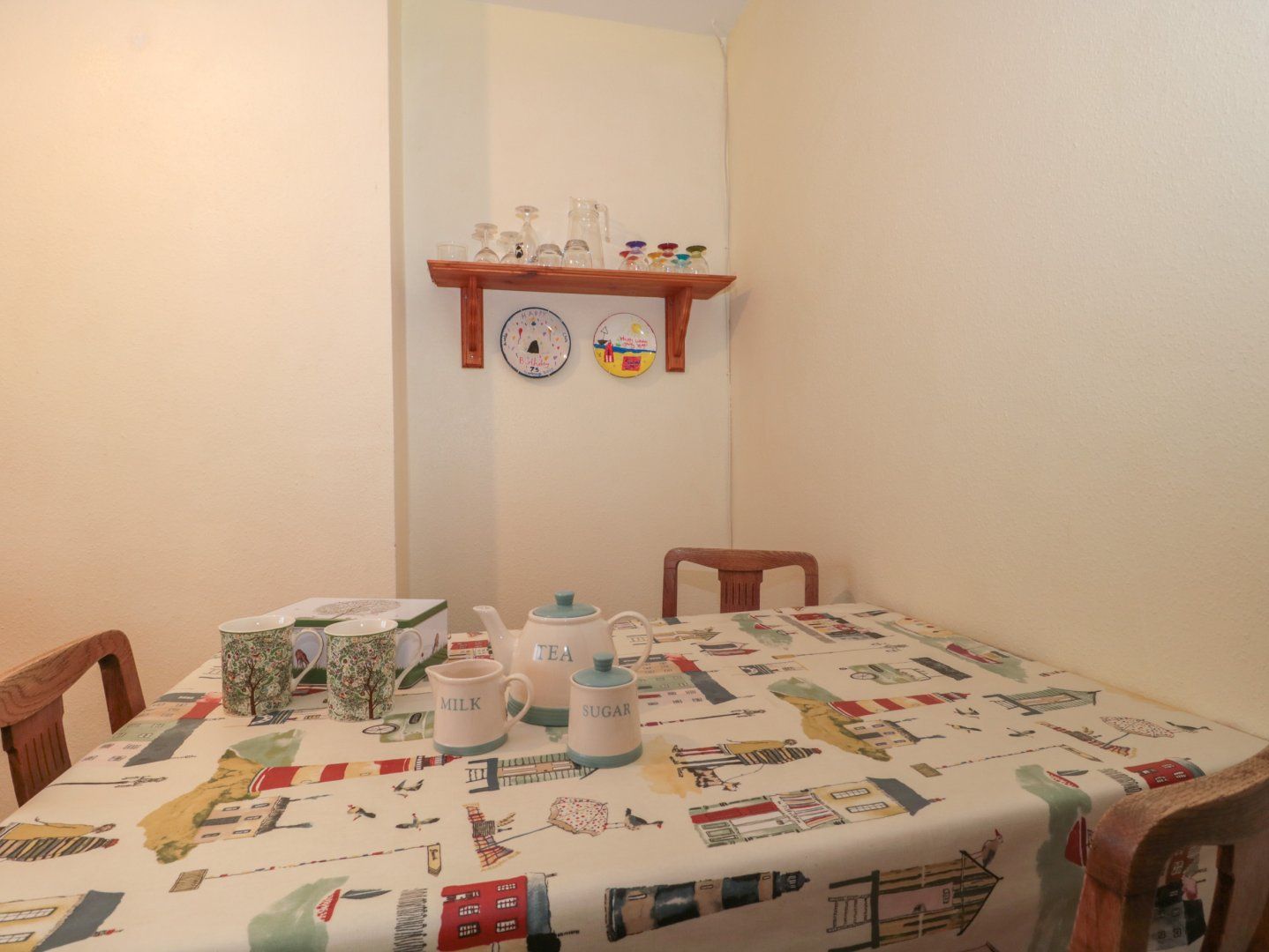 Electric central heating. Electric oven and hob, microwave, fridge with freezer box. TV. Fuel and power inc. in rent. Bed linen and towels inc. in rent. Electric blankets for the winter. Designated parking for 1 car. Sorry, no pets and no smoking. Shop and pub 0.1 miles, beach 0.2 miles. Note: Step access to the property. Note: Babes-in-arms only. Note: This property does not have WiFi. Note: This property can accept a minimum of 3 nights. Please note: There is a fee of £5 per day for heating between the months October - March