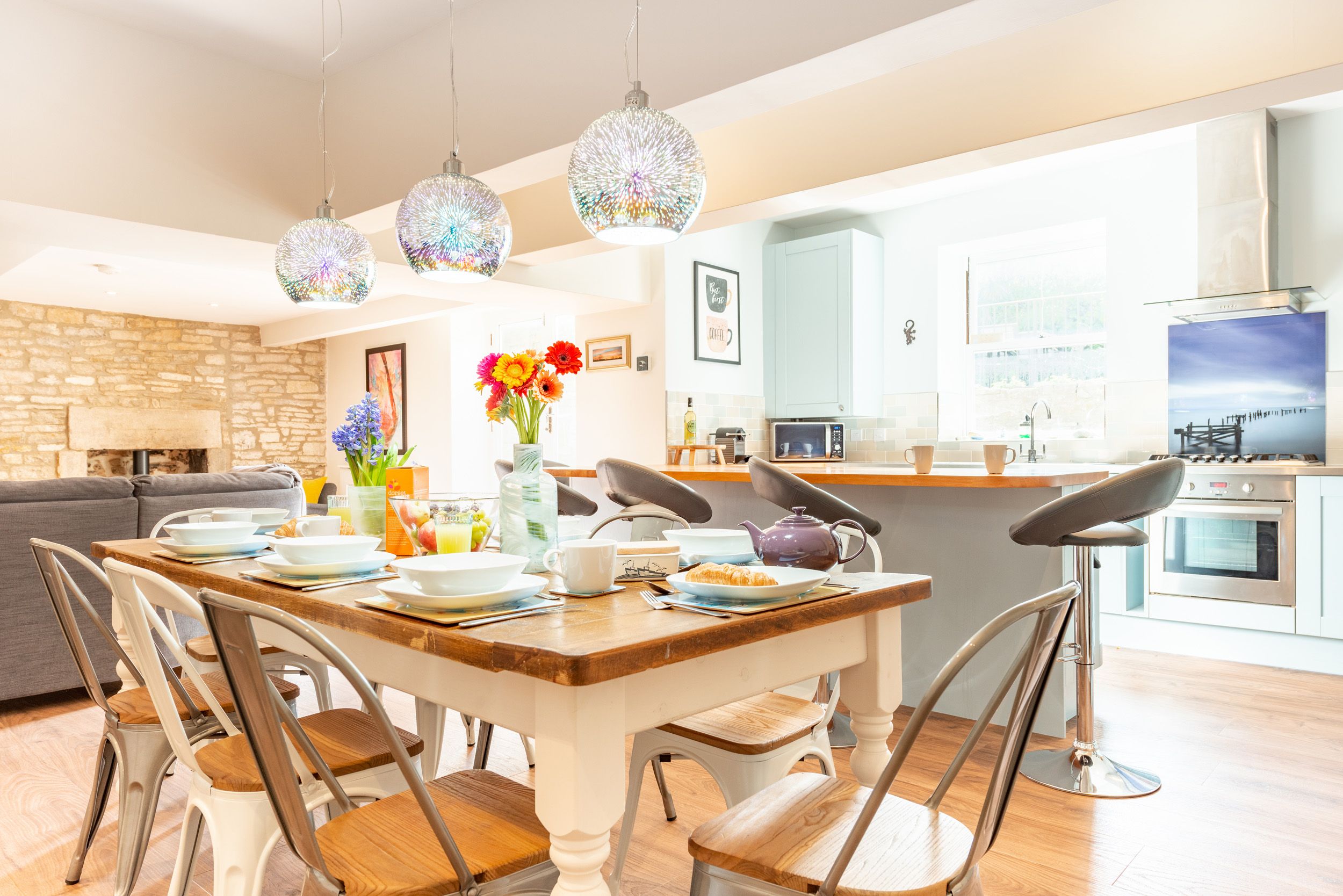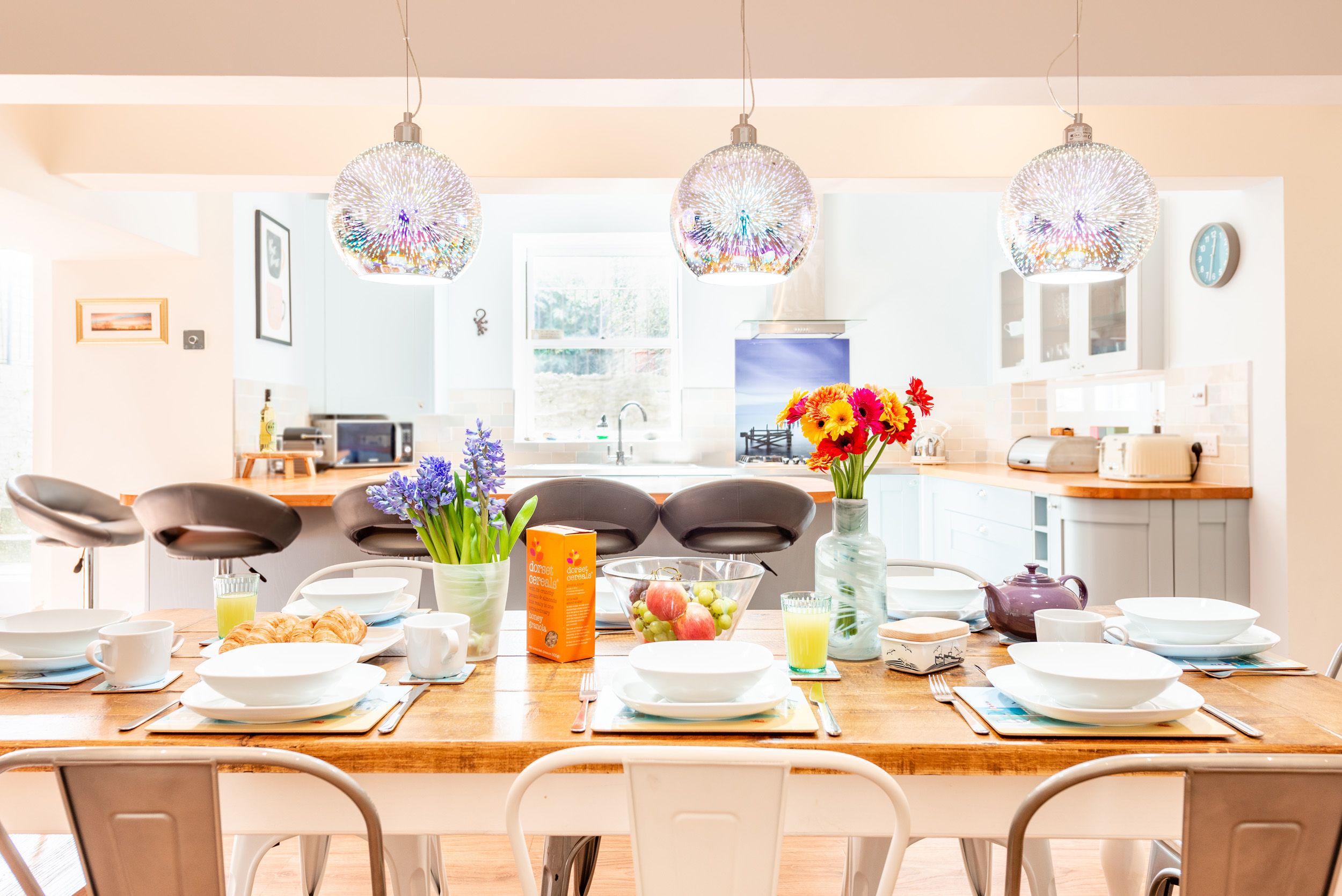 Amenities Central heating. Electric oven, gas hob, microwave, fridge/freezer, washing machine, dishwasher, hairdryer. Smart TV, WiFi, selection of games. Fuel and power inc. in rent. Bed linen and towels inc. in rent. Stairgate installed to the top of the stairs, whilst a travel cot and highchair are available upon request; guests are asked to bring their own bedding for the cot. Roadside parking available on a first-come, first-serve basis. South facing, rear, multi-level garden with patio, terrace and furniture. Sorry, no pets and no smoking. Shop and pub 0.1 miles, beach 0.8 miles. Note: Check-in from 4pm, check-out by 10am. Note: Guests are welcome to use the logs in the wood store outside the patio doors for the woodburning stove