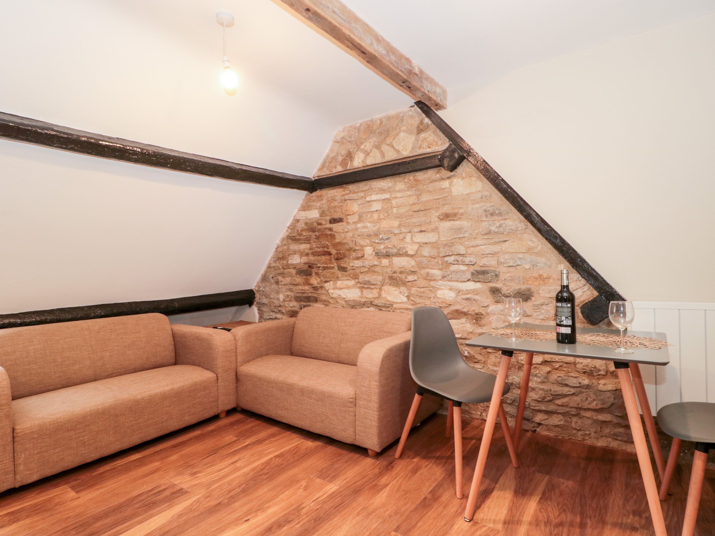 Accomodation Details Second-floor apartment. One king-size bedroom. Shower room with walk-in shower, basin, WC & under floor heating. Open-plan living area with kitchen, dining area, and sitting area