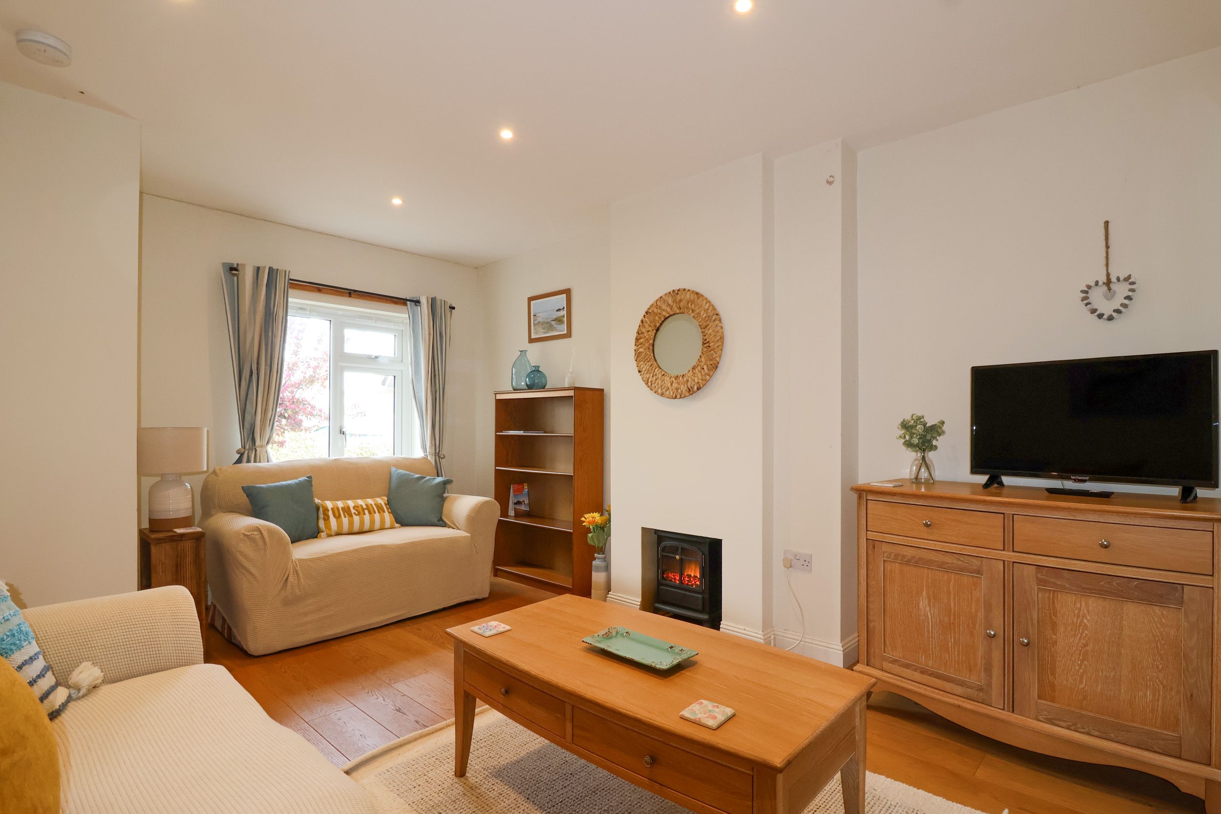 Amenities Gas central heating. Electric oven and hob, microwave, fridge/freezer, kettle, toaster. TV, WiFi. Fuel and power inc. in rent. Bed linen and towels inc. in rent. Off-road parking for 2 cars. Rear enclosed garden with patio and furniture, front enclosed patio. One well-behaved dog welcome. Sorry, no smoking. Shop 0.2 miles, pub 0.2 miles, beach 1.2 miles. Please Note: this property cannot accommodate a Saturday changeover, ie arrival or departure on this day. Please Note: There is currently a small building project going on across the lane from Sea Breeze, during weekday work hours. Please note: This property cannot accommodate Saturday changeover.