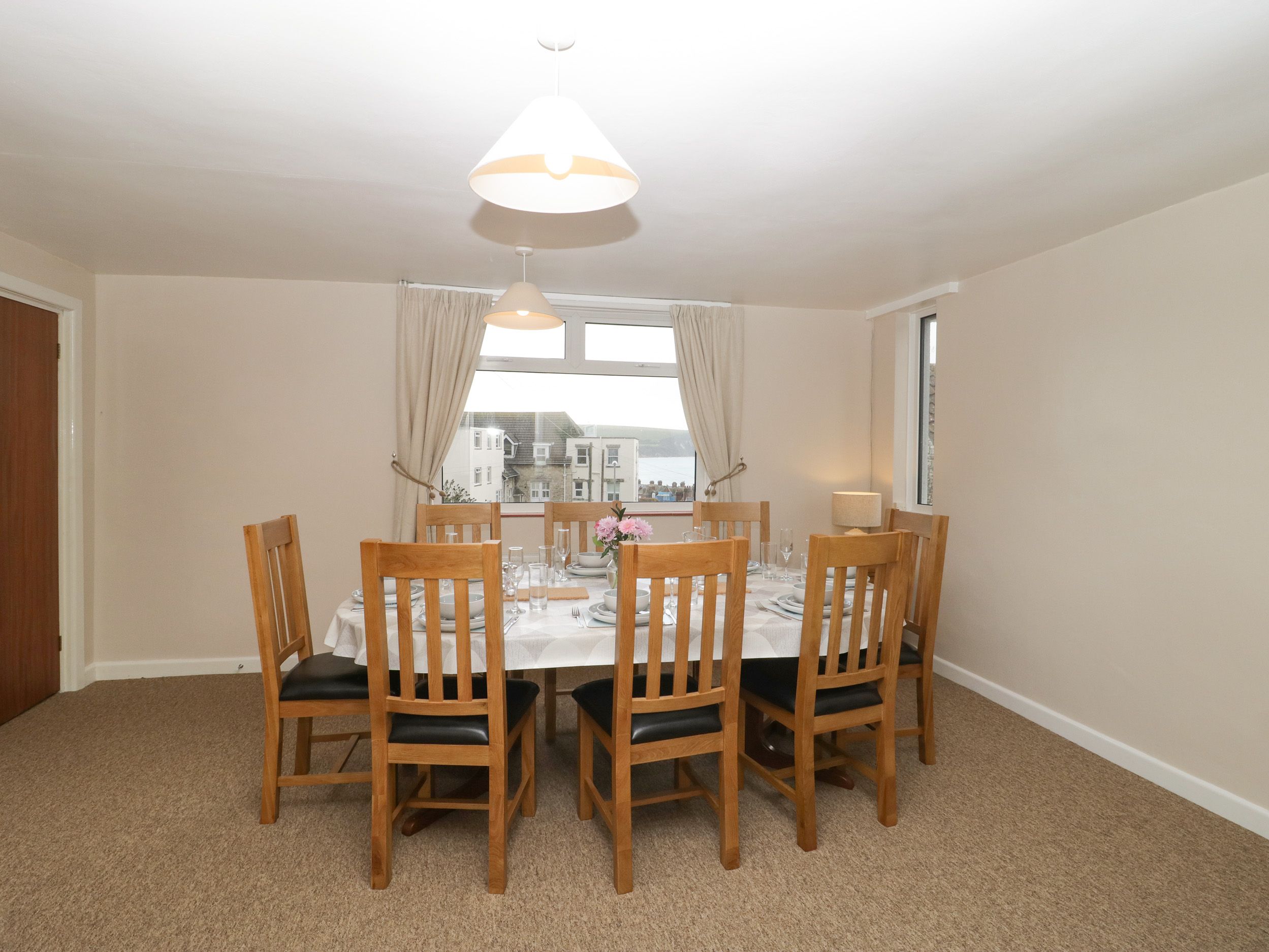Accomodation Details All-ground-floor. Three bedrooms: 1 x family room with king-size and single, 1 x double and 1 x twin. Bathroom with bath, separate walk-in shower, basin, heated towel rail, mirror and WC. Shower room with walk-in shower, basin, heated towel rail, mirror and WC. Kitchen with electric double oven, induction hob, microwave, fridge, freezer, dishwasher. Utility room/entrance with washing machine, fridge and plenty of space for buggies, coats & shoes etc. Dining room with TV. Sitting room with TV and DVD player. Conservatory leading to patio area with benches. Front lawns with sea views. Raised balcony with sea views.
