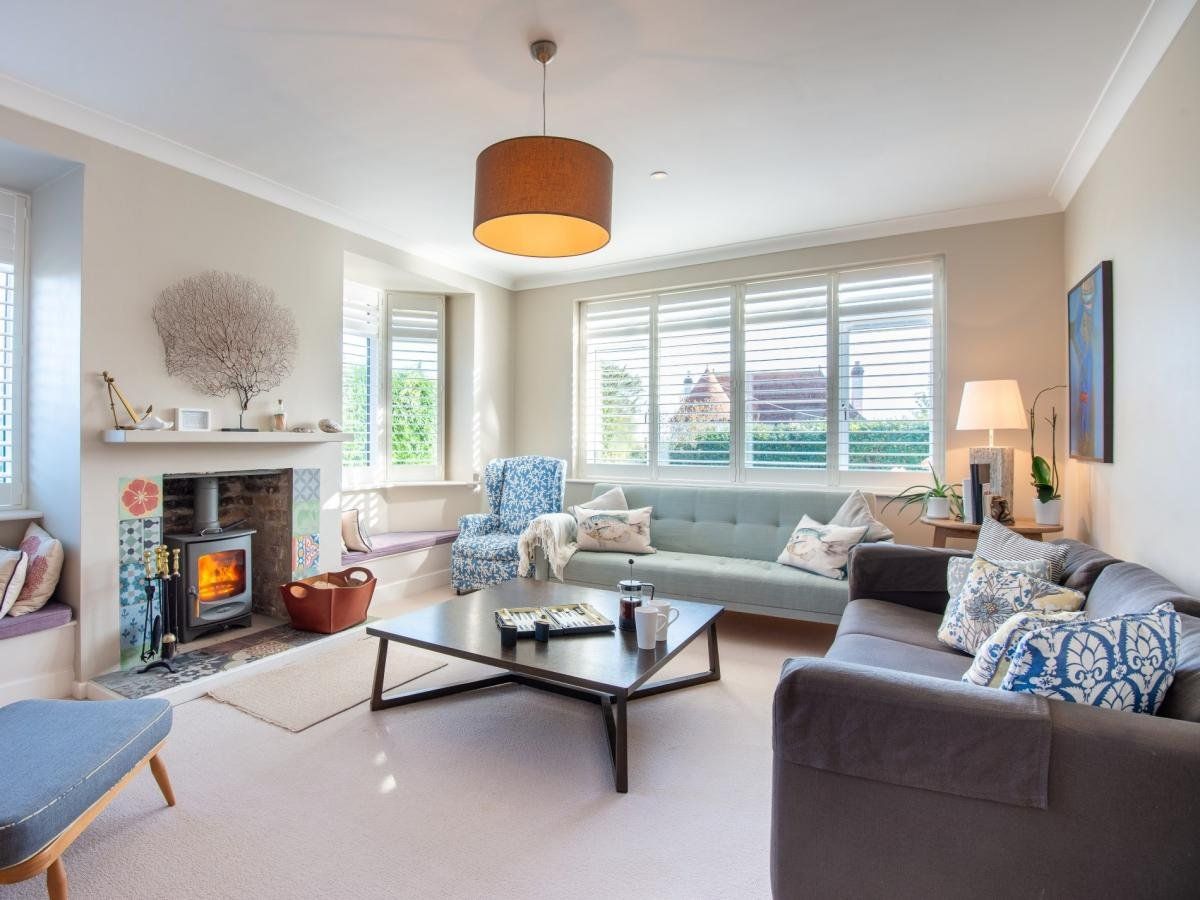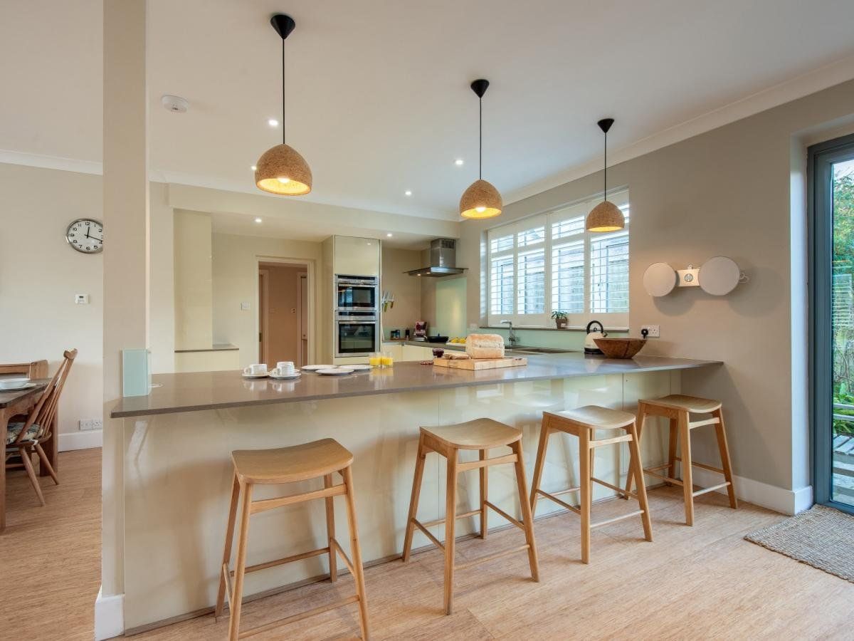 The house's stylish, spacious rooms, sociable outdoor space, and location in the dramatic coastal area of Studland, provides the perfect getaway for a pair of growing families.