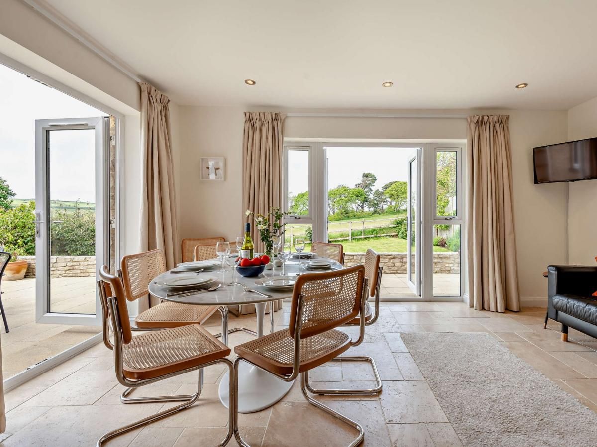 This is a lovely base for exploring the breathtaking scenery and quaint villages of the Purbeck Hills, or for discovering the sandy coves and impressive cliffs of the Jurassic Coast. This charming hideaway also offers stunning rural views and provides ample space for up to seven guests.