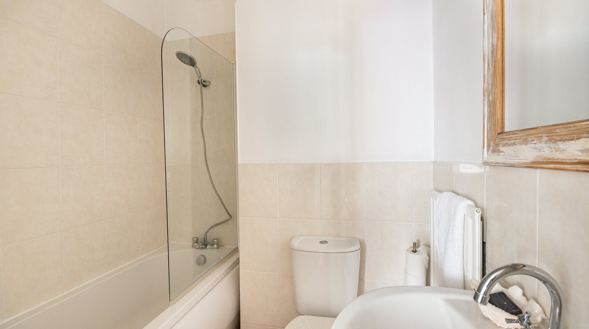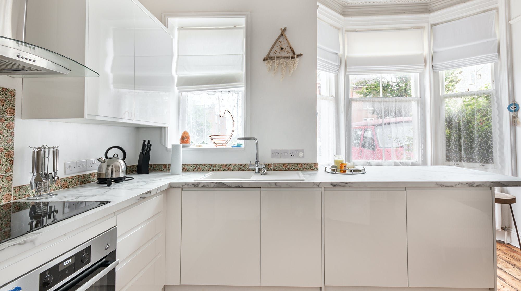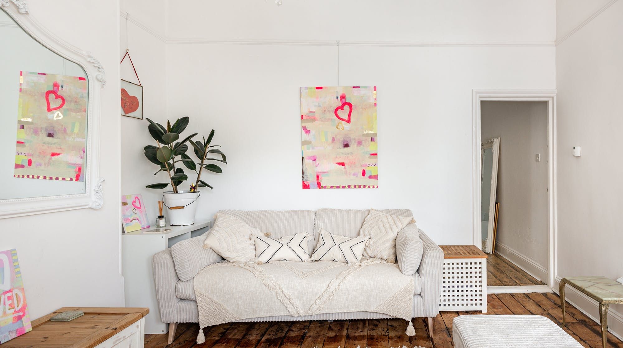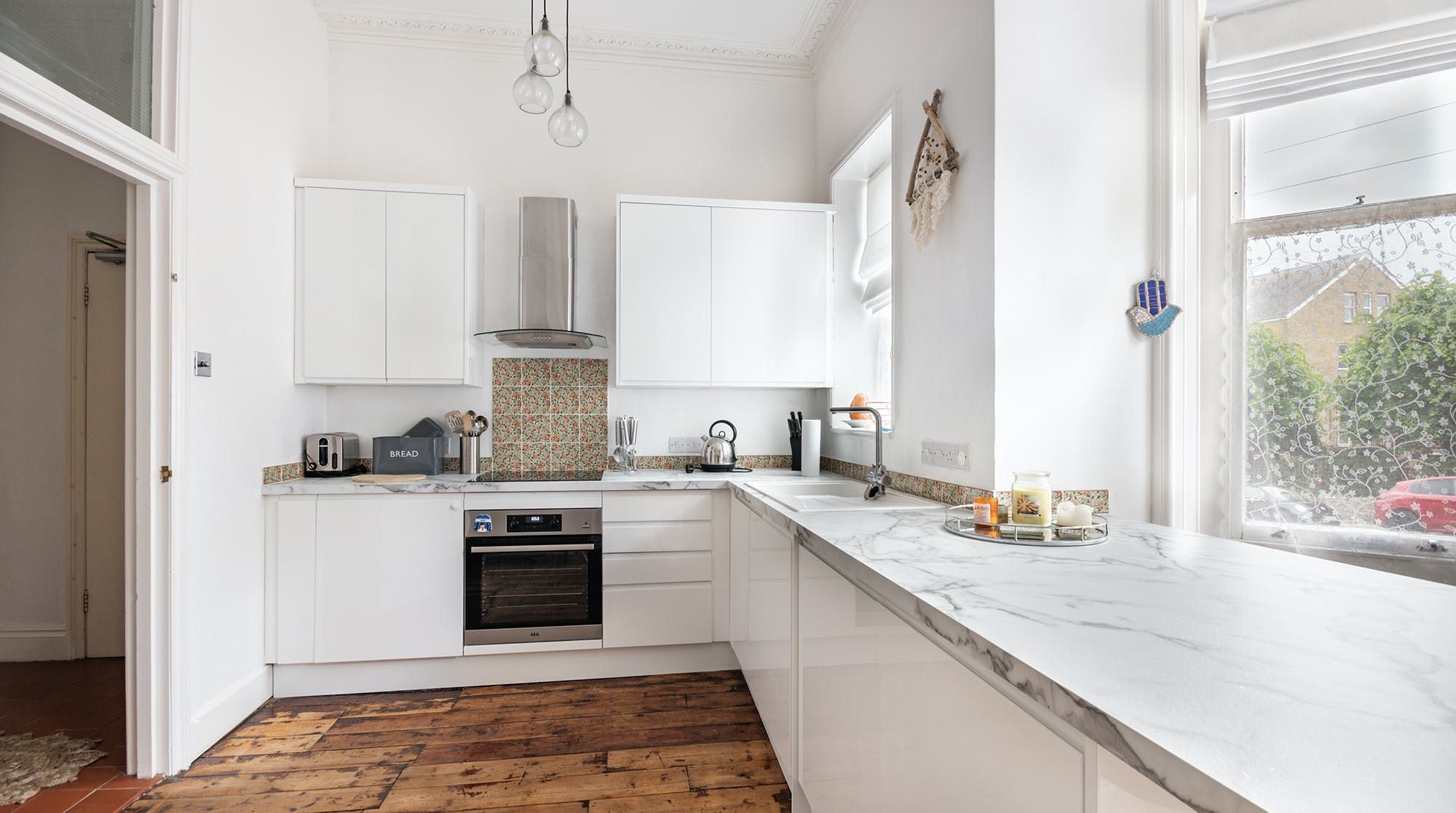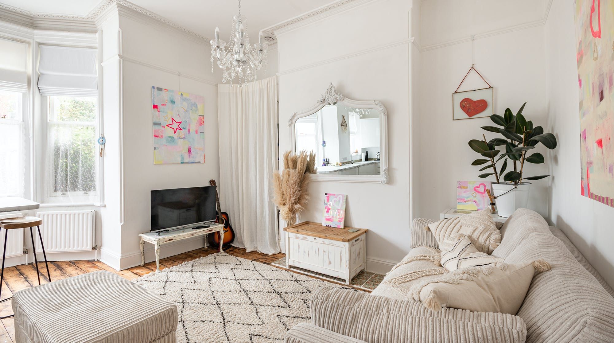 Tall ceilings, sash windows, oak floorboards and chandeliers are the order of the day here, along with all-white decor and pops of colourful modern art. There's a squashy sofa in the cosy living room, and a well-kitted-out, modern kitchen if you'll be cooking at home. But it's the bedroom we really love here, with its vintage rattan headboard and French vintage furniture.