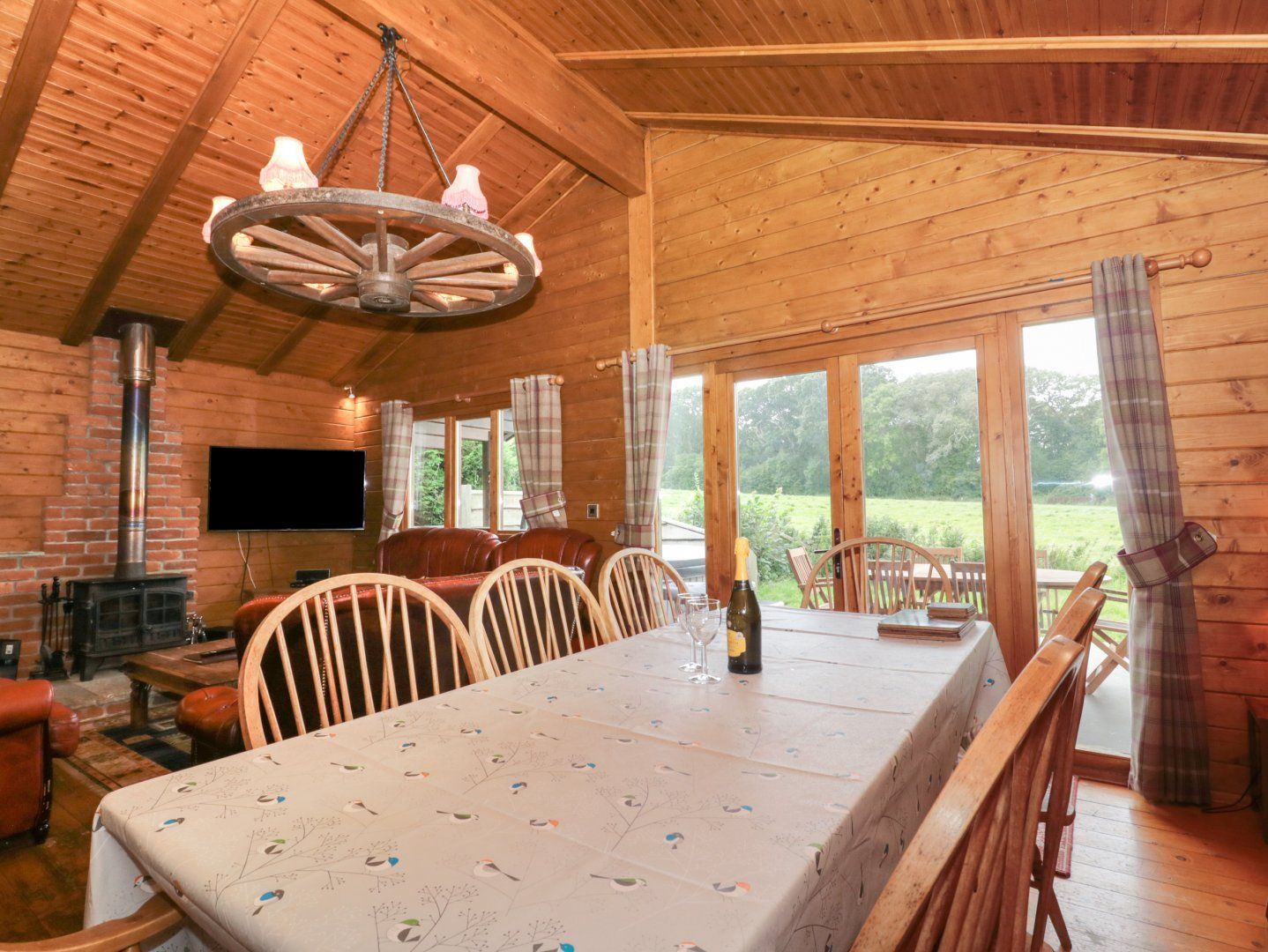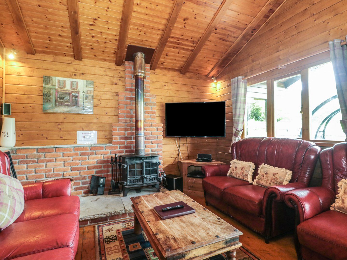 Accomodation Details Single-storey. Three bedrooms with Freeview TVs: 1 x double with en-suite walk-in shower, basin and WC, 1 x double, 1 x family room with single and bunk. Bathroom with whirlpool/jacuzzi bath, walk-in shower, basin and WC. Open-plan living space with kitchen, dining area and sitting area with woodburning stove