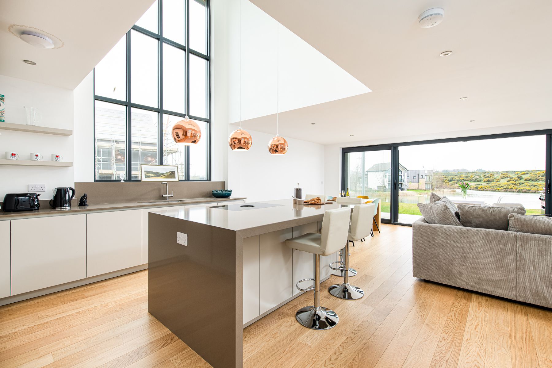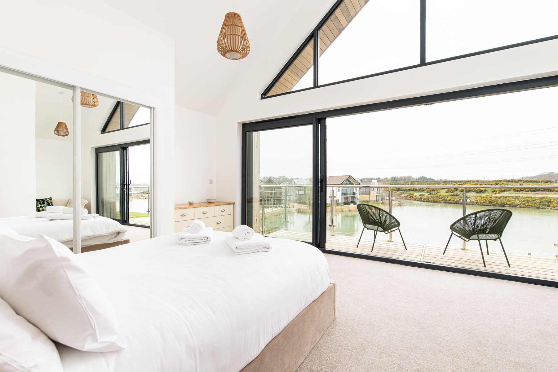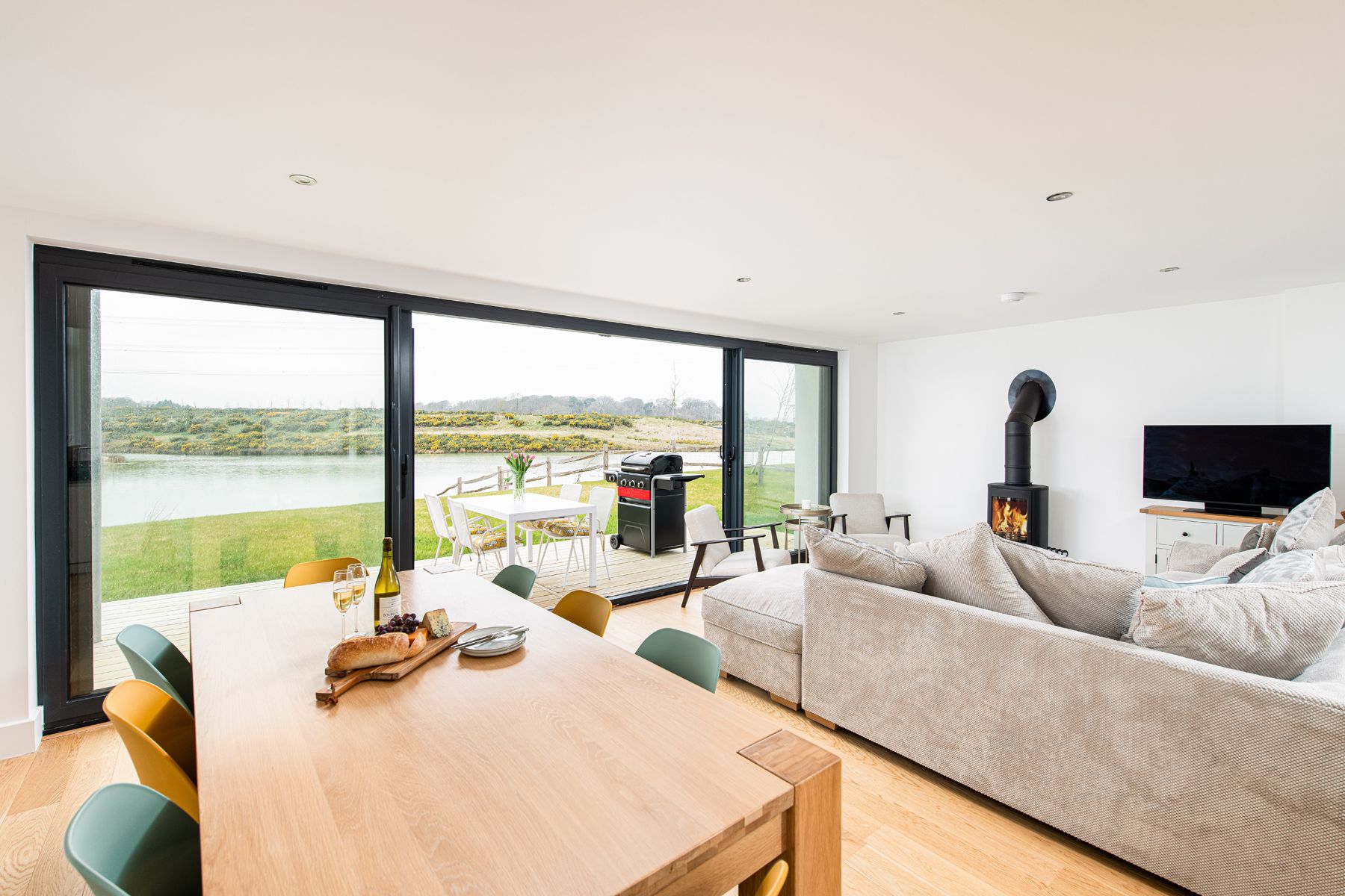 Set right on the water’s edge in the middle of a rural Dorset development, this modern four-bedroom home is designed for laid-back lake life. Gather around the kitchen island for a spirited evening chat with friends, enjoy sunset drinks in the garden, or watch the light dance on the water from the comfort of the outdoor table on the patio. A ground-floor bedroom and shower room make it ideal for multigenerational stays, and other highlights include a wood-burning stove, sleek interiors, and access to the development’s outdoor pool and spa. With paddleboards, kayaks, bikes and even a pizza shack on site, you’ll have everything you need to explore – or take it slow.