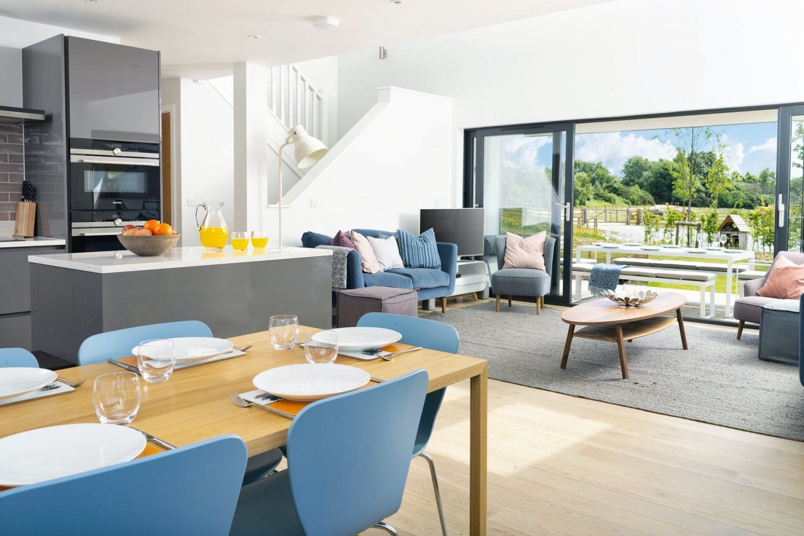 This holiday cottage is nestled in a row of similar homes by a natural lake, with lovely views from the large wrap-around terrace. We think this home is great for a family escape – one double bedroom is located on the ground floor for easy access, and the bunk bed upstairs is ideal for children. There's a range of communal facilities including a spa, heated infinity pool, roof bar, and even a small private beach, and Dorset's Jurassic Coast is just a short drive away.