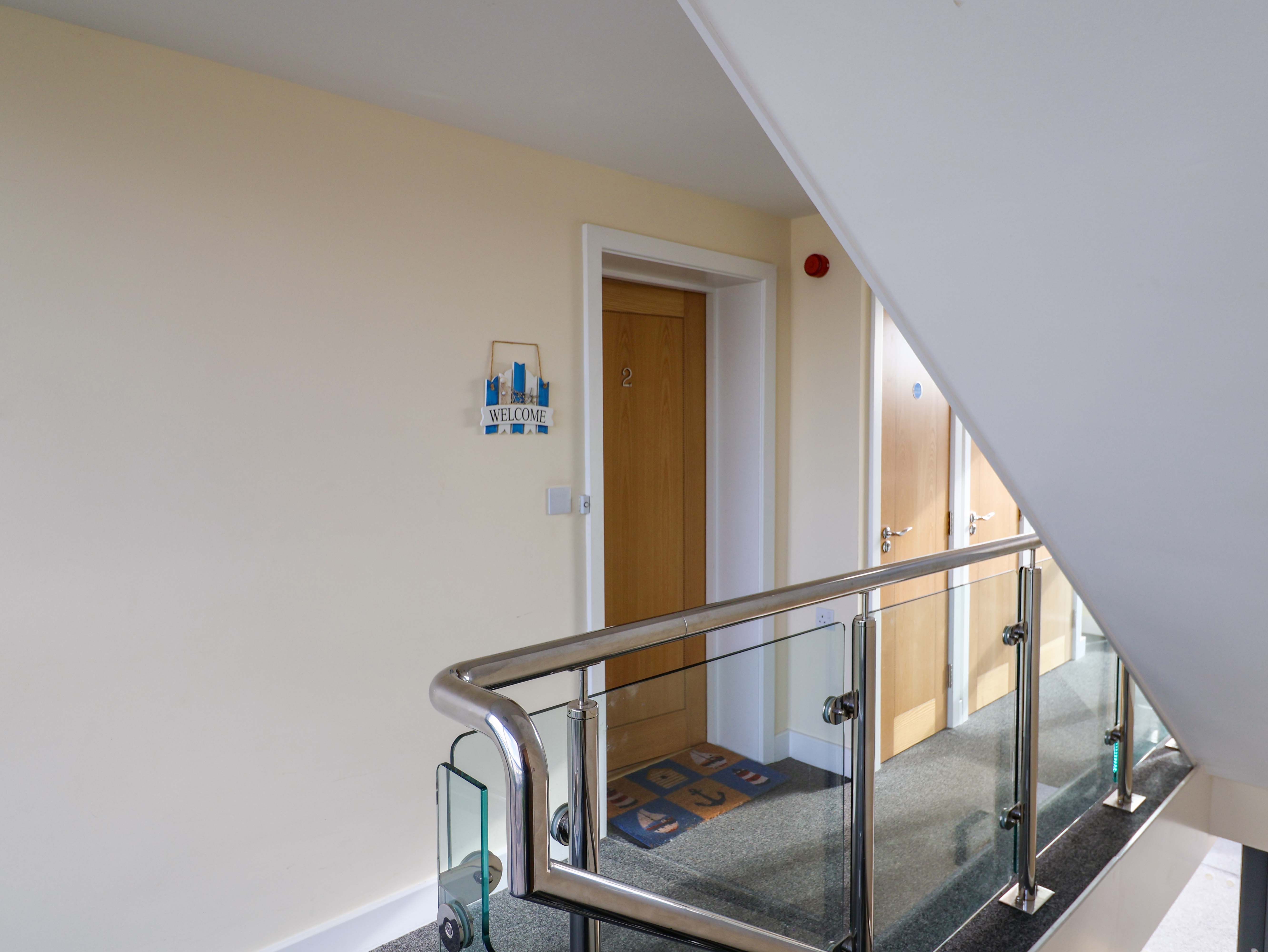 Accomodation Details First-floor apartment. Open-plan living area with fully fitted kitchen, sitting and dining area. Two bedrooms: 1 x king-size with en-suite shower-room with walk-in shower, basin and WC, 1 x twin. Bathroom with bath, basin and WC.