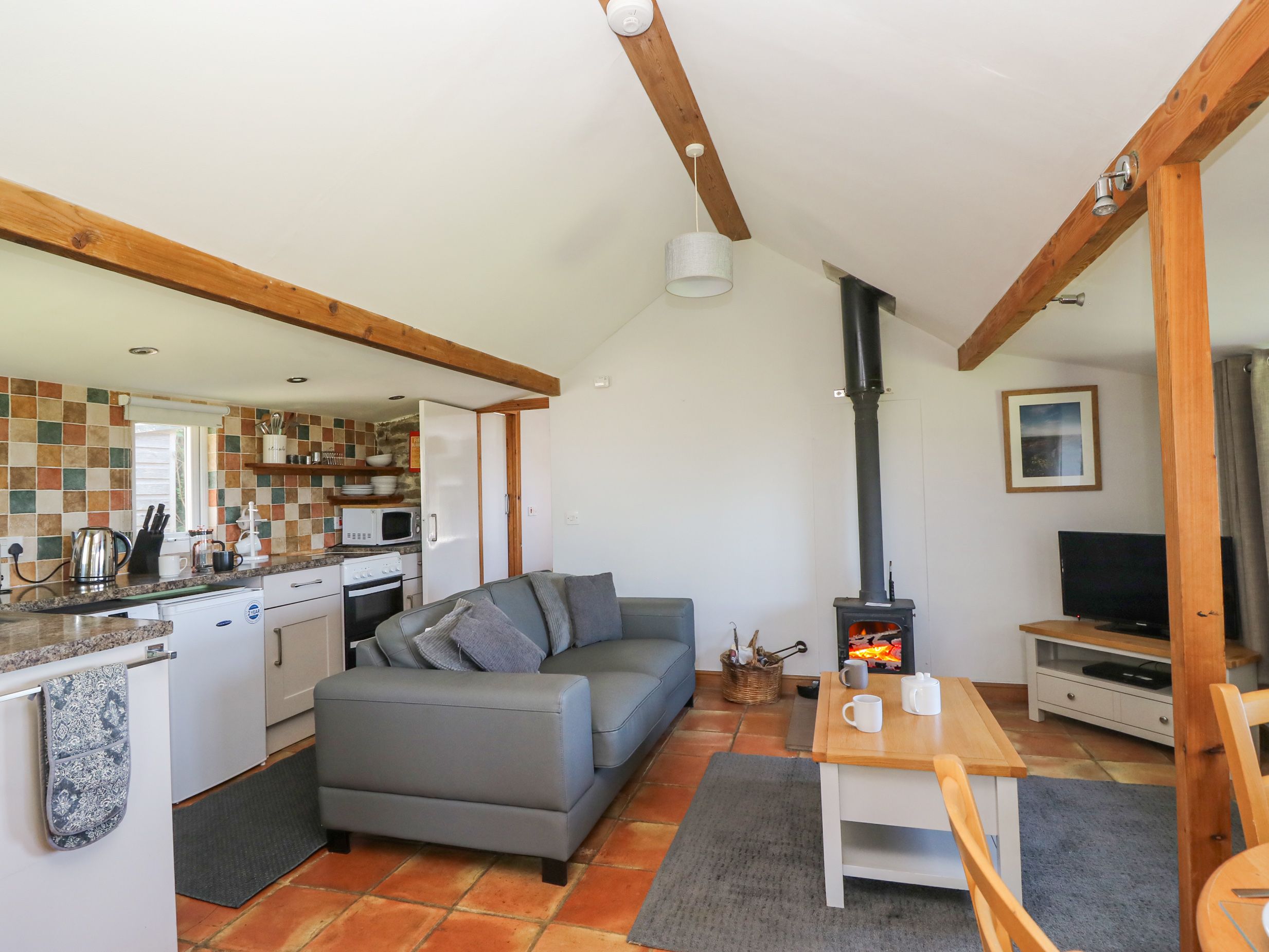 Accomodation Details All ground floor. One double bedroom. Wet room with shower, basin and WC. Open plan living area with kitchen, diner and sitting area with wood burning stove.