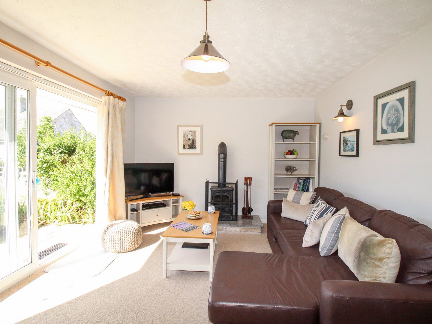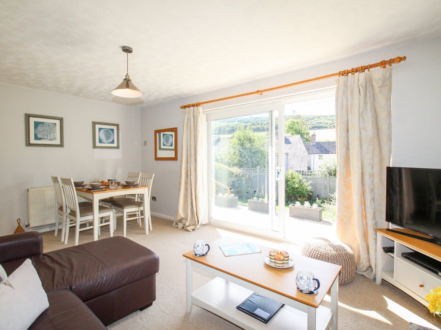Central heating. Electric oven, induction hob, microwave, fridge, freezer, washing machine, and dishwasher. Smart TV, WiFi, selection of books. Fuel and power inc. in rent. Bed linen and towels inc. in rent. Off-road parking for 1 car. Enclosed rear garden with patio, lawn, and furniture. One small dog welcome. Shop 0.6 miles, pub 0.3 miles, beach 1.6 miles. Note: There is a steep drop from the patio area in the garden, please take care. Note: There are three steps up to the property and a set of stairs down to the lower-ground-floor which may not be suitable for guests with lower mobility