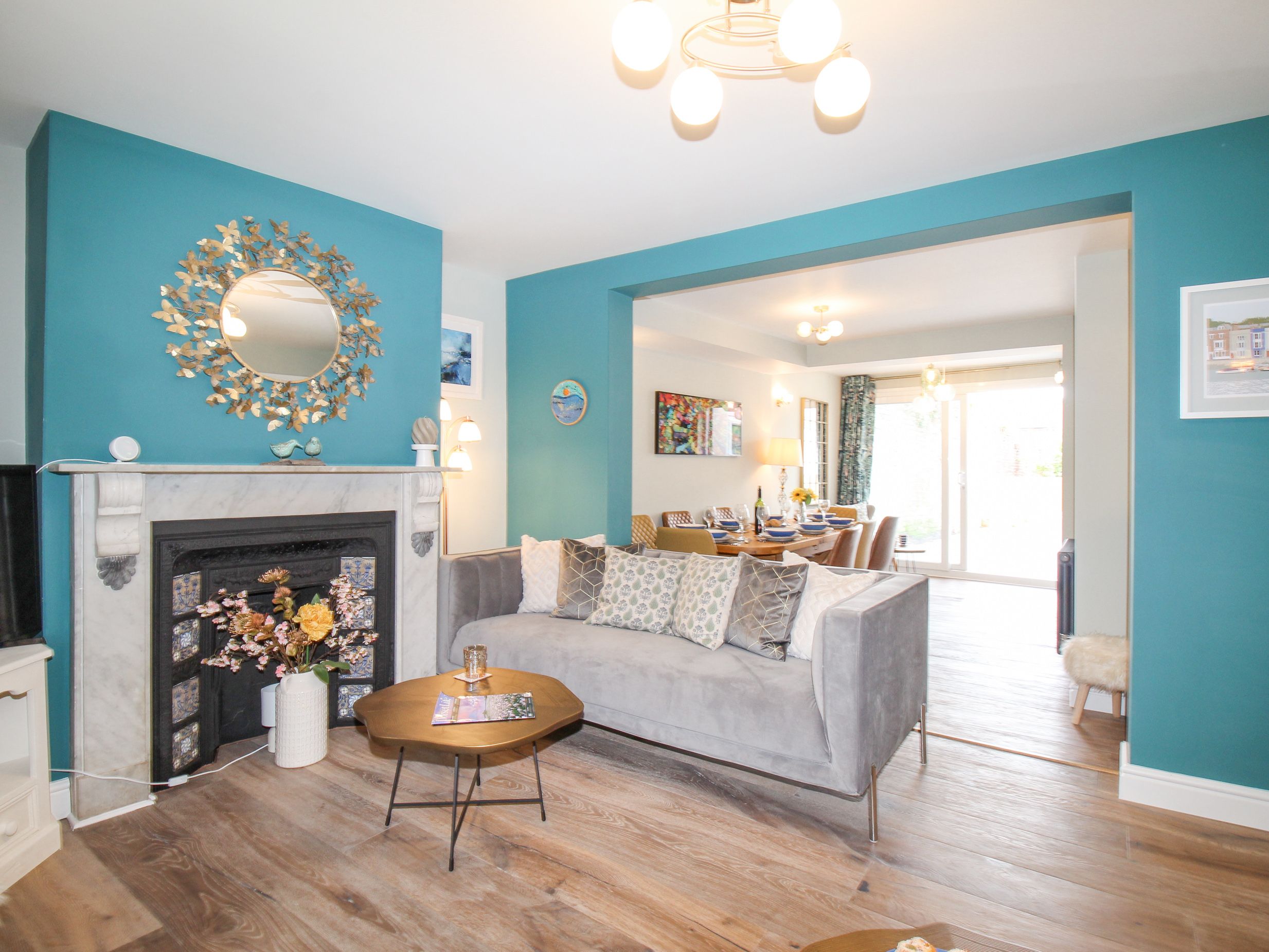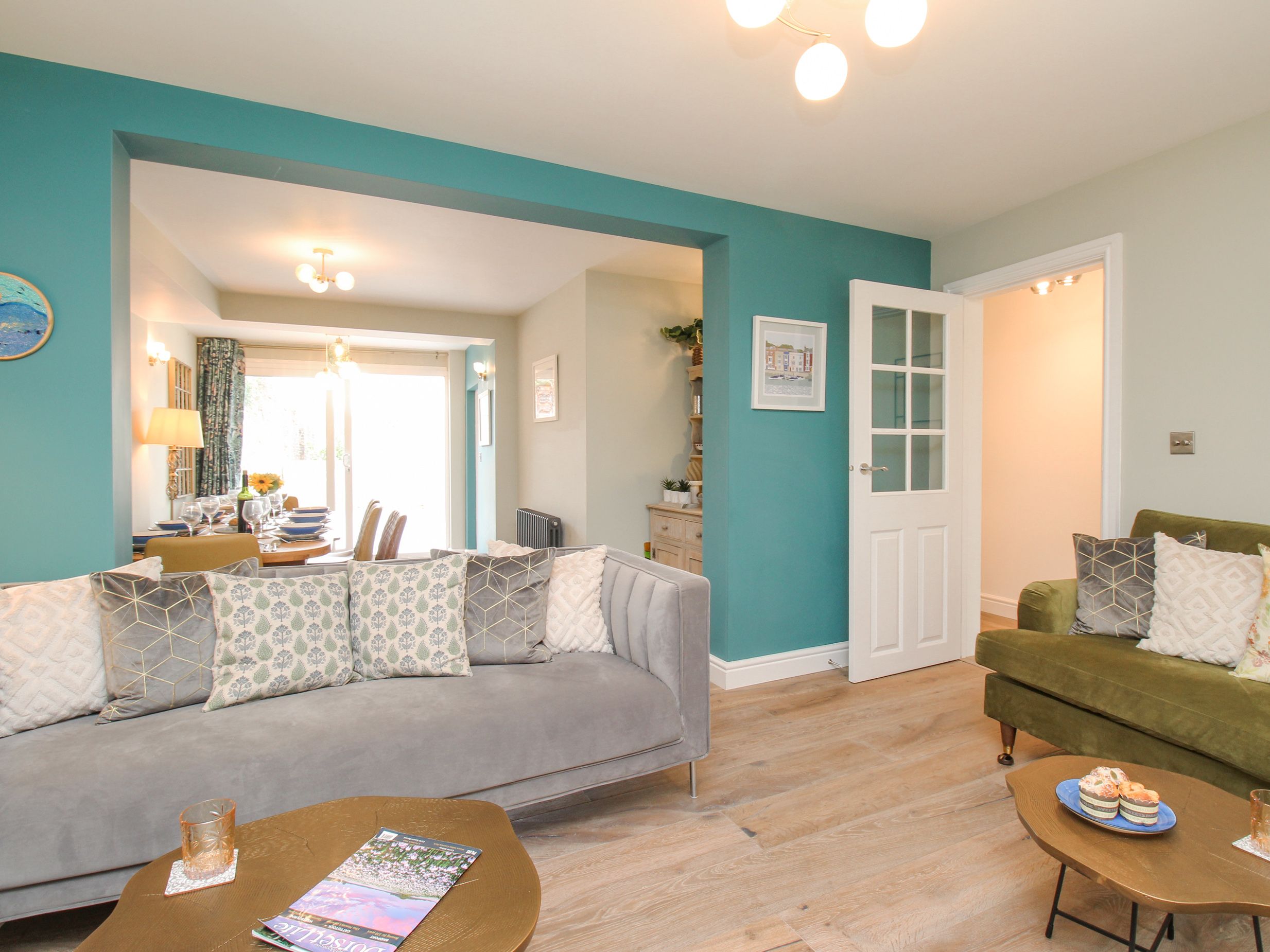 Accomodation Details Over three floors. Four bedrooms: 2 x king size, 1 x double and 1 x second-floor bedroom with 3 x single beds. Bathroom with bath, shower over, basin and WC. Ground-floor shower room with walk-in shower, basin and WC. Kitchen. Living/dining room