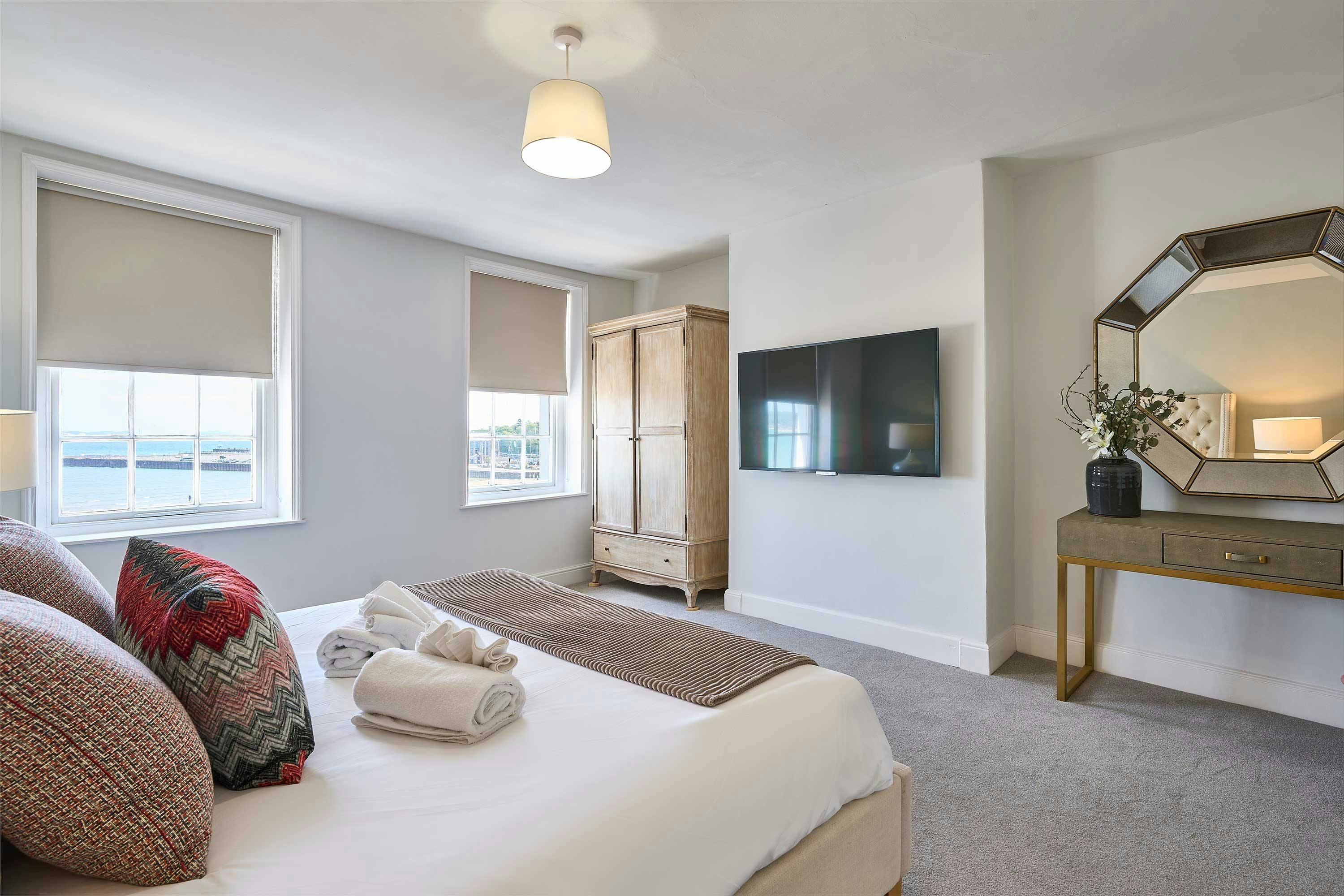Right on Weymouth's beachfront, this home blends old-school British seaside charm with contemporary comfort. Spread across three floors, there's plenty of space to gather and unwind, with uninterrupted views over the sea. No need to worry about the car — the historic harbour’s just a stroll away, brimming with seafood spots, cosy pubs, and quirky shops. But if you’re feeling adventurous, the jaw-dropping Jurassic Coast is right on your doorstep, with iconic spots like Durdle Door and Lulworth Cove just a short drive away.