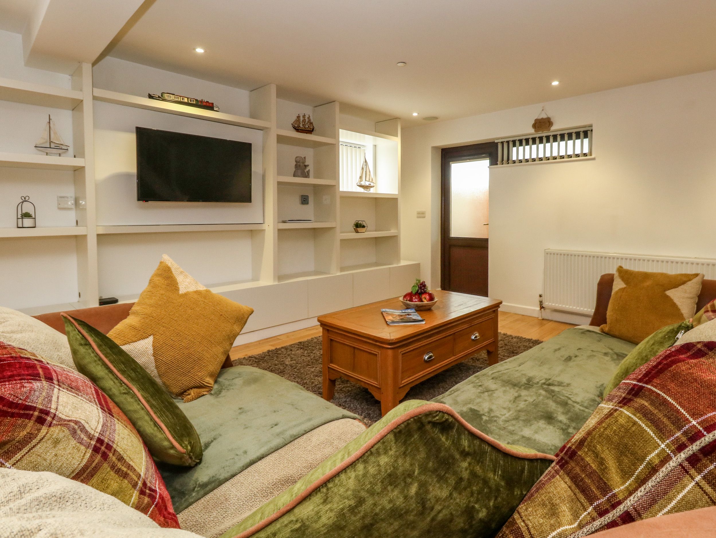 Accomodation Details Three bedrooms: 1 x double with TV and en-suite basin and WC, 1 x ground-floor double with high level windows with TV, 1 x twin with TV. Ground-floor shower room with walk-in shower, basin, heated towel rail, and WC. Kitchen. Living/dining room