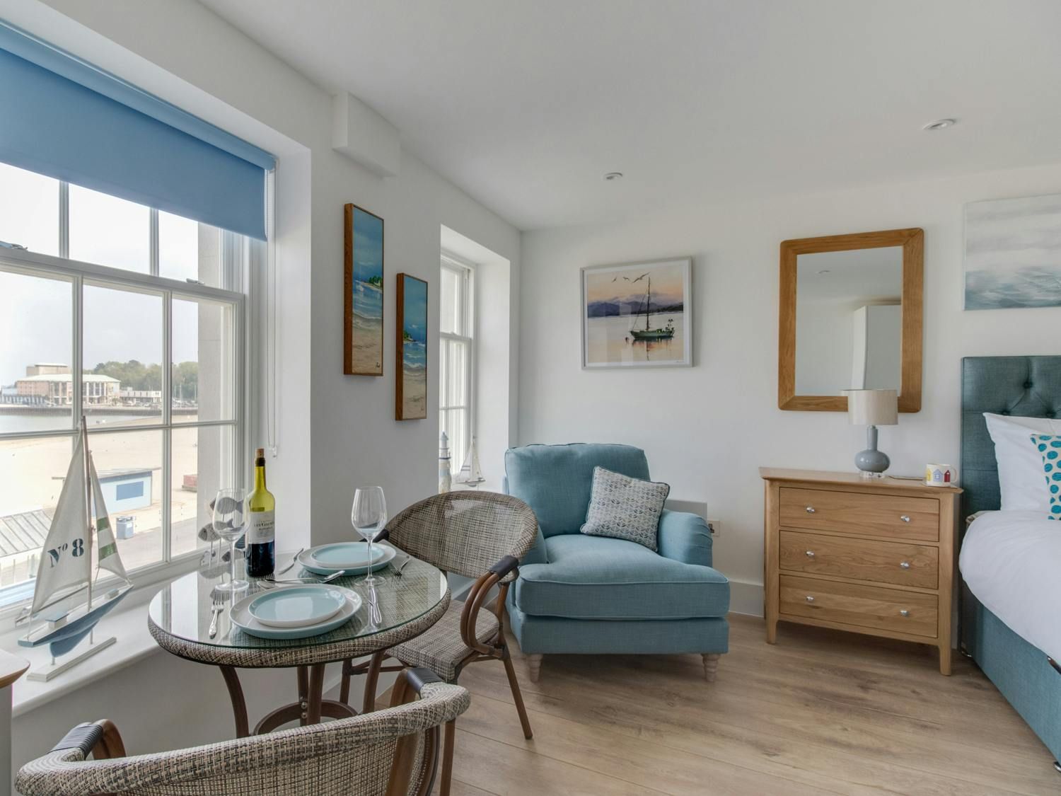 Right on Weymouth's lively seafront, this studio apartment is a great fit for couples. You won't have to travel far to visit the beach or harbour – both are practically on your doorstep. Pubs, bars, and restaurants (including one downstairs) are also nearby – it can get a tad noisy, but that's the charm of being so central. Besides, the coastline views from the Georgian windows are something special. Wake up to the waves crashing on the pebbled beach, then finish the day with a glass of wine as the sun goes down on the horizon. That's bliss.