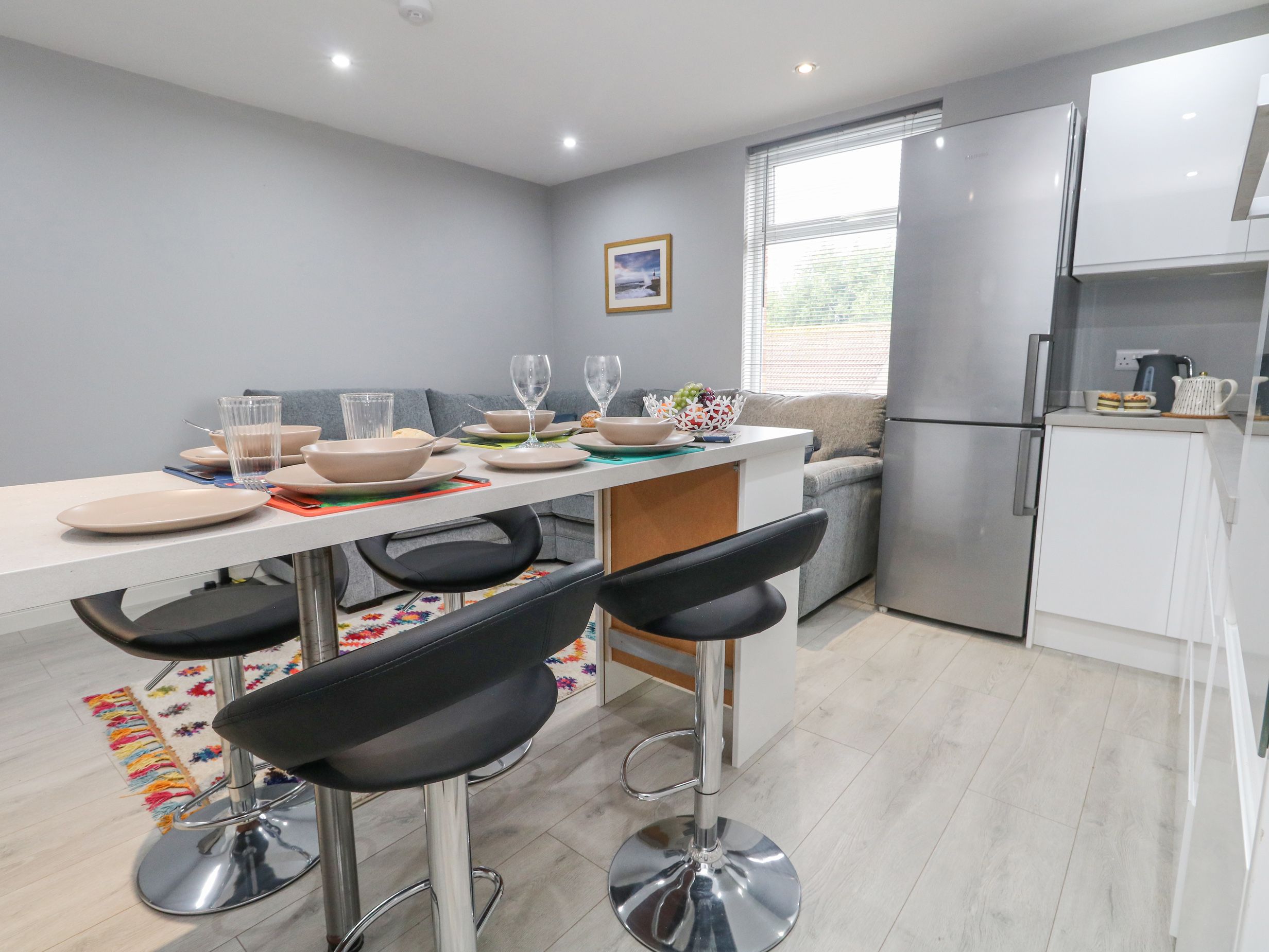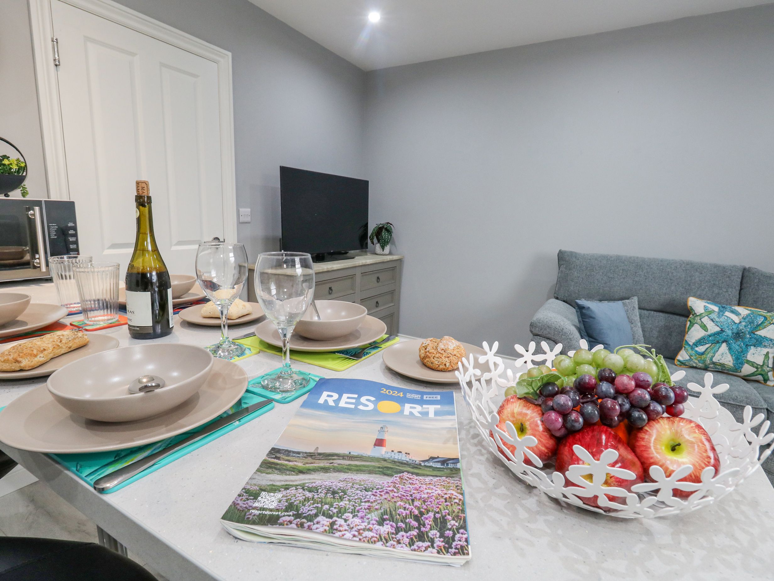 Holiday home Dolly Dream, a duplex apartment, consists of an open-plan living area with a breakfast bar seating four, double oven, electric hob, fridge/freezer, washing machine, microwave, kettle, and toaster, and a sitting area with a Smart TV. The bedrooms consist of a king-size with a Smart TV and king-size. There is a bathroom with a bath, walk-in shower, basin, heated towel rail, and WC. WiFi, fuel, power, bed linen, and towels are included in the rent. Sorry, no pets and no smoking. Roadside parking available (subject to spaces). You'll find the closest shop in 0.2 miles, a pub in 0.1 miles, and a beach in 0.3 miles. Your journey to Dorset is guaranteed to be one to remember with a stay at Dolly Dream.