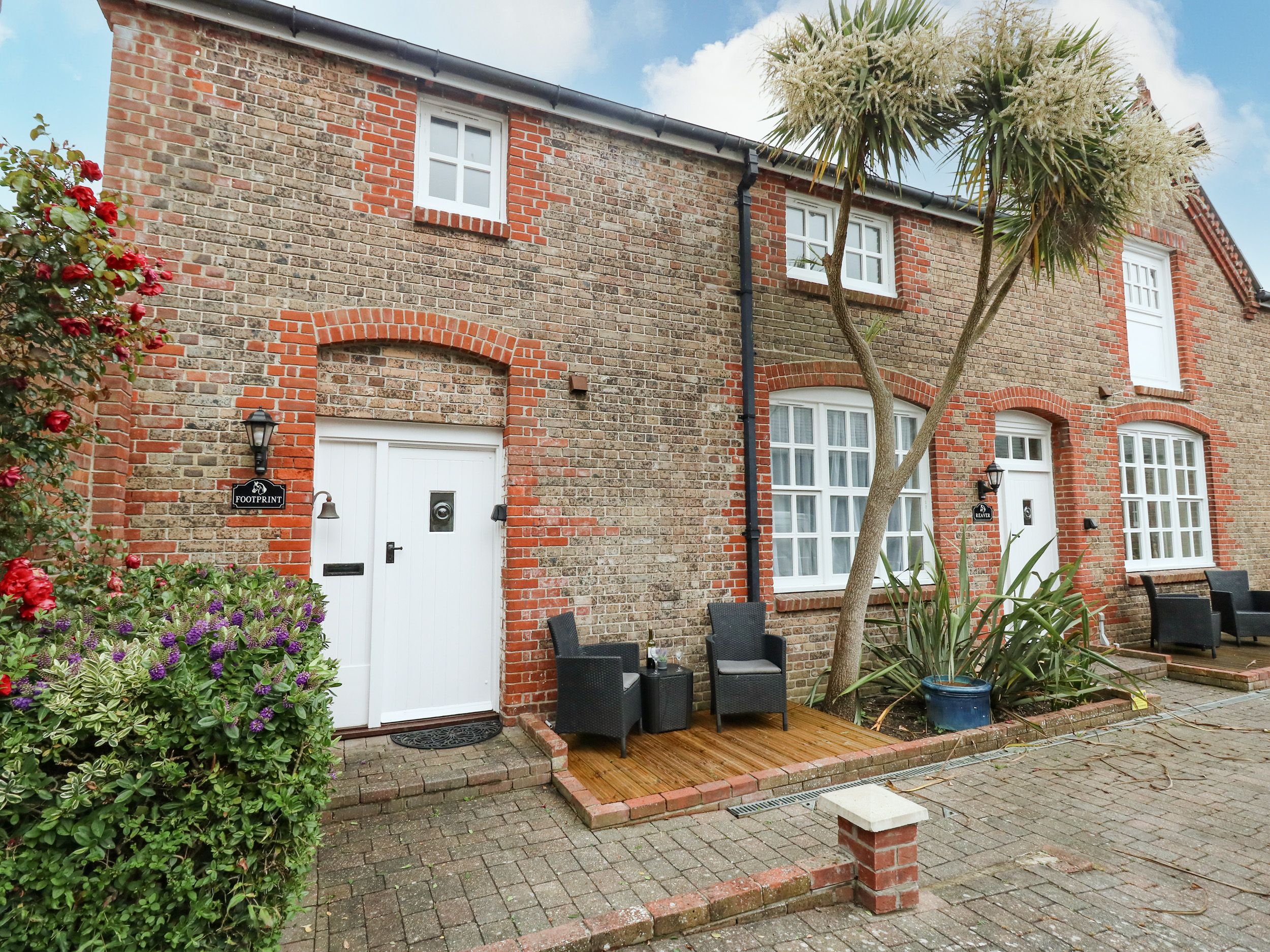 Footprint is located in a gated development, formerly a stables in Weymouth. The property has a sitting room with dining area. There are two bedrooms, 1 x double, with a single bed and with en-suite and 1 x twin (very small room) plus family bathroom. To the front of the property there is a small patio with furniture. The property also has allocated gated parking for one car. Footprint in Weymouth a few minutes walk from the harbourside is the ideal place for your seaside holiday. Please Note: This property only accepts a minimum of 7 night stays between 30th May- 1st October 2026. Friday Changeovers only. Note: max 5 people. Note: guests need to provide their own cot linen. Note: the twin single bedroom is very small. 1 dog only or please enquire for 2 small dogs Please note that this property’s Wi-Fi is shared with a neighbouring property.