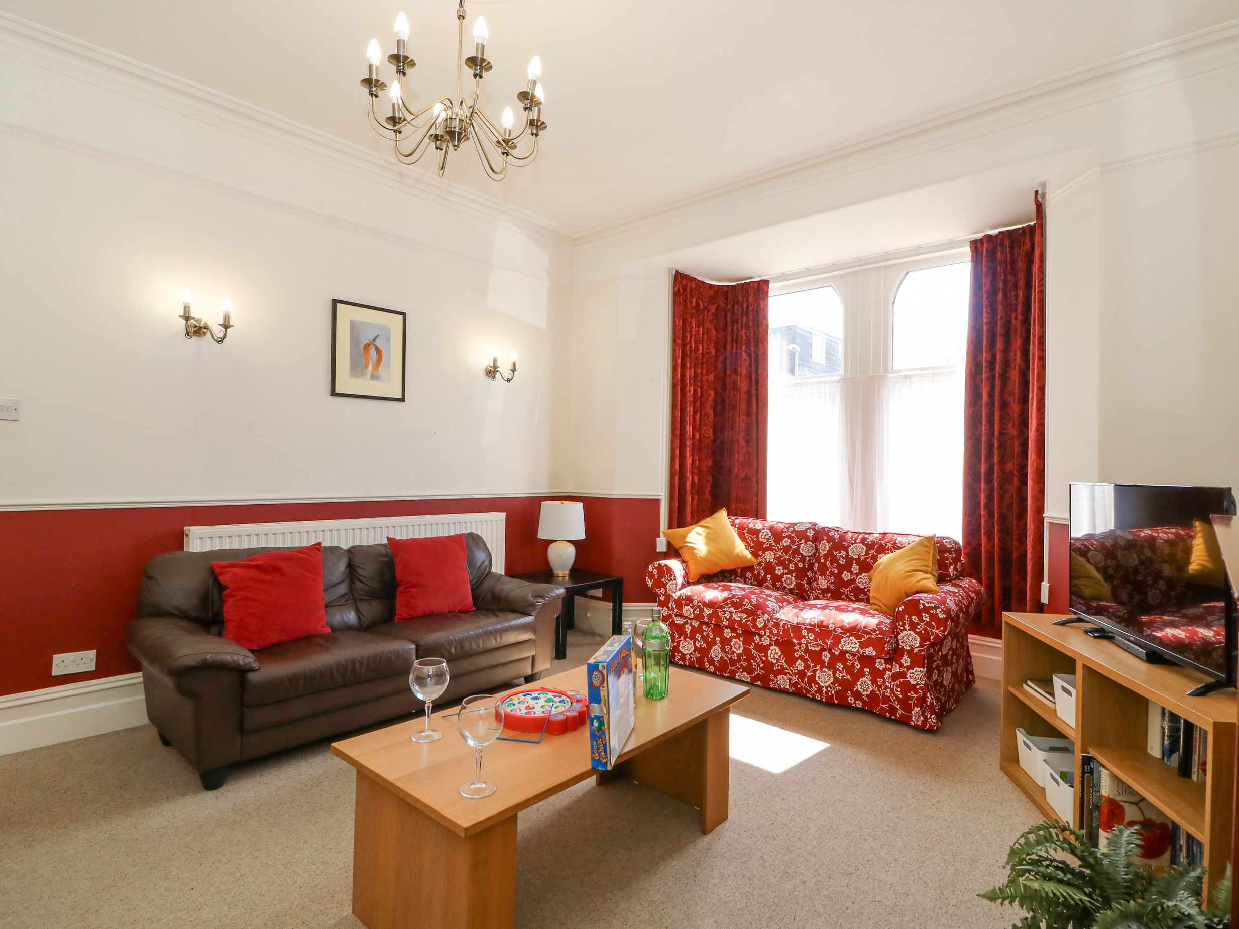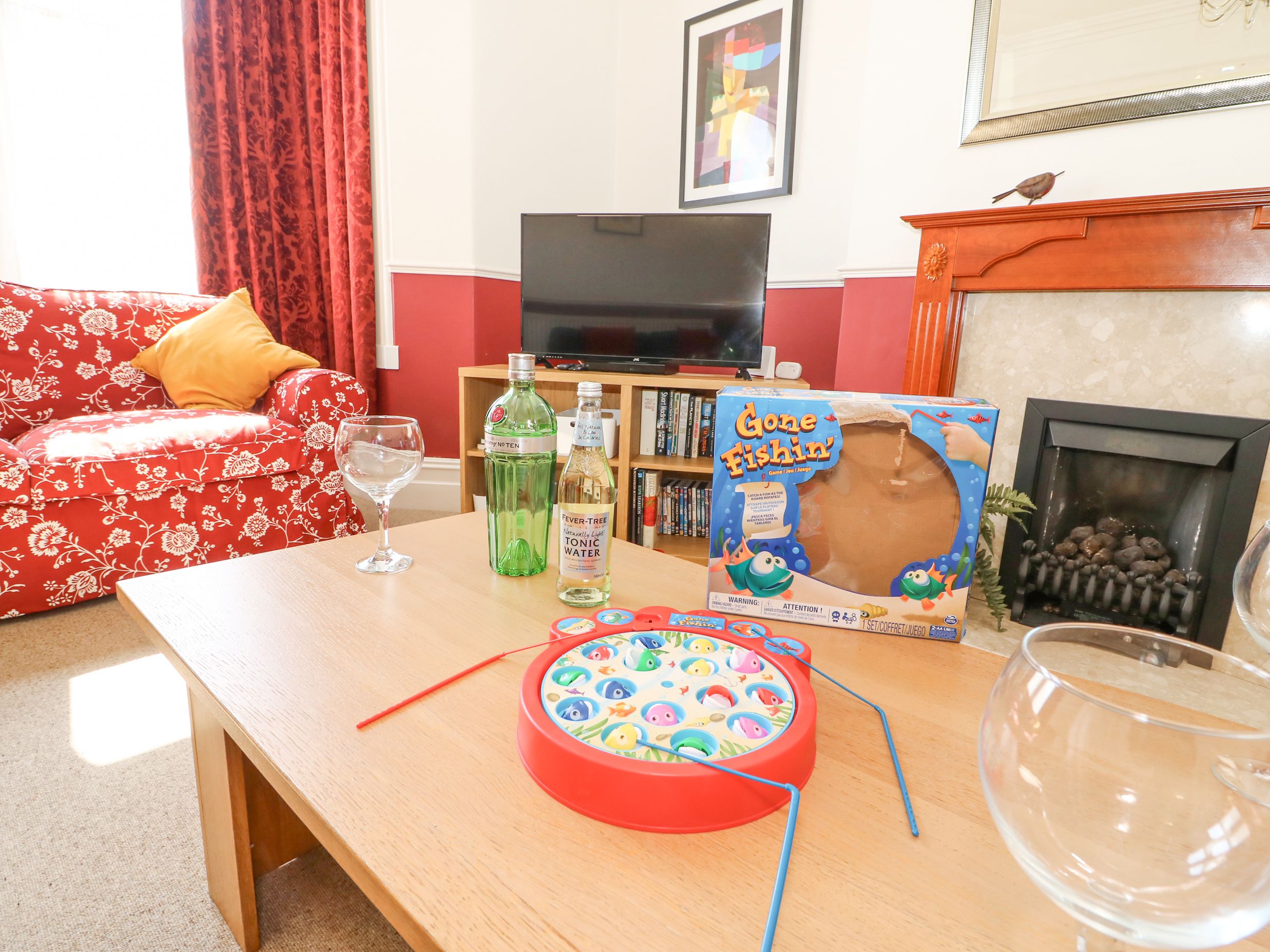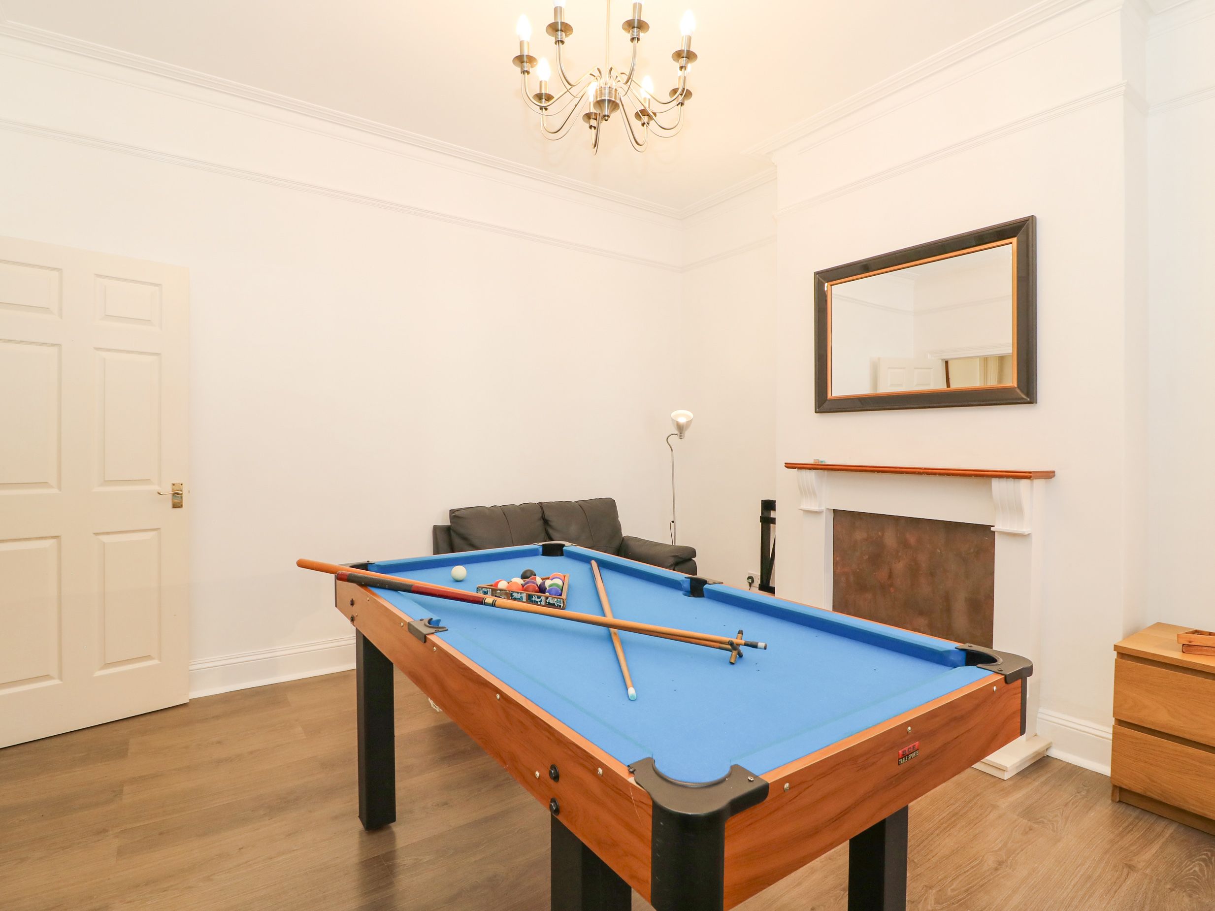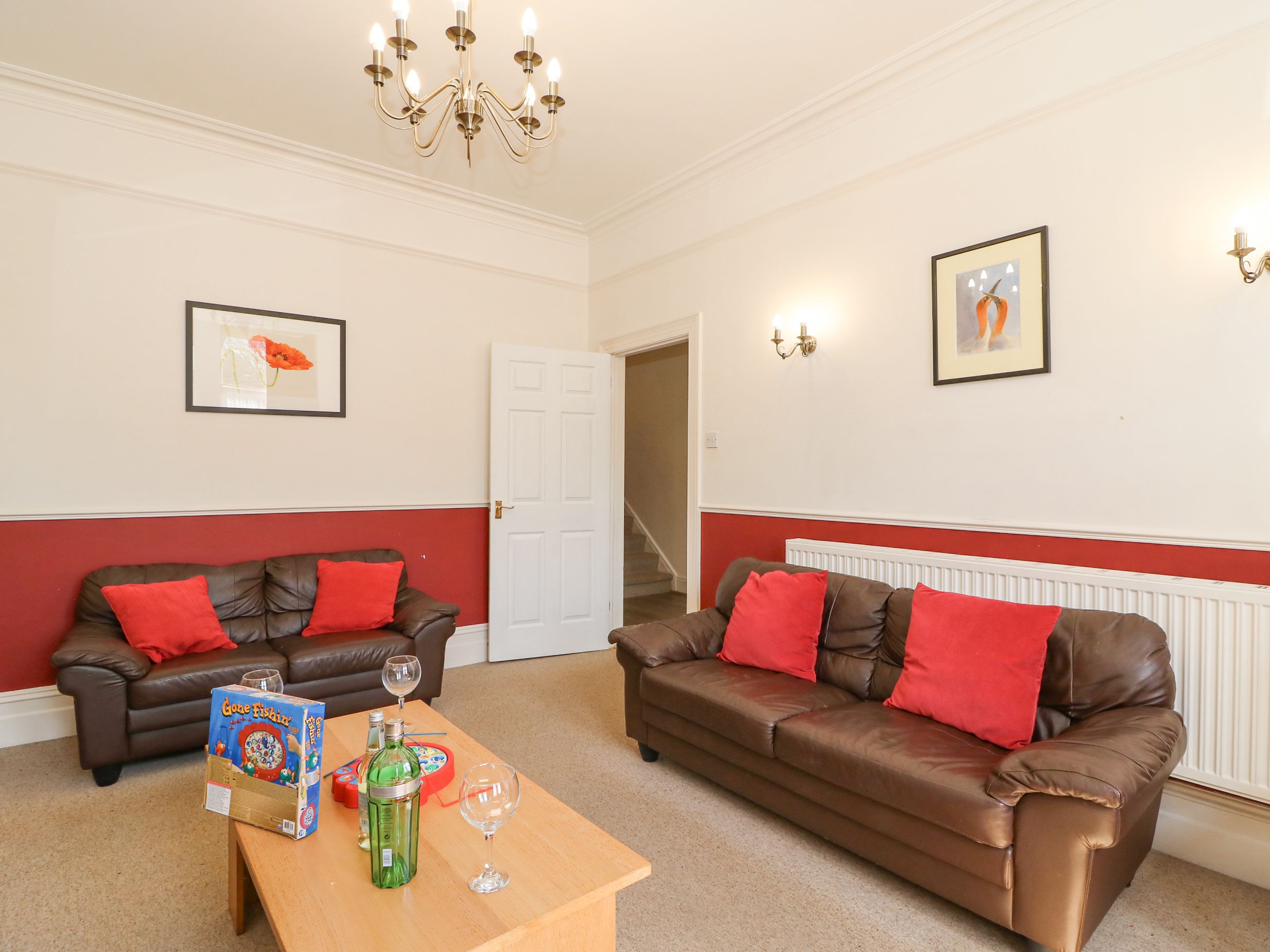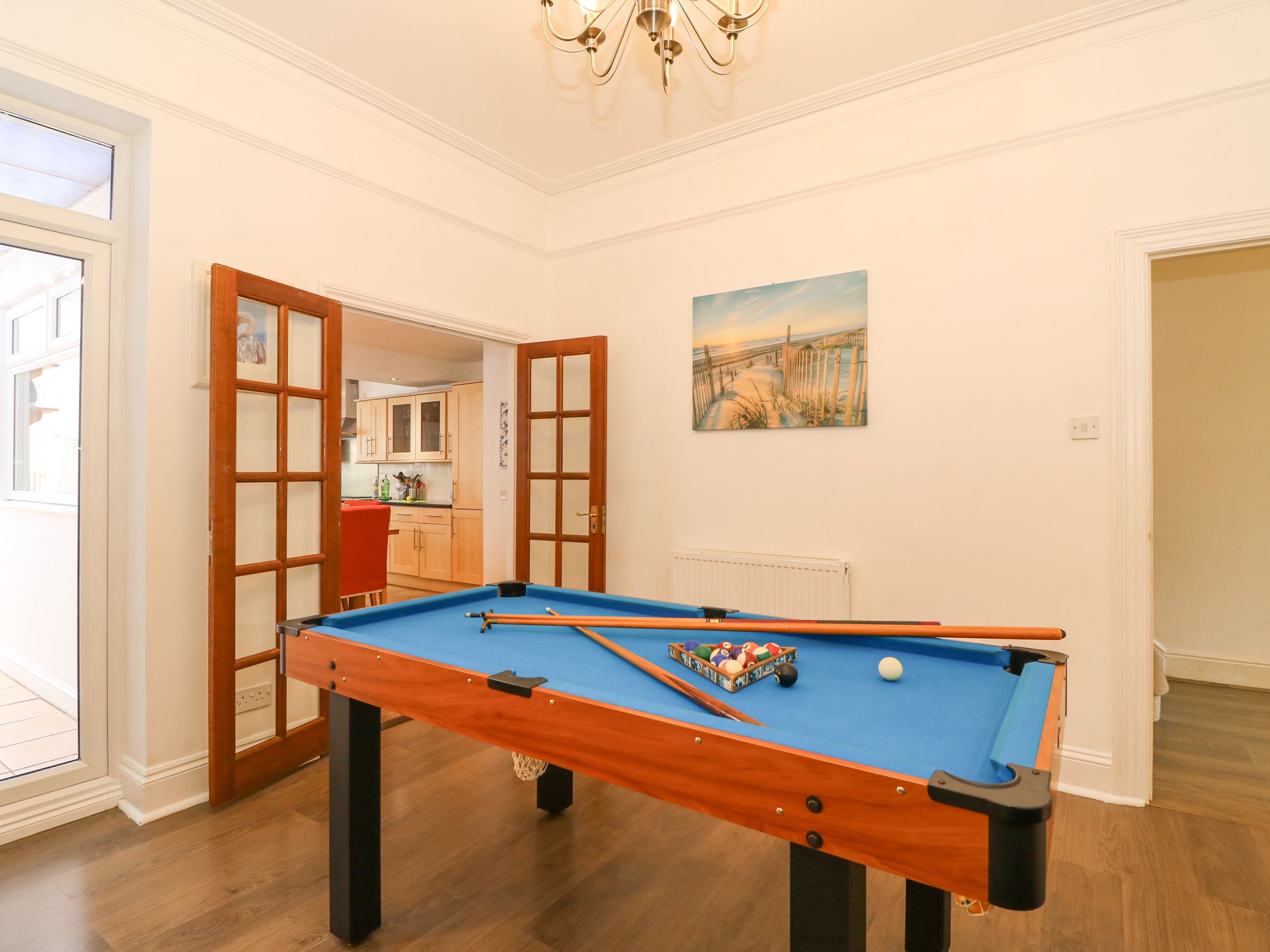 Holiday home Gone Fishing in Weymouth, Dorset is a four bedroom Edwardian home. The house can sleep eight people in 1 x king-size, 1 x double, both with en-suite and 2 x twin and a family bathroom. The property boasts a large kitchen with dining area and a sitting room and games room with pool table. To the rear of the property is a patio garden with furniture and mature shrubs. There is also off road parking for two cars. Gone Fishing is a spacious home from home in Weymouth and is the perfect location for your Weymouth family holiday. Note: Three steps up to the property. The beds have feather duvets. Guests are required to bring their own cot linen.