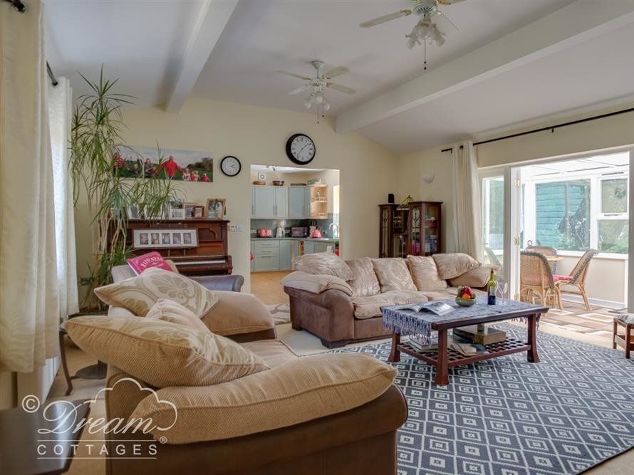 Accomodation Details Bedrooms: 1 x super king-size with en-suite, shower, basin and WC. 2 x twin singles. Bathroom, bath with shower over, basin and WC, open plan living, kitchen dining room, conservatory, covered veranda. Garden with patio.