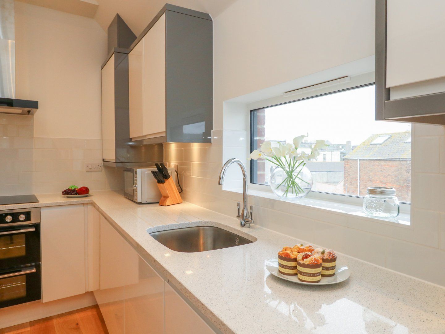 Holiday home Harbourside Haven Penthouse 2 is a third-floor apartment resting in Weymouth. It comes with one king-size bedroom with en-suite walk-in shower, basin and WC and a twin bedroom, together sleeping four people and served by a family bathroom with bath, shower over, basin and WC. Concluding the interior is a well-equipped kitchen and a light filled sitting/diner. Harbourside Haven Penthouse 2 promises to be a wonderful retreat all-year-around. Please note: A lift is available to the penthouse. Whilst this penthouse is accessible by a lift, this access to the property should not be solely relied upon as if not in operation due to maintenance / fault you will need to use the stairs.