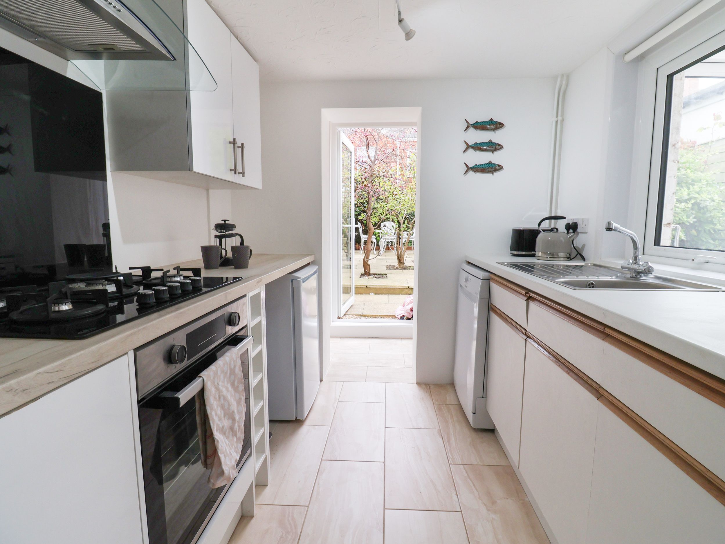 Electric central heating. Electric oven, gas hob, microwave, fridge with icebox, dishwasher, hairdryer. Smart TV (on demand apps only), WiFi, and games. Fuel and power inc. in rent. Bed linen and towels inc. in rent. Roadside parking nearby and public car park, a short walk from property, subject to availability. Rear courtyard garden with patio and furniture. Two well-behaved dogs welcome. Sorry, no smoking. Shop and pub 0.1 miles, beach 0.6 miles. Note: Check-in from 4pm, check-out by 10am. Note: Logs for the woodburning stove are not supplied. Note: Although there is no parking at the property, there is unallocated roadside parking available nearby (subject to spaces being available).