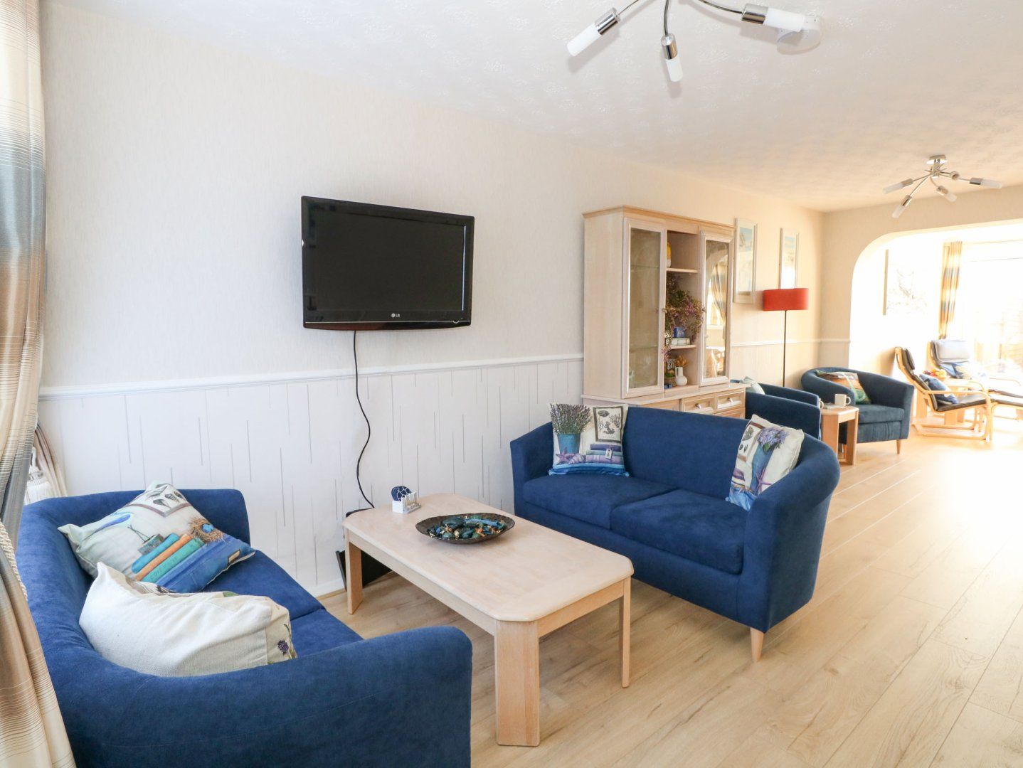 Accomodation Details Three bedrooms: 1 x double, 1 x twin, 1 x single. Bathroom with bath, shower over, basin and WC. Open-plan living space with kitchen, dining area and sitting area
