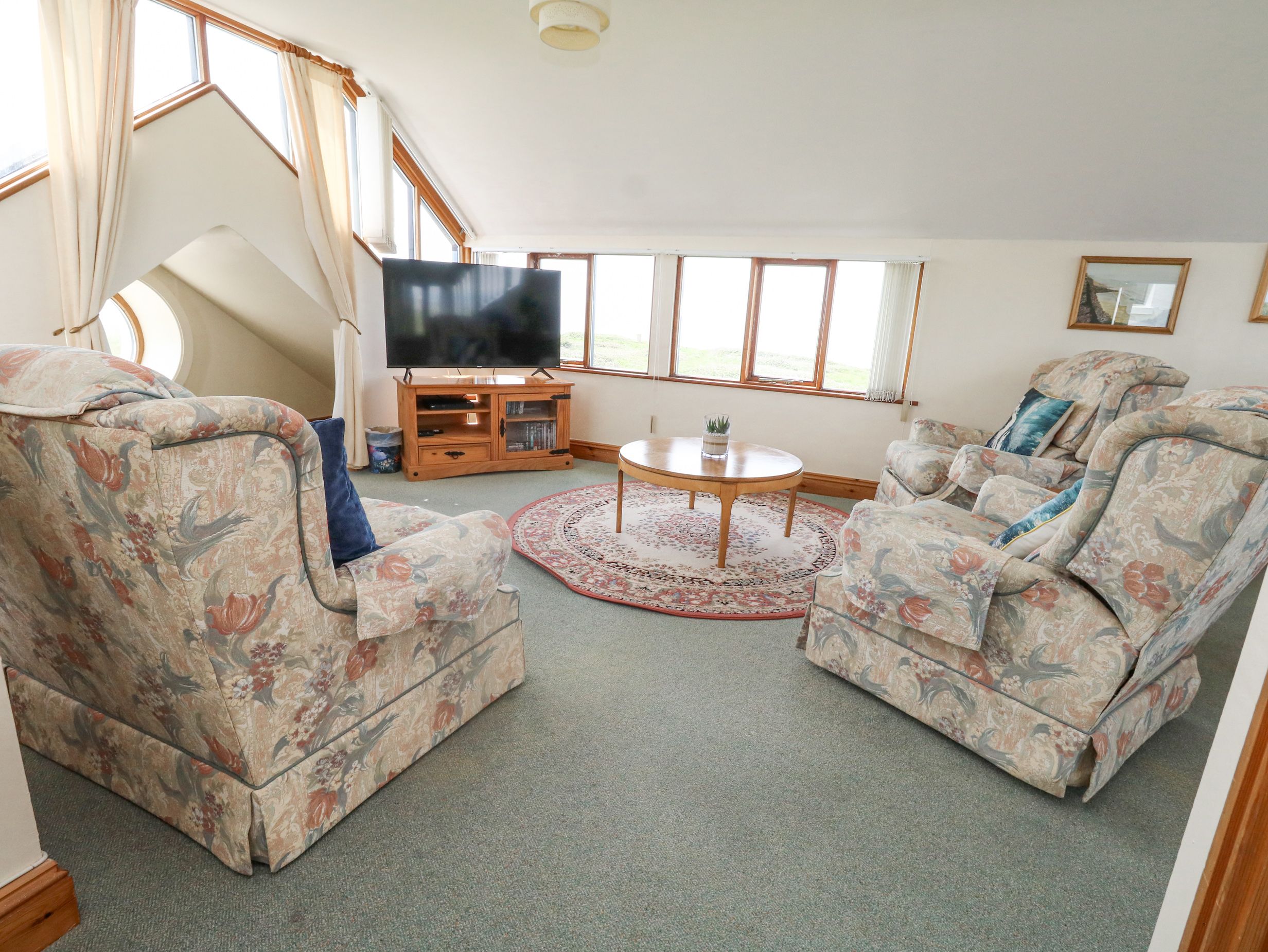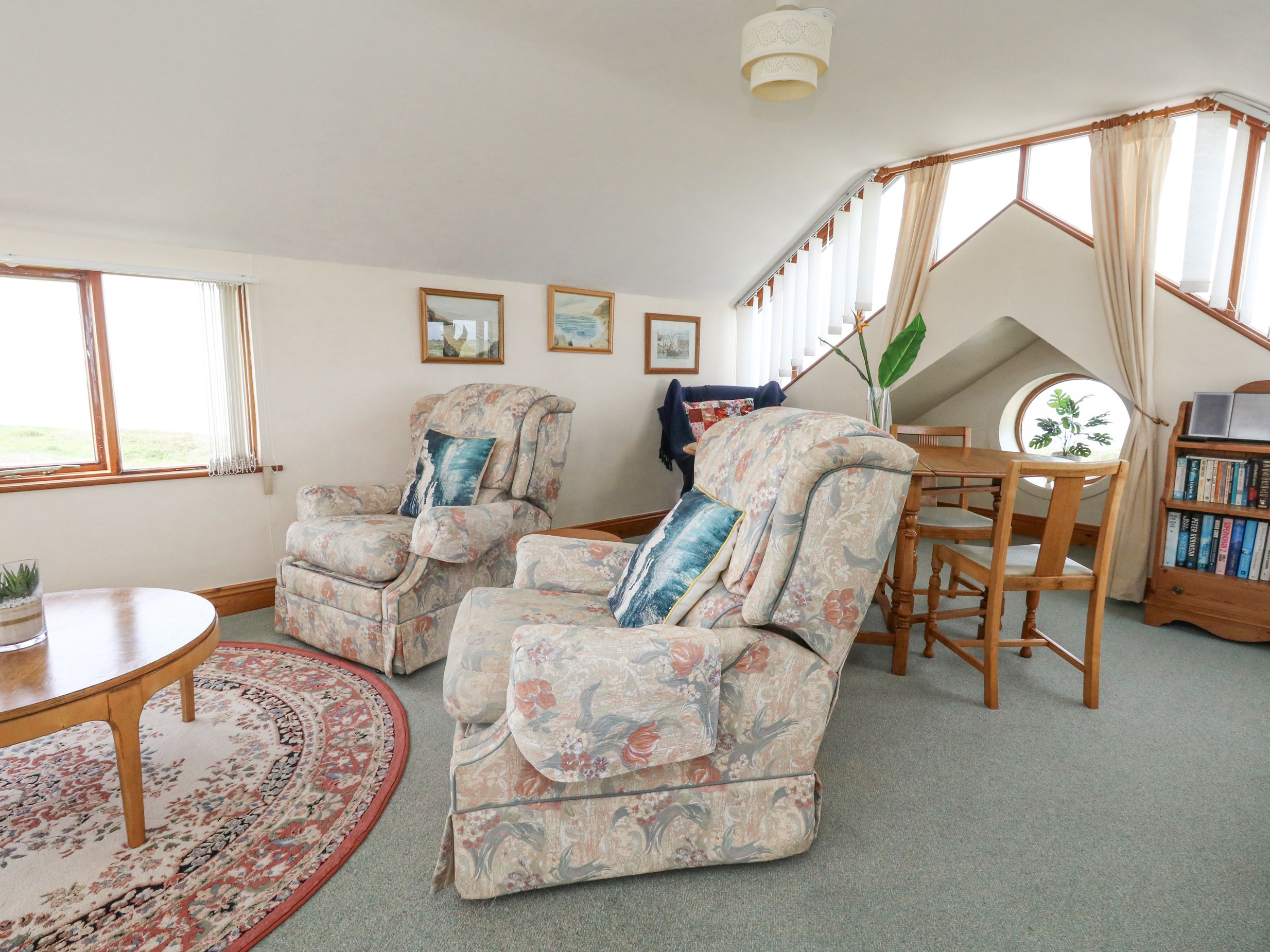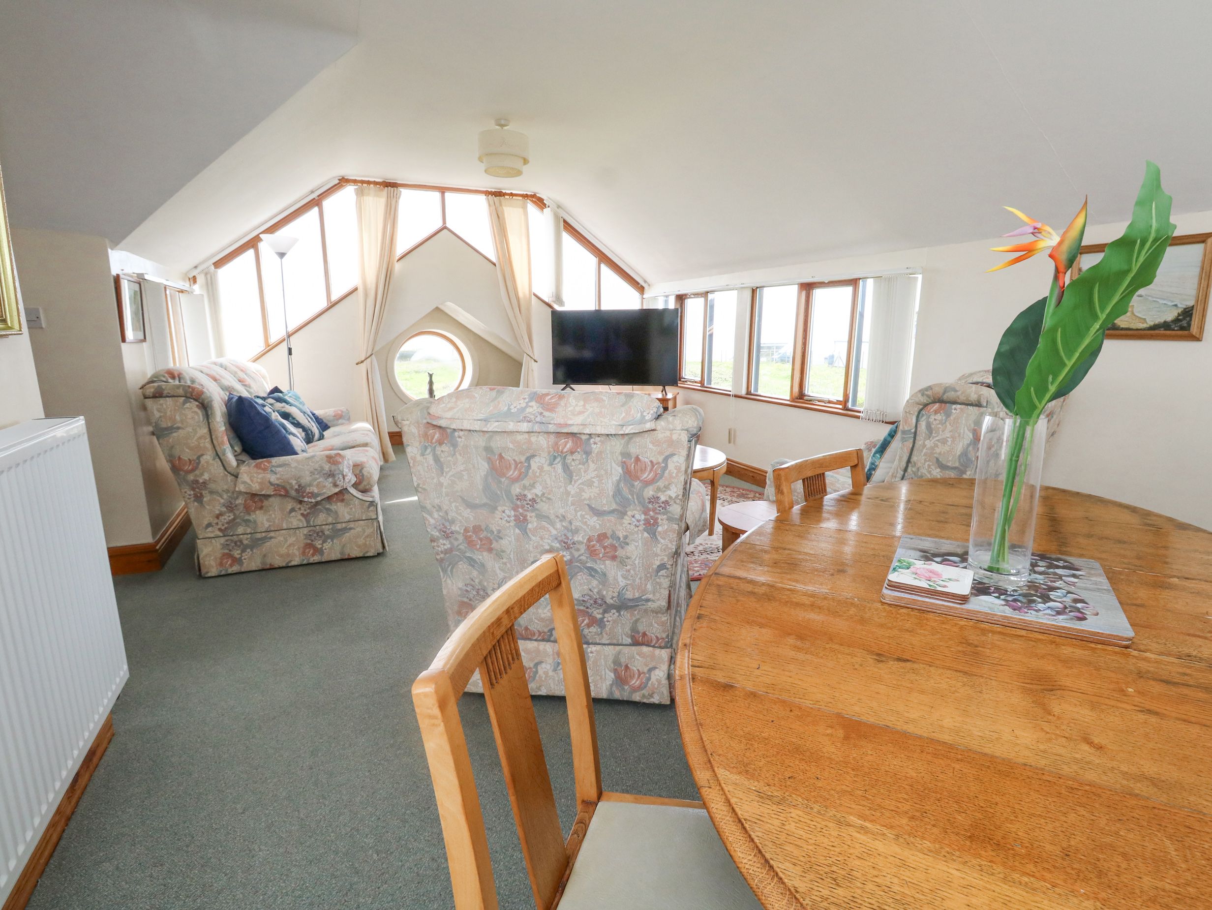 Wonderful situation for we 'townies' who live far from the sea. Very good cottage although second bedroom a little limited in size if four big people are staying. Lovely, helpful hosts. Very well equipped house and the upside-down aspect very attractive. Watching the sun go down was magical. It was very windy when we were there in June, so we didn't use the swimming pool but it must have been great in the lovely sunny weather. We enjoyed walks along the cliff path and looking over Weymouth Bay and Chesil Beach. We visited Poole, Weymouth, Abbotsbury Gardens and Swannery (masses of babies at that time). Excellent cafe close by - the crab sandwiches are to die for but it closes in the evening. We found one hotel with a good restaurant but generally eating facilities were not good, which is a pity. The local pub should look to its laurels as I am sure it could be a great asset so close to the sea and the lighthouse. we would certainly have used it had it been better. There is a Tesco supermarket on the island, which was very good. We loved going up into the lighthouse - take a glass of wine up there in the evening and just enjoy the lovely view - bliss! Go for a long weekend, take your own food and enjoy that wonderful sea! Sadly no pets allowed and we have just got another dog so will not return. We have already recommended it to friends and family.