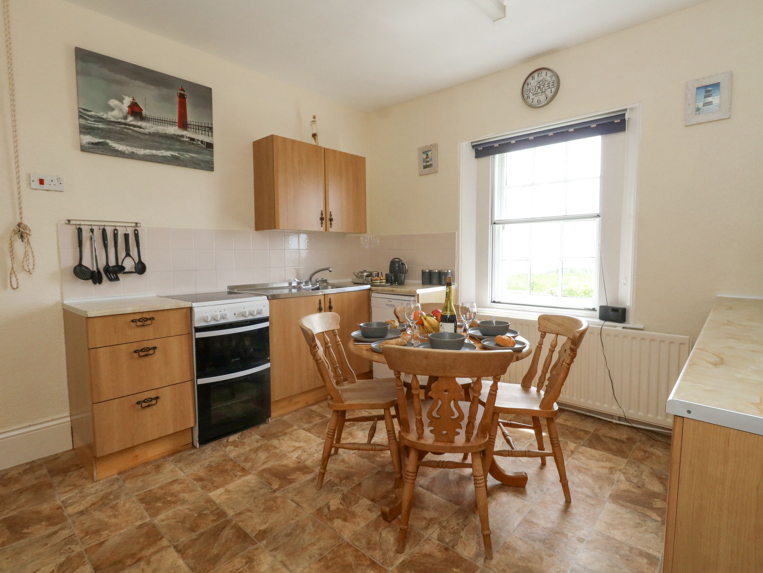 Smashing location! We hardly left the island all week as we found plenty to do there. A good supply of brochures were available had we wanted to venture further afield. There are local food shops which made things easier too. The owners are a lovely couple who are very welcoming, and having use of the old lighthouse tower was amazing!