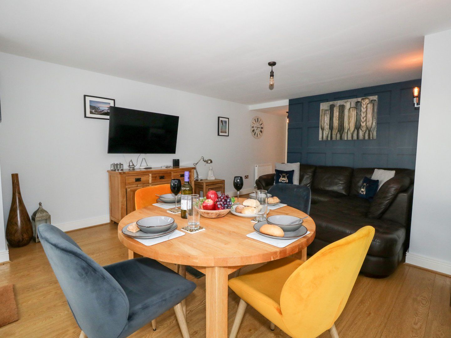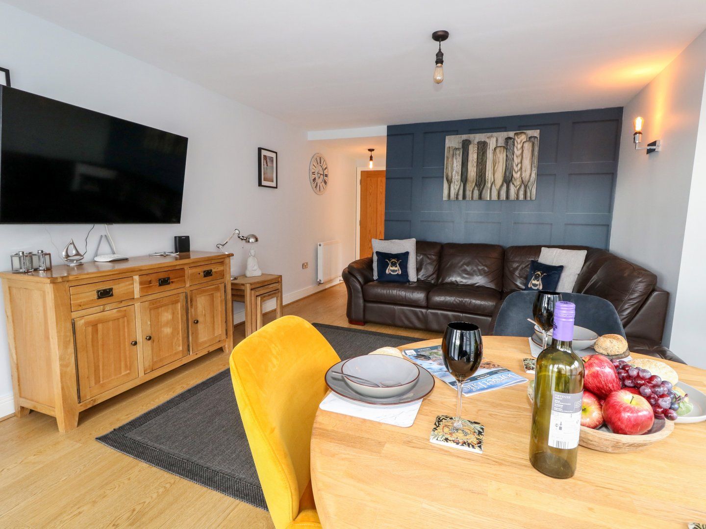 Electric central heating. Electric oven and hob, microwave, fridge, freezer, dishwasher, washing machine, tumble dryer. Smart TV, Xbox, PlayStation 3, CD player, WiFi. Fuel and power inc. in rent. Bed linen and towels inc. in rent. Travel cot and highchair available. Allocated parking space for 1 car with an electronically gated parking area. Sorry, no pets and no smoking. Shop 0.2 miles, pub 0.1 miles, beach 1 mile. Note: Adults only. Note: There is a flight of stairs to access the apartment.