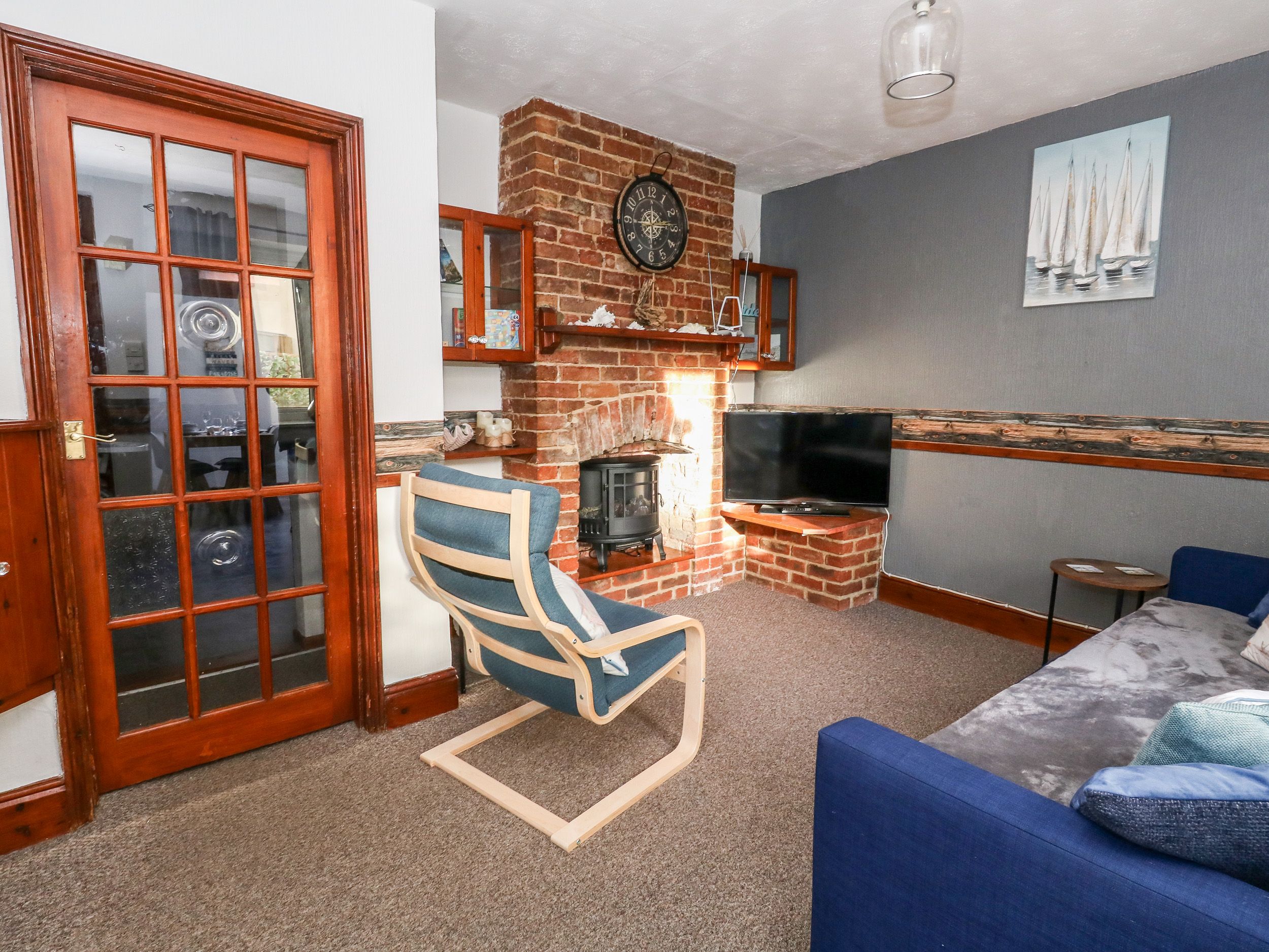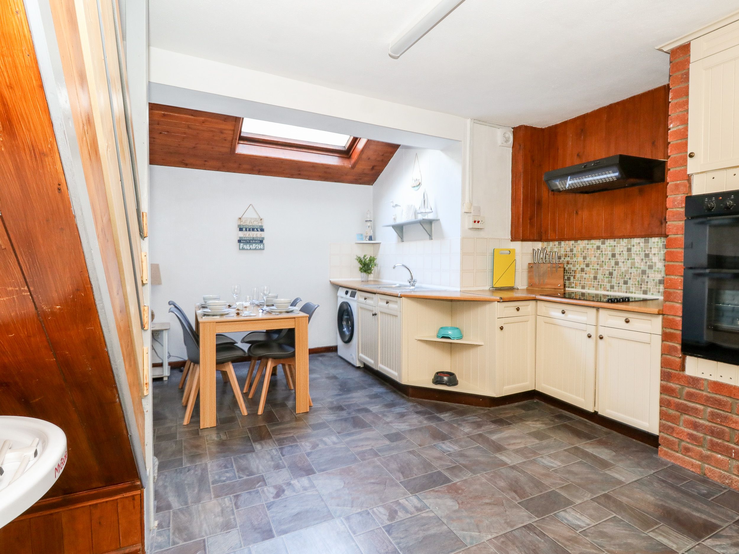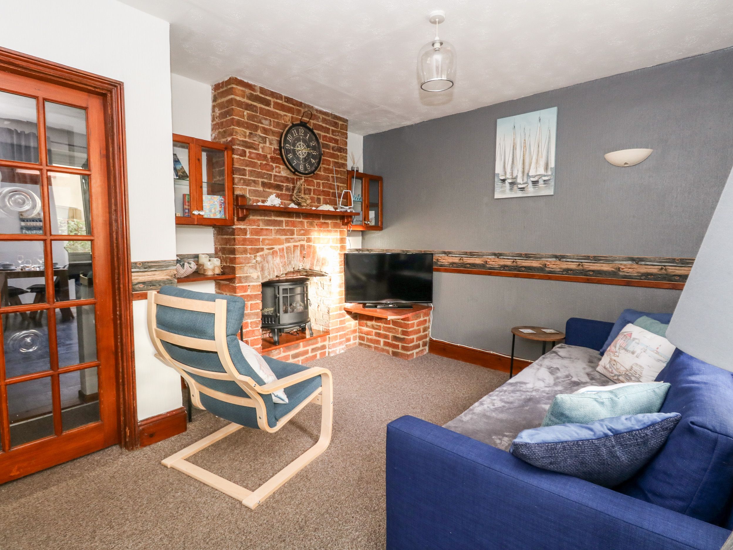 Gas central heating. Electric oven and hob, microwave, fridge/freezer, washing machine. Smart TV, WiFi. Fuel and power inc. in rent. Bed linen and towels inc. in rent. Hairdryer. Travel cot, High chair and stair gate available. Blue badge parking permit for zones a&c and nearby car park. Standard parking permit for one nearby car park. Enclosed small front courtyard with furniture. Two well-behaved dogs welcome, dog bowls provided. Sorry, no smoking. Shop and pub 0.2 miles, beach 0.3 miles. Note: Access is via a shared entry. Note: This property does not have designated parking. Note: Sofa bed available for two children only, together accommodating six guests. Note: There is a step up into the courtyard; please take care